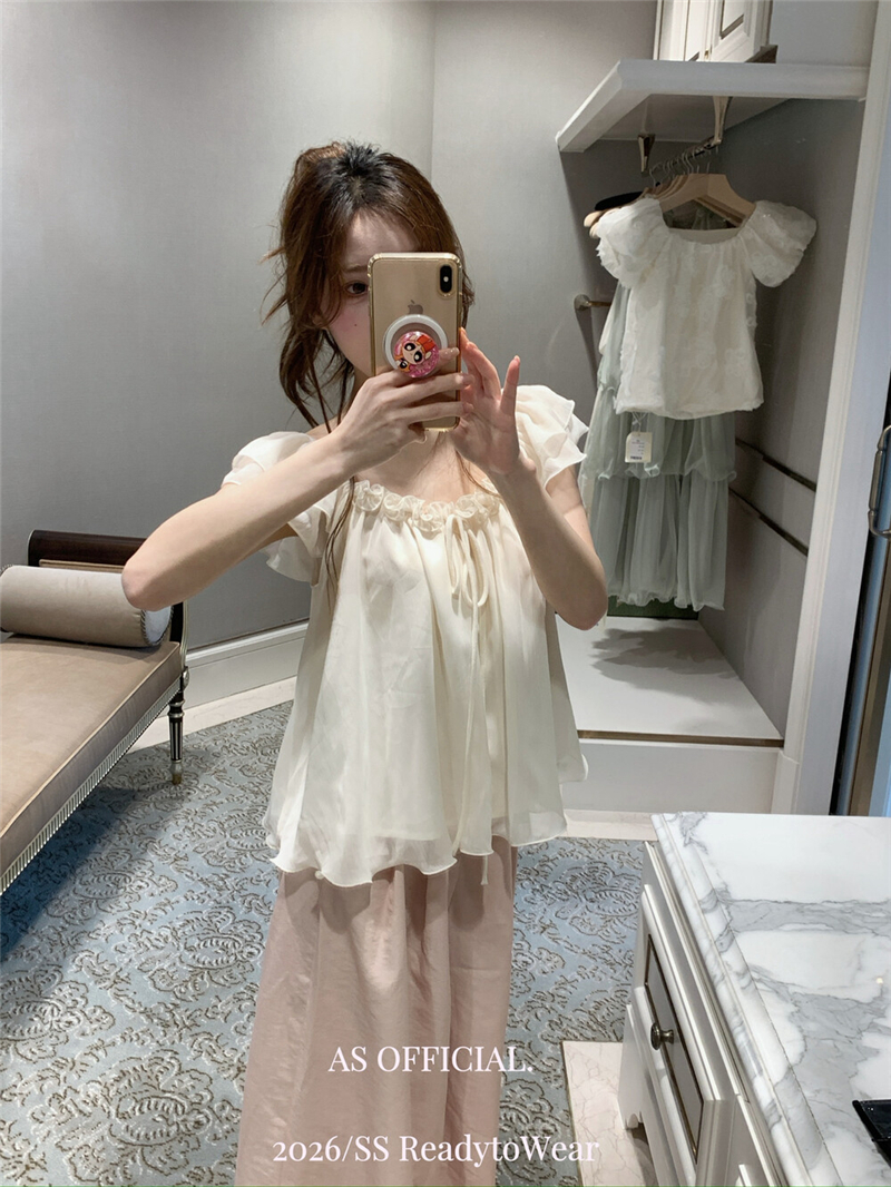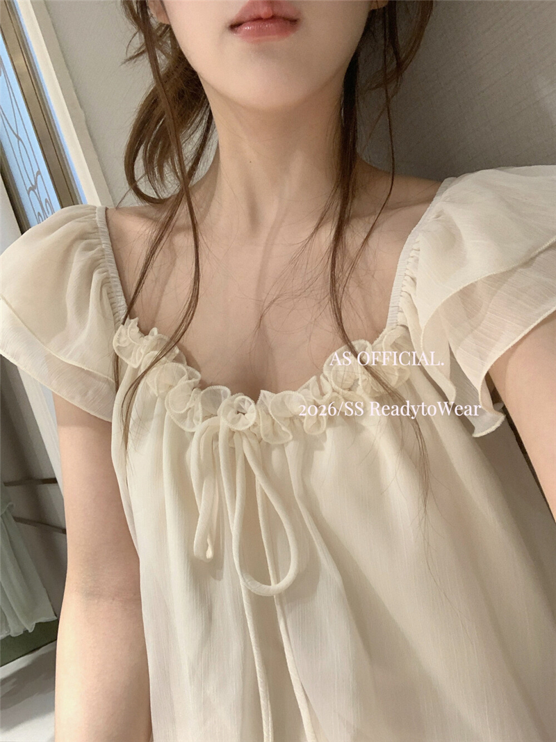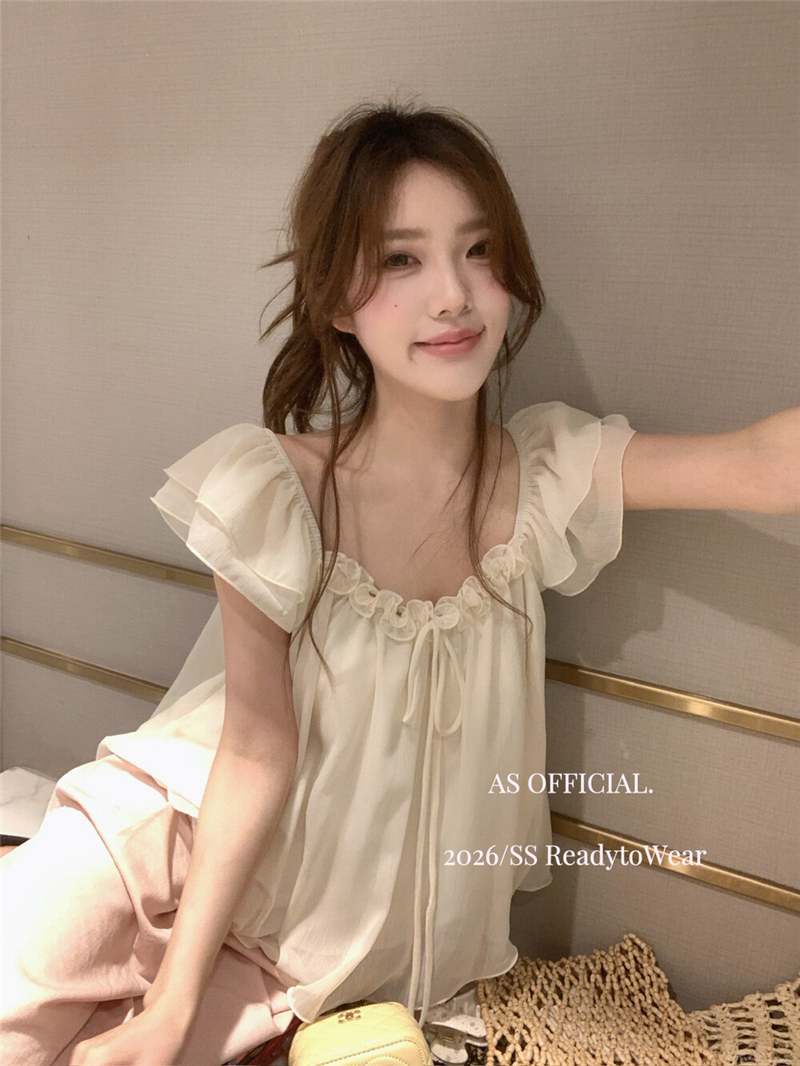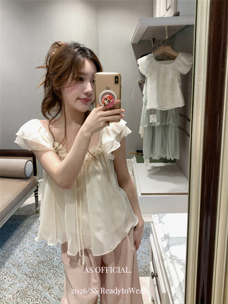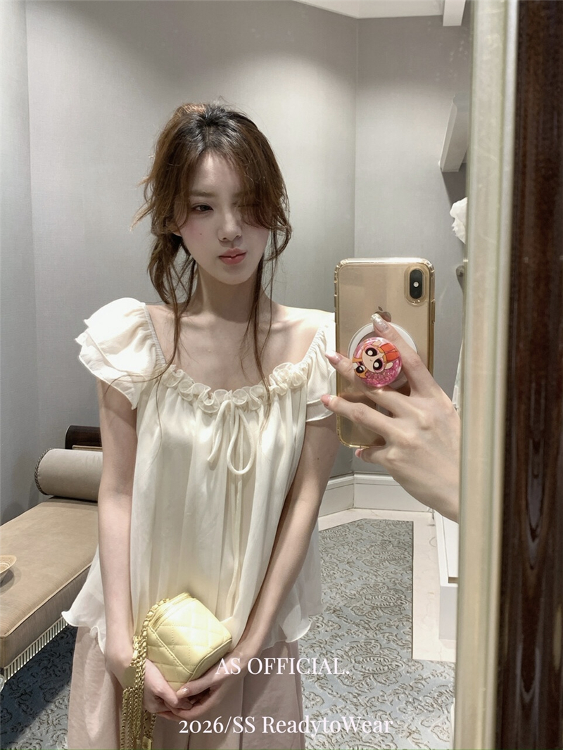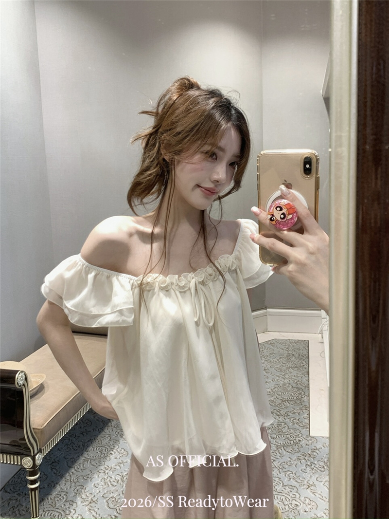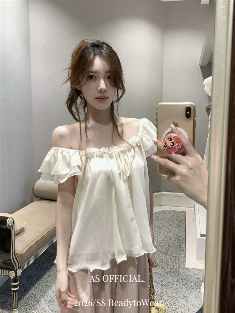 실사 정가 부드러운 너바나 프랑스식 낭만주의 꽃 비즈 박기 오프숄더 프릴 칼라 디자인 센스 작은 셔츠