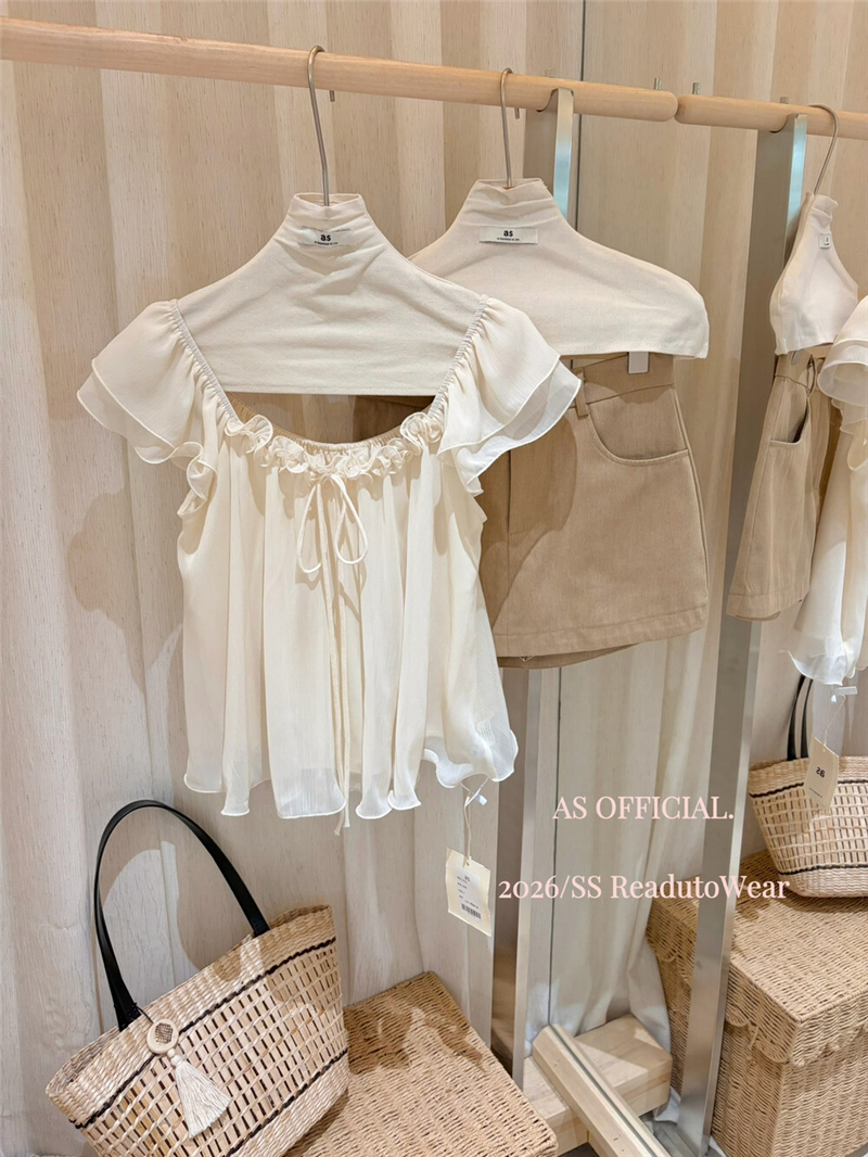 부드럽다 프로 피부 레몬 녹차 비스듬한 어깨 리본 디자인 센스 슬림해 보이는 반팔 티셔츠 리본 아니요 철거