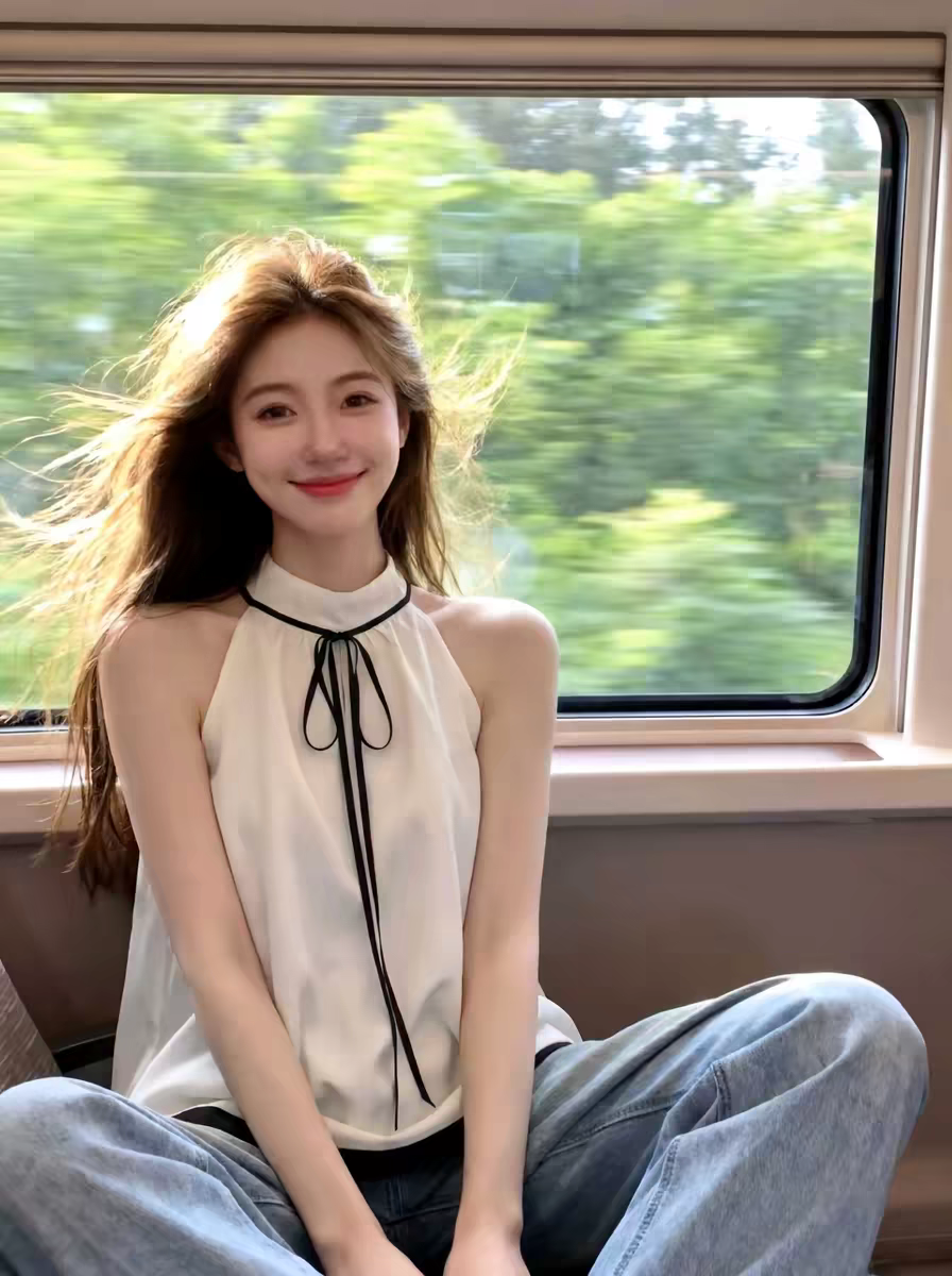 프랑스식 부드러운 디자인 센스 행침 목 레이스업 민소매 작은 셔츠 여성 2026 여름 패션 고유 한 캐주얼 편안함 맨위