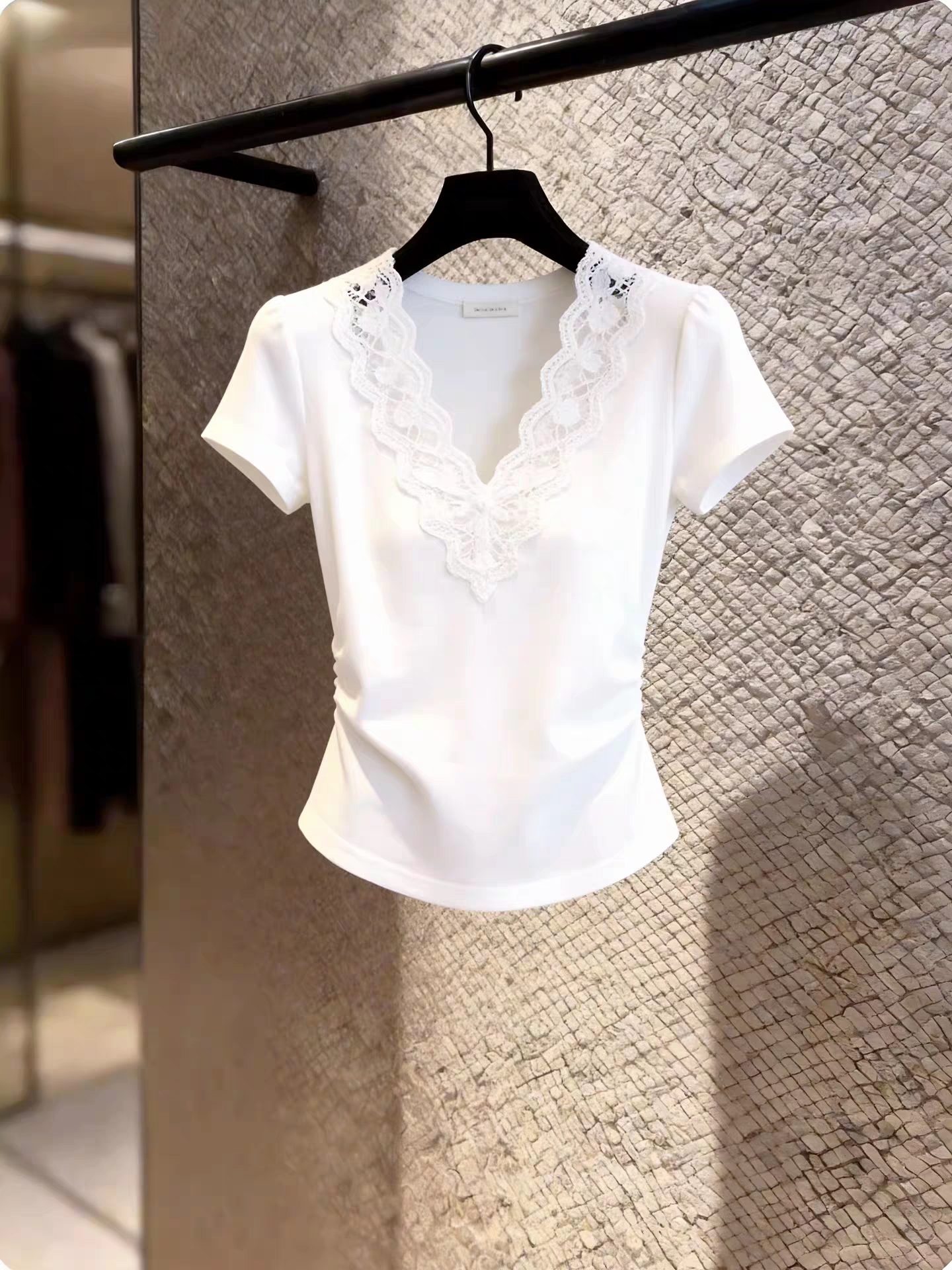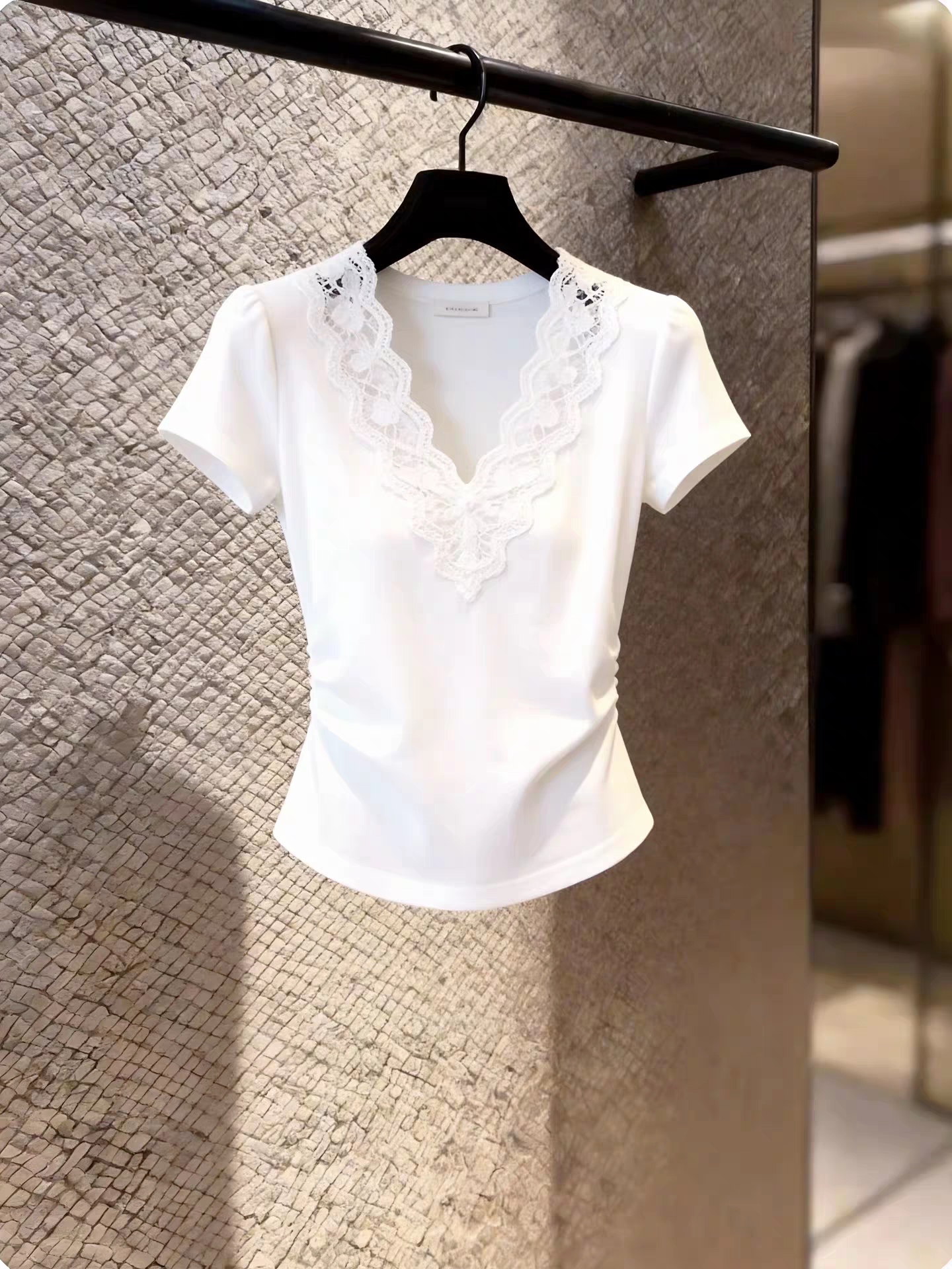 디자인 센스 삽입 어깨 소매 화이트 티셔츠 여성 여름 2026 새로운 미니멀리즘 출퇴근 루즈핏 슬림해 보이는 캐주얼 짧은 맨위