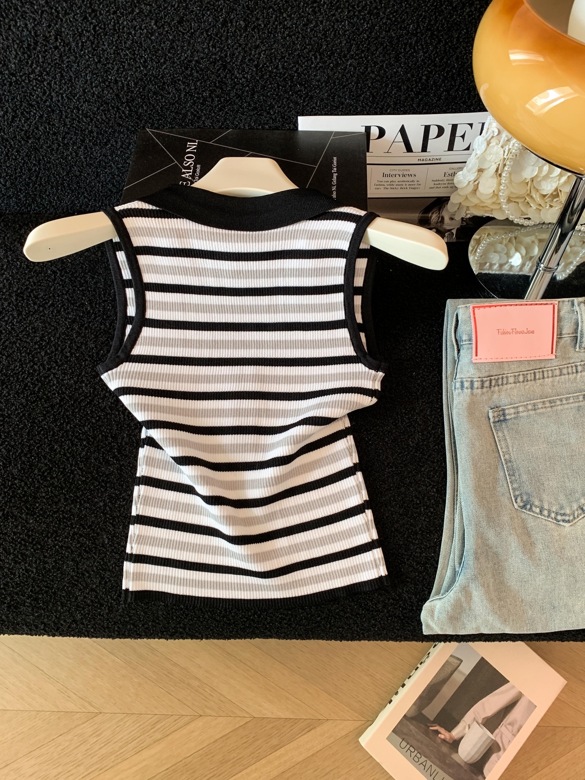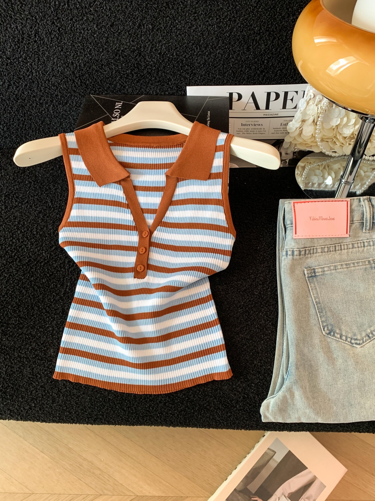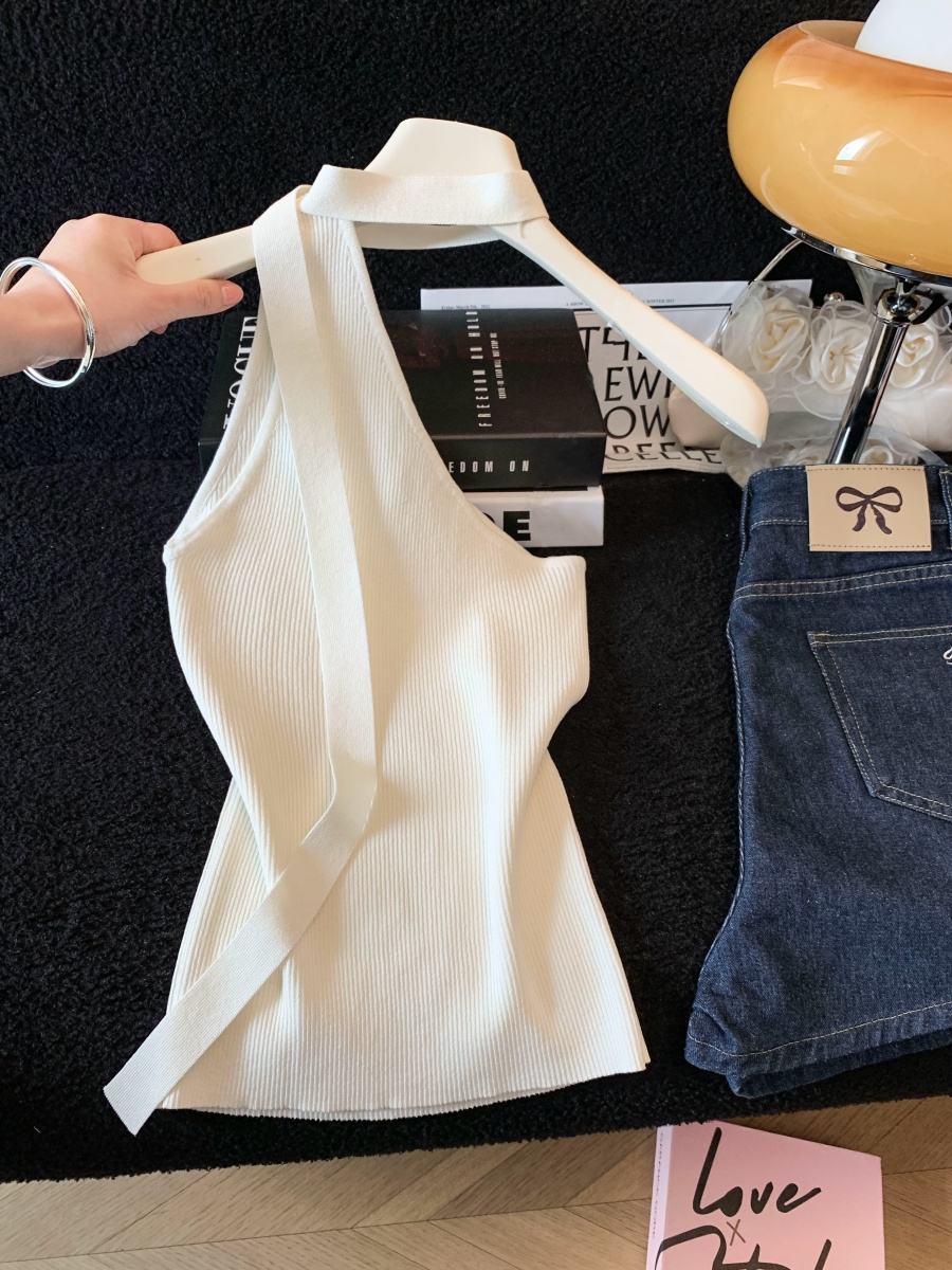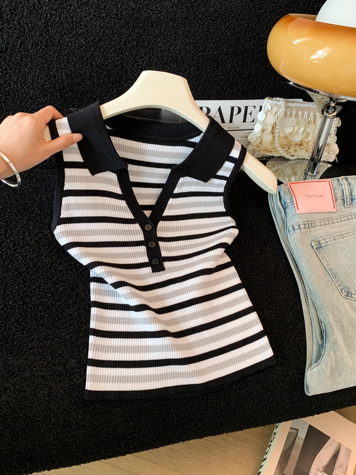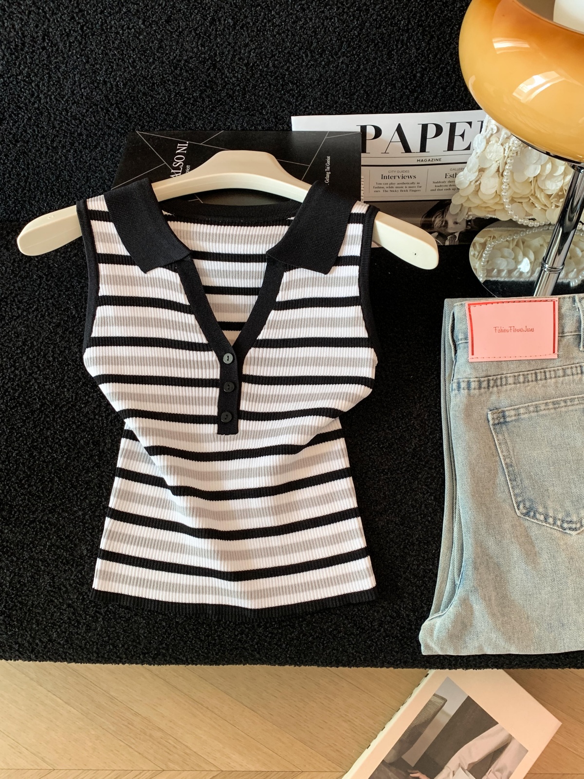 실사 여름 한 부서 순수한 욕망 칼라 니트 캐미솔 몸매 가꾸기 민소매 맨위 분위기 센스 핫걸 조끼