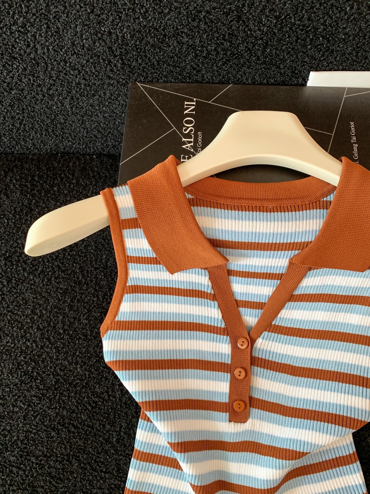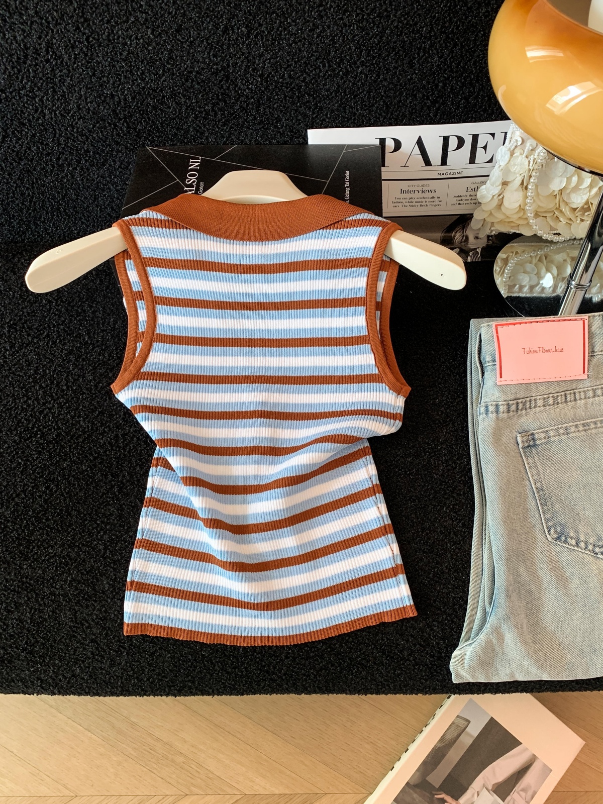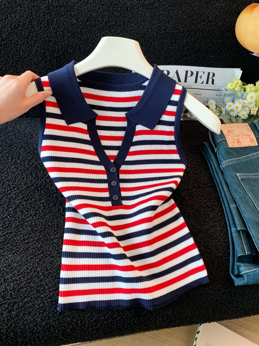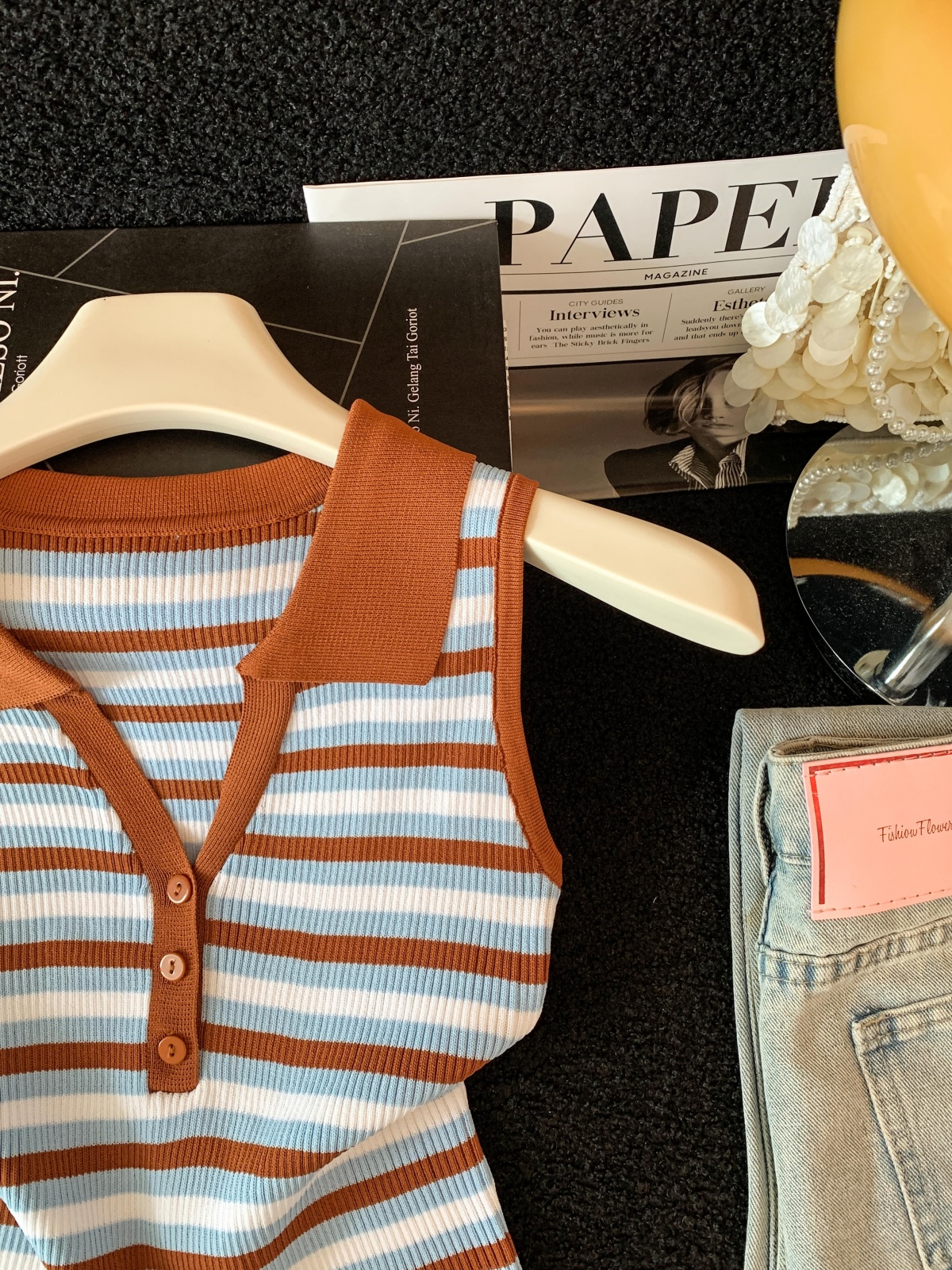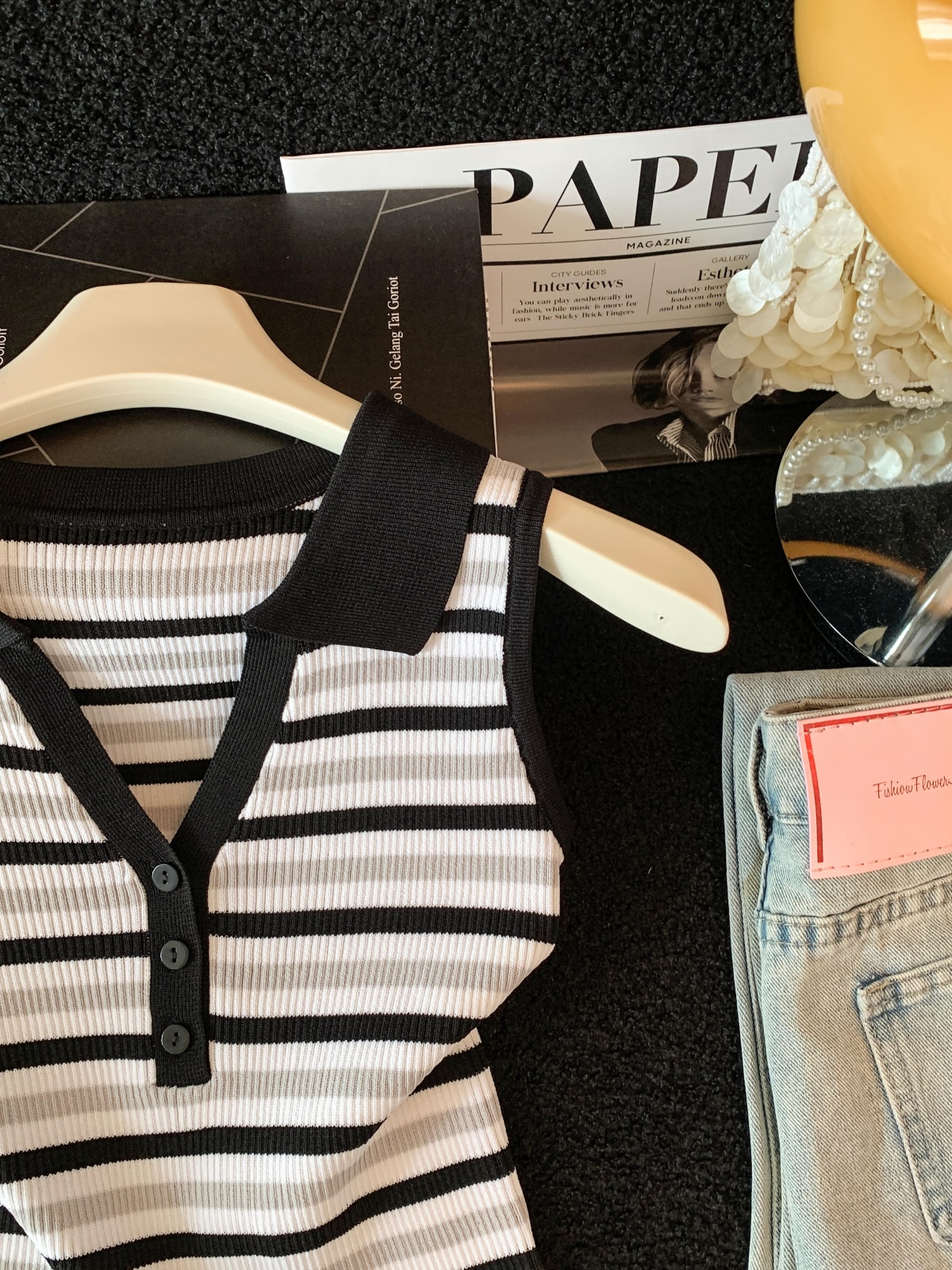 실사 여름 한 부서 순수한 욕망 칼라 니트 캐미솔 몸매 가꾸기 민소매 맨위 분위기 센스 핫걸 조끼