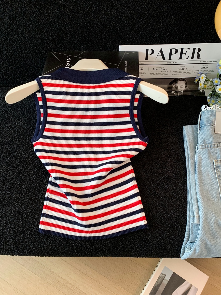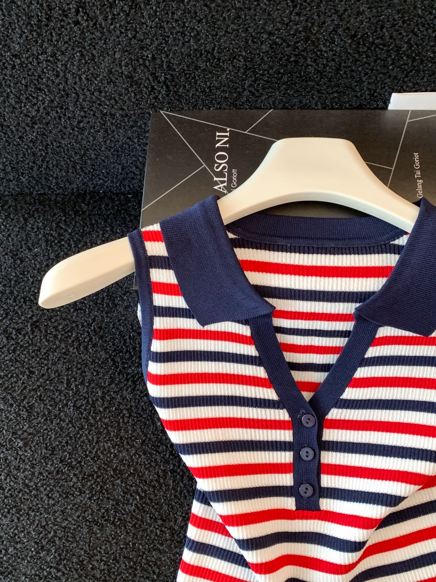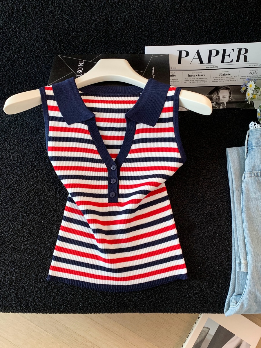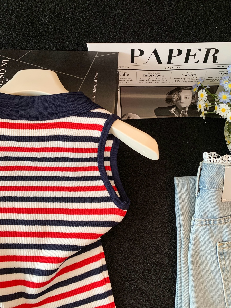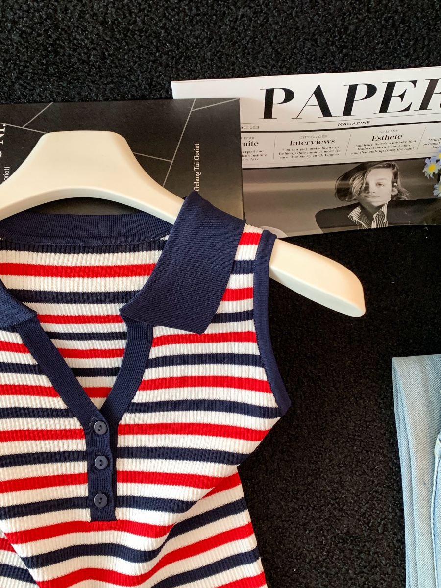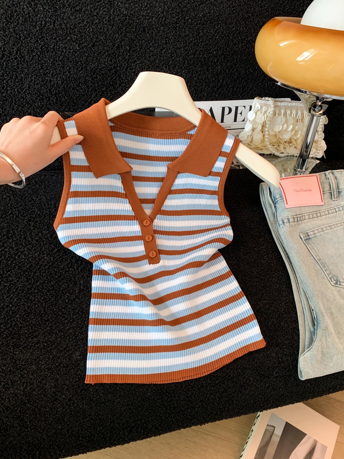 실사 여름 한 부서 순수한 욕망 칼라 니트 캐미솔 몸매 가꾸기 민소매 맨위 분위기 센스 핫걸 조끼