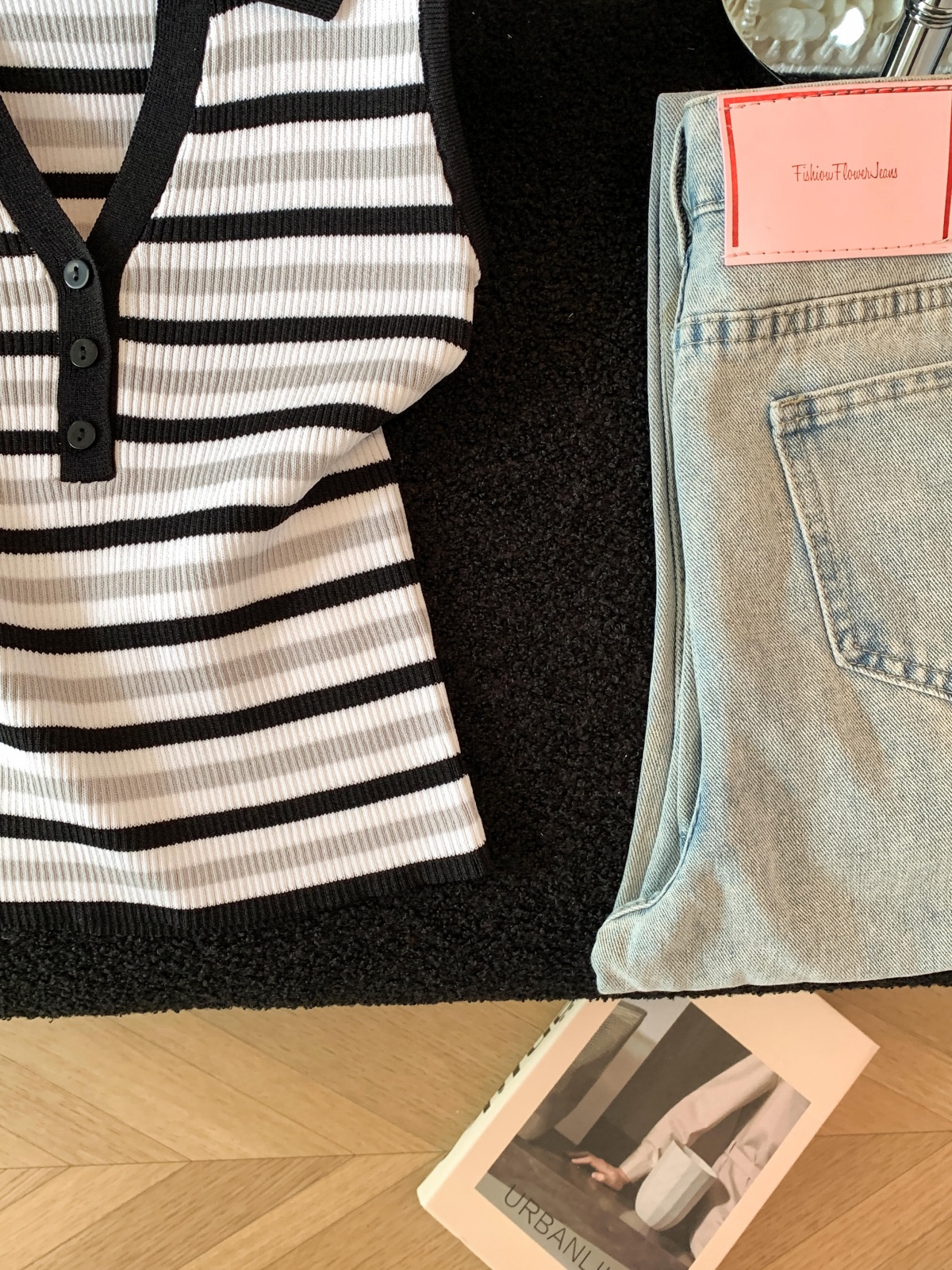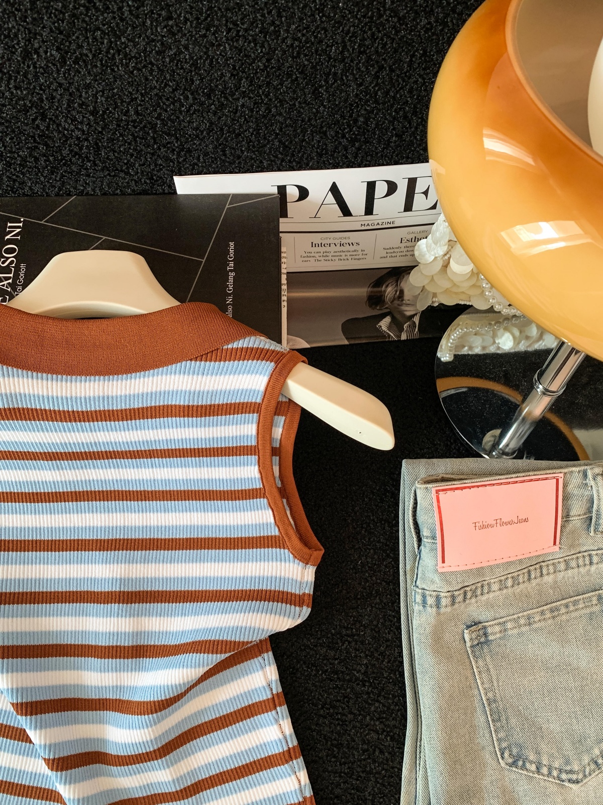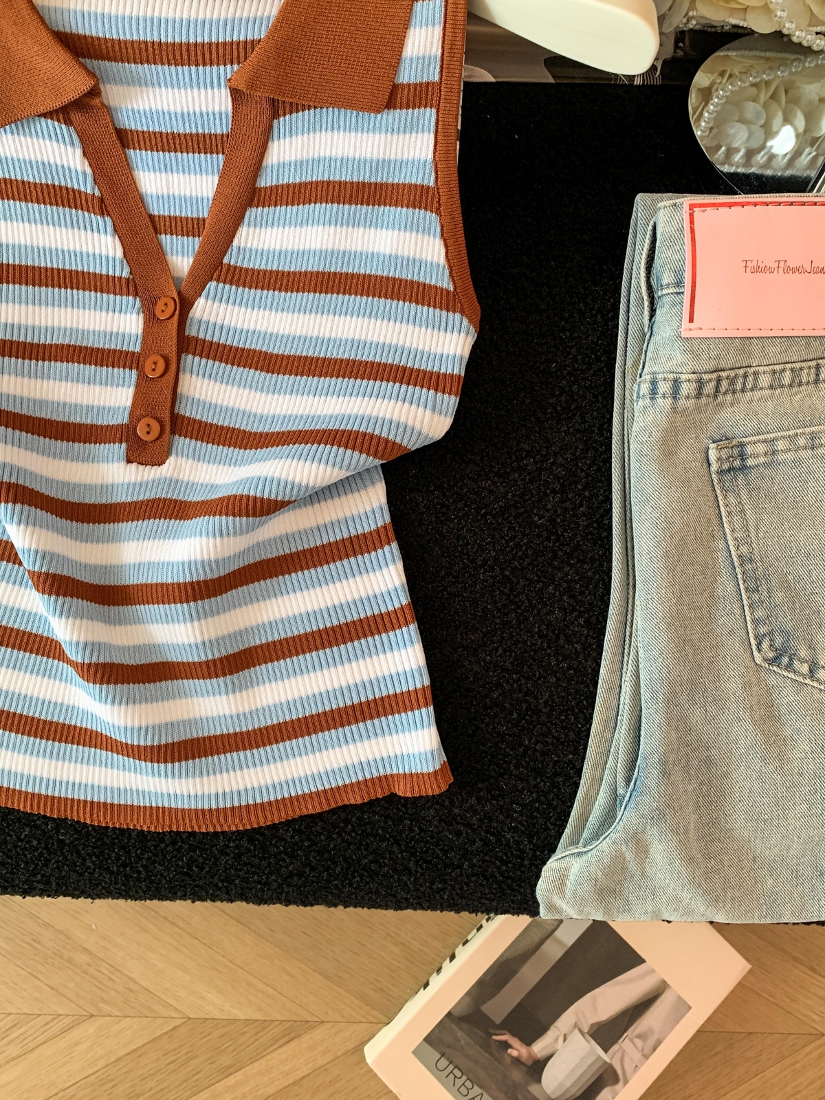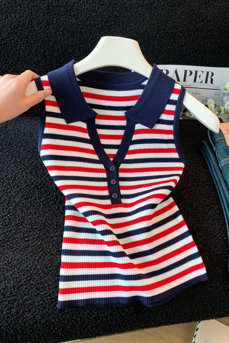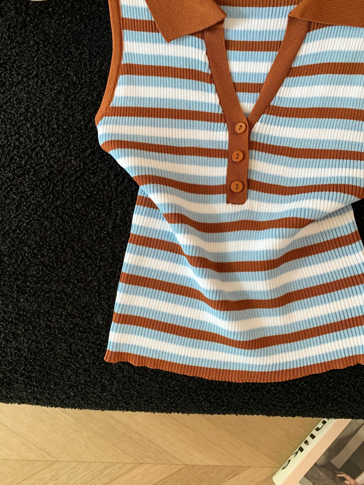 실사 여름 한 부서 순수한 욕망 칼라 니트 캐미솔 몸매 가꾸기 민소매 맨위 분위기 센스 핫걸 조끼