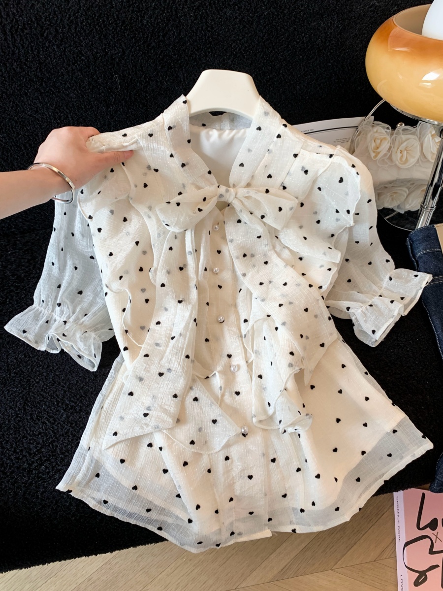 실사 한 부서 부드러운 바람 쉬폰 블라우스 여름 루즈핏 표지 배 셔츠 고급 센스 반팔 맨위