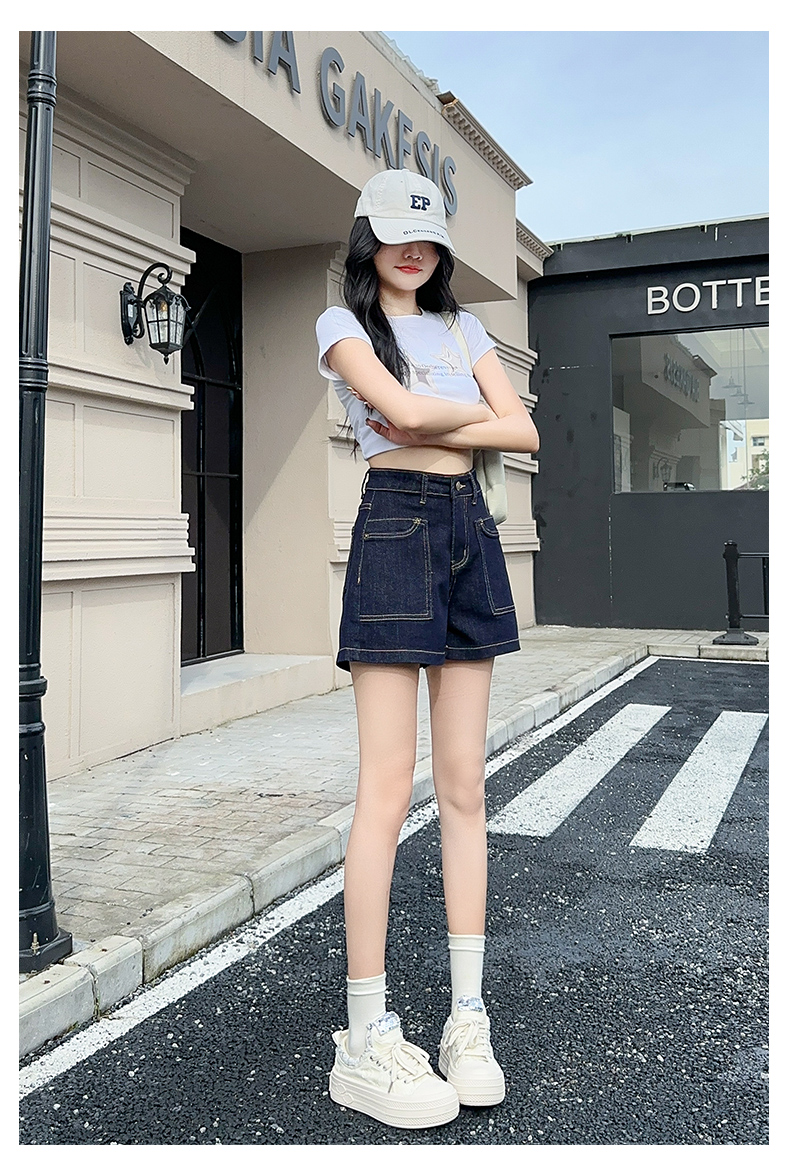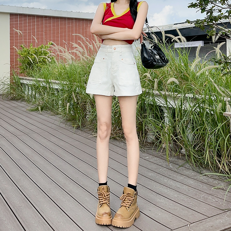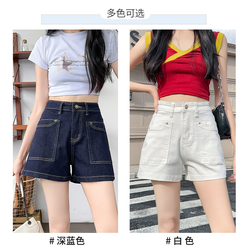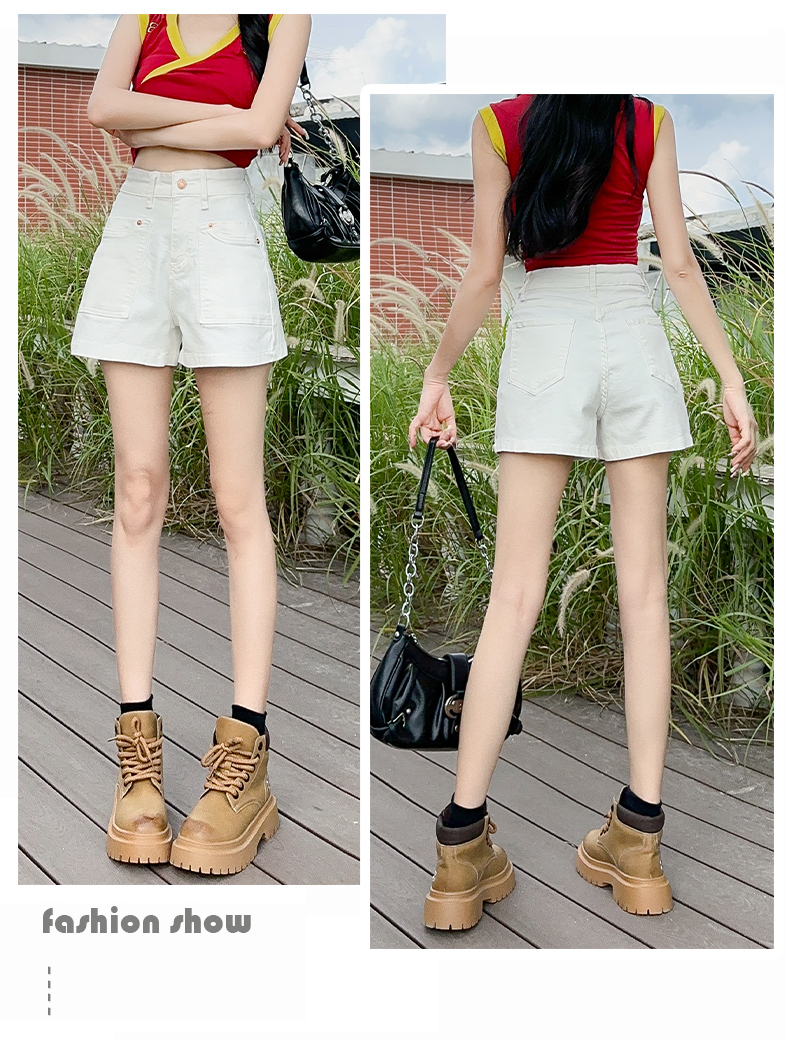 실사 핫걸 데님 반바지 여성 여름 얇은 스타일 하이웨이스트 슬림해 보이는 인터넷 유명인 디자인 센스 작은 키 핫 바지