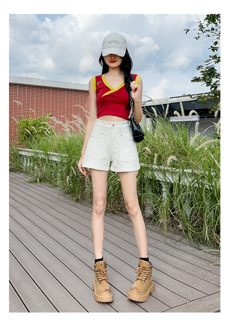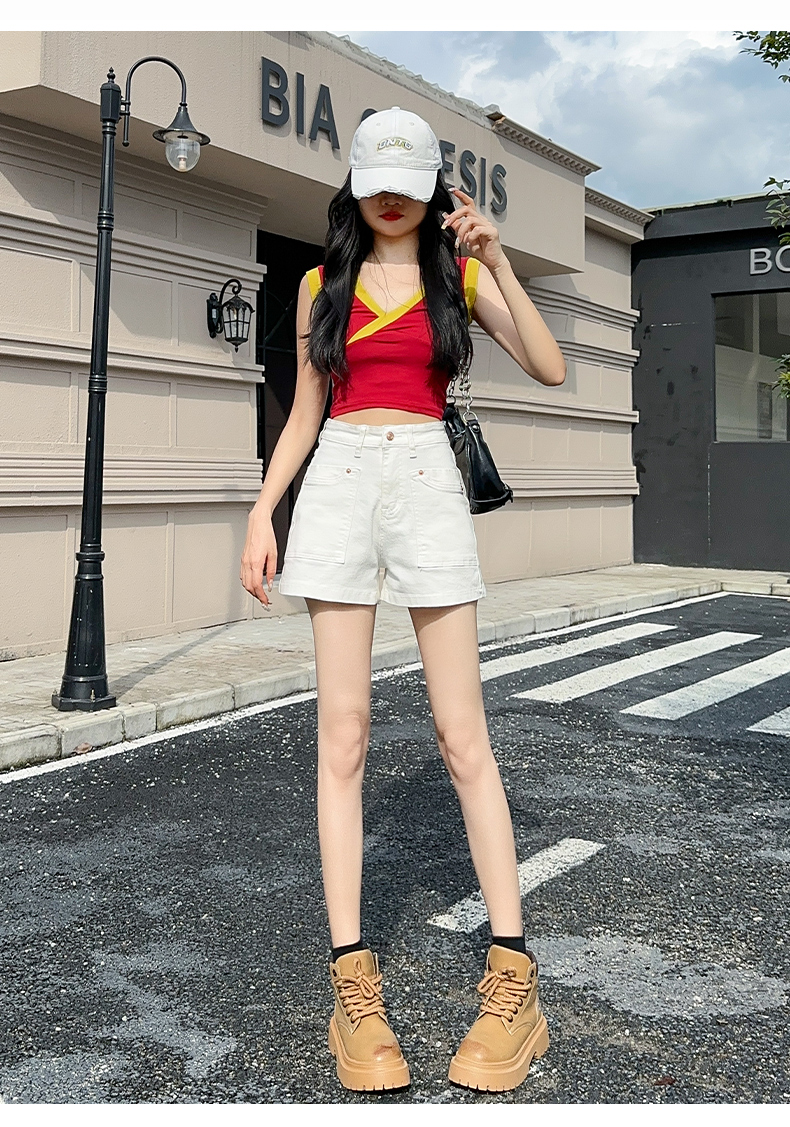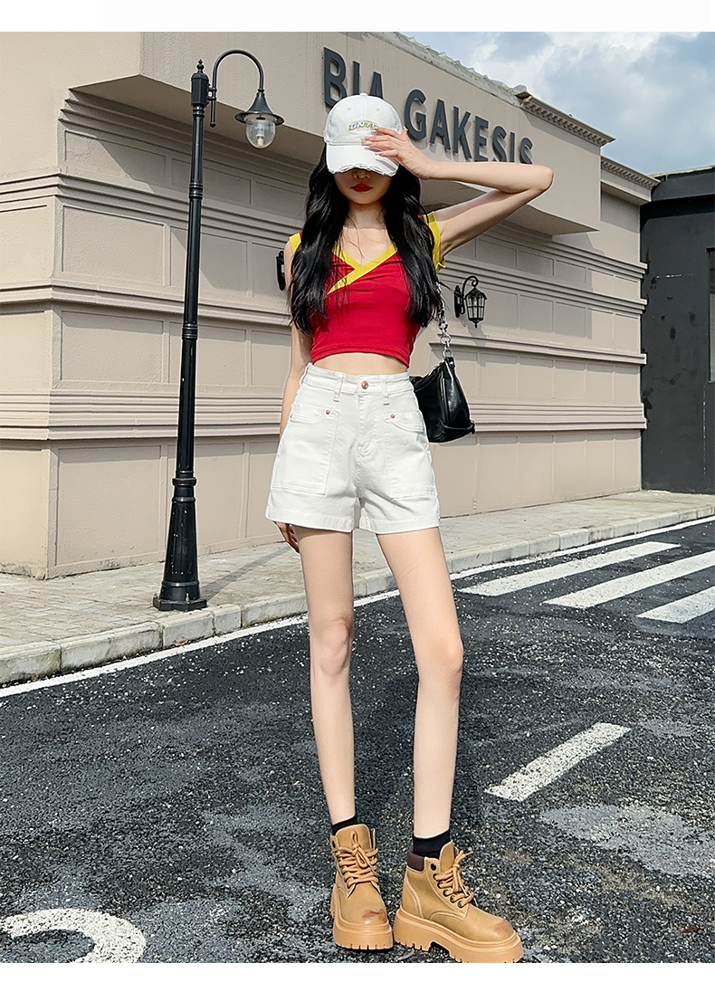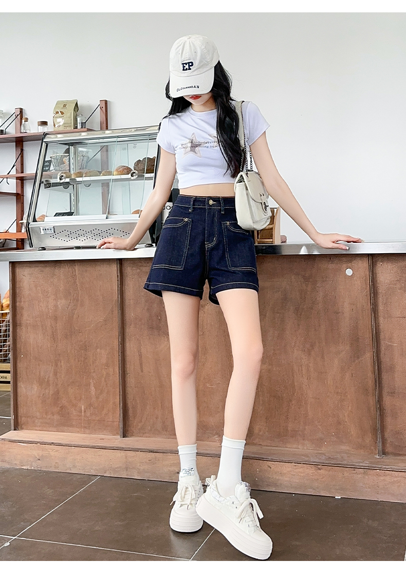실사 핫걸 데님 반바지 여성 여름 얇은 스타일 하이웨이스트 슬림해 보이는 인터넷 유명인 디자인 센스 작은 키 핫 바지
