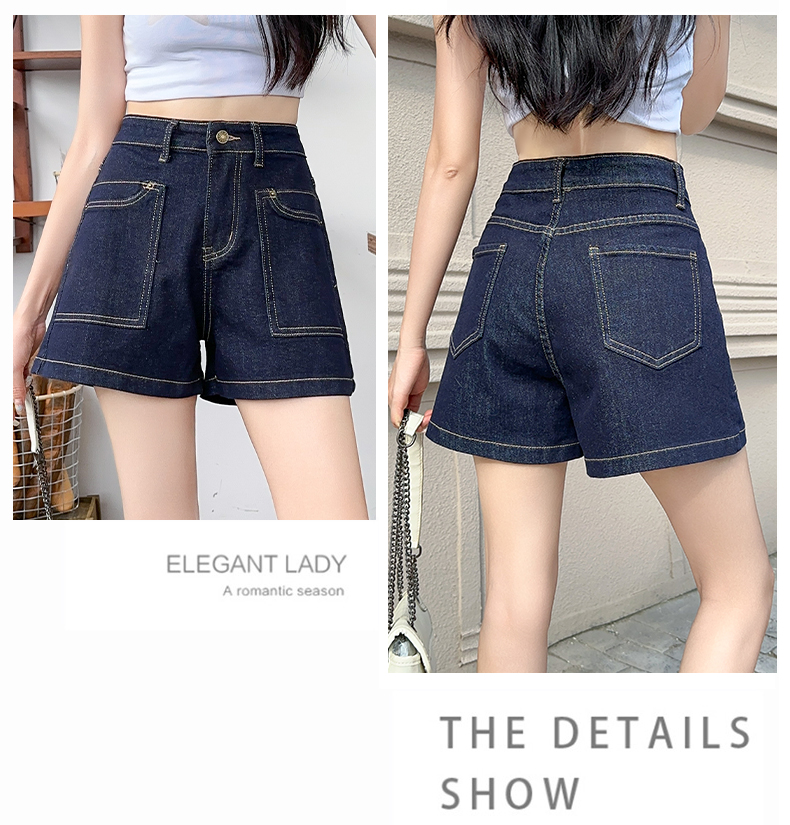 실사 핫걸 데님 반바지 여성 여름 얇은 스타일 하이웨이스트 슬림해 보이는 아메리칸 디자인 센스 한 마디 넓은 다리 뜨거운 바지