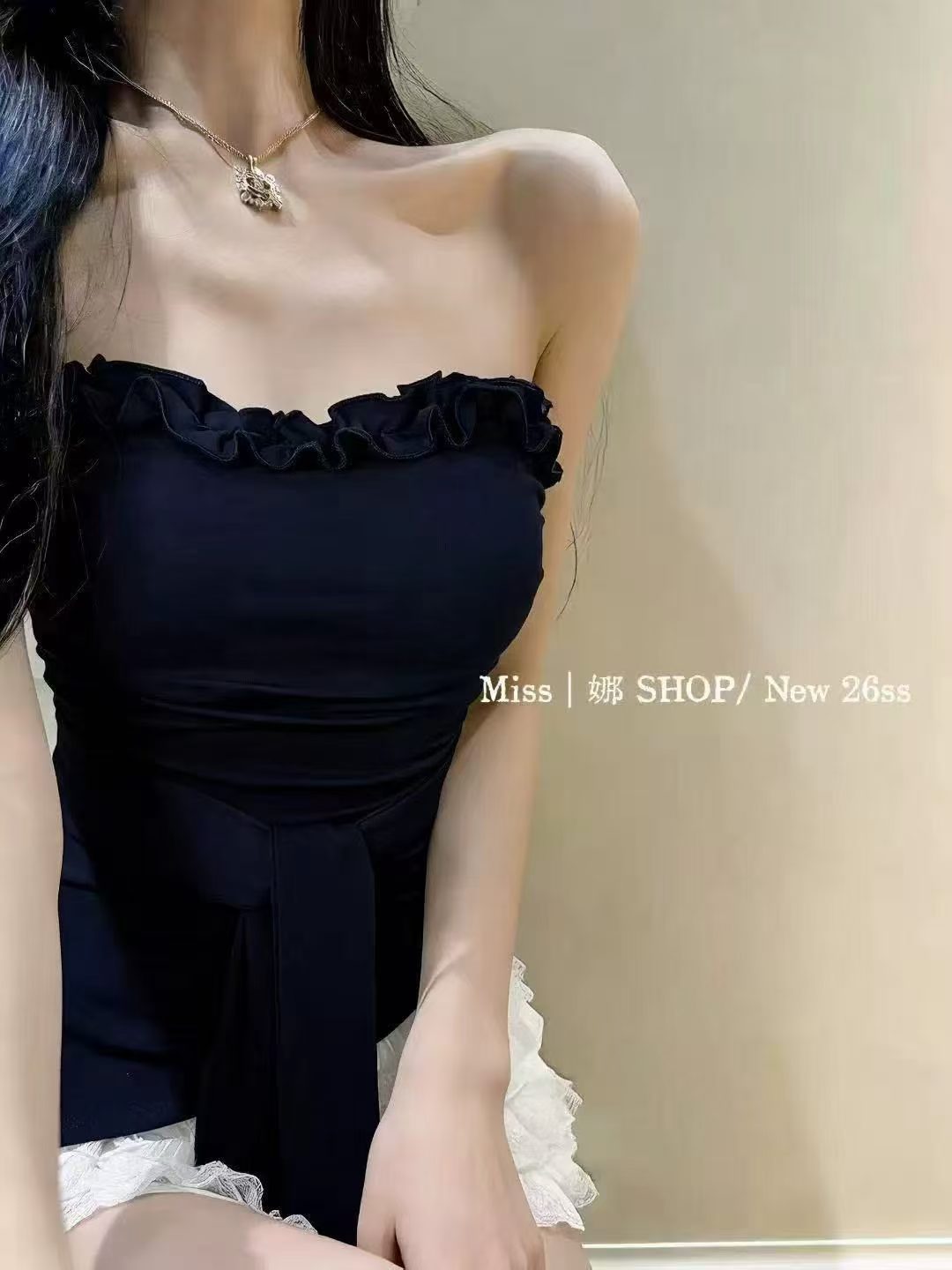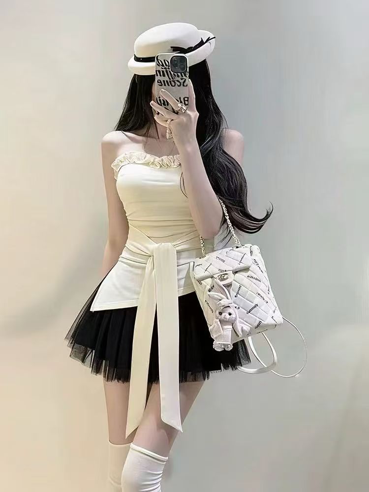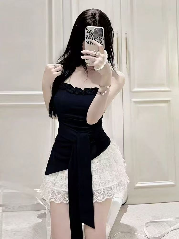 달콤함 프릴 나비 매듭 스트랩 튜브탑 맨위 여성 여름 부드러운 바람 몸매 가꾸기 한 부서 조끼