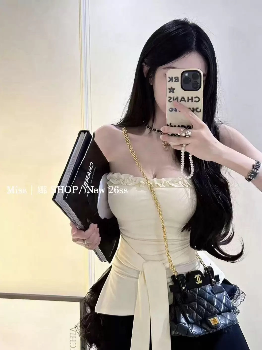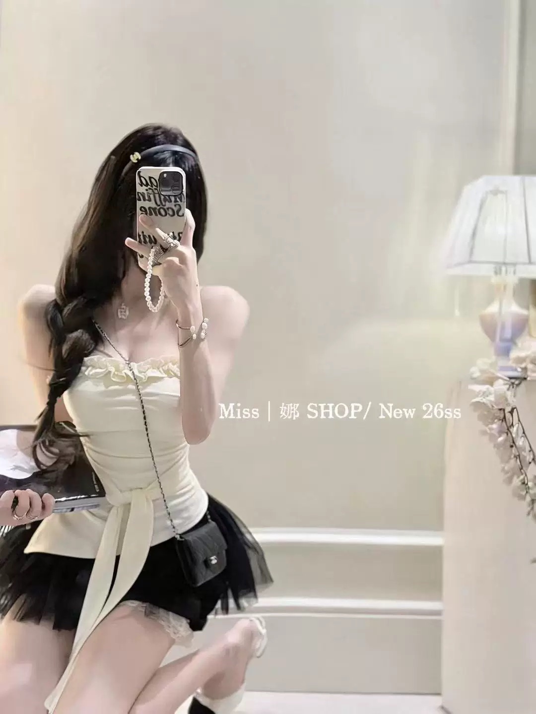 2026 열세 개 이른 봄 새로운 고대 조기 달콤한 자매 구슬 빛 느낌 프릴 비스듬한 어깨 작은 셔츠