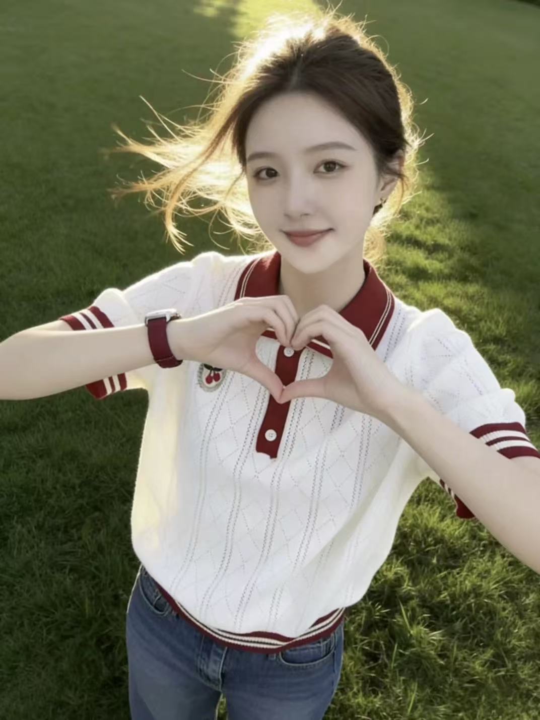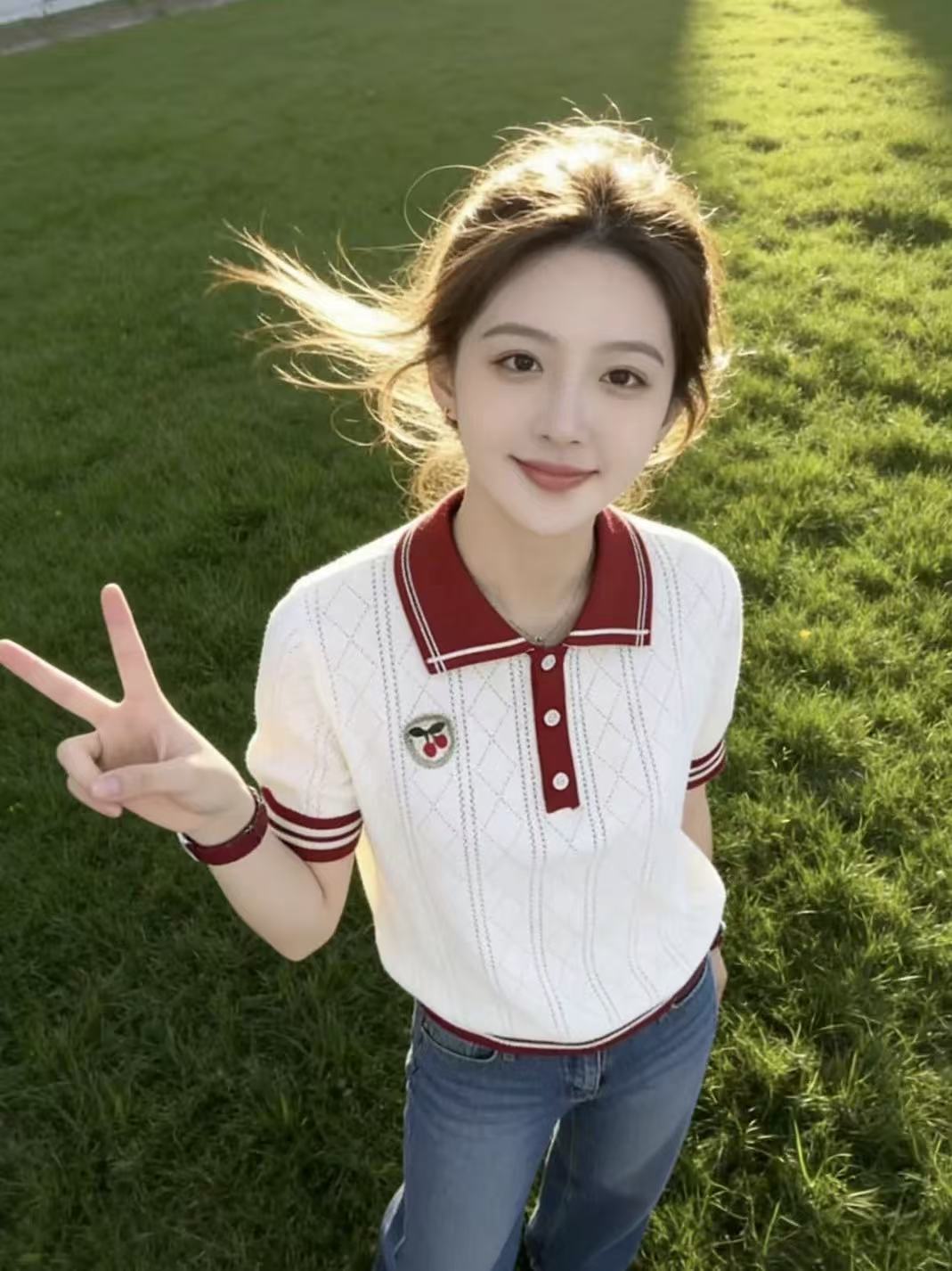 한 부서 달콤한 스타일 POLO 칼라 반팔 티셔츠 여성 2026 여름 새로운 올해 인기 폭발 슈퍼 잘 생긴 맨위