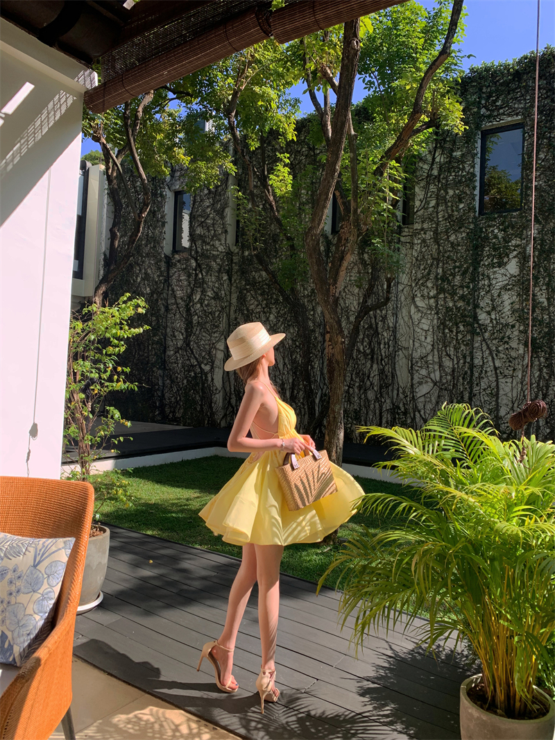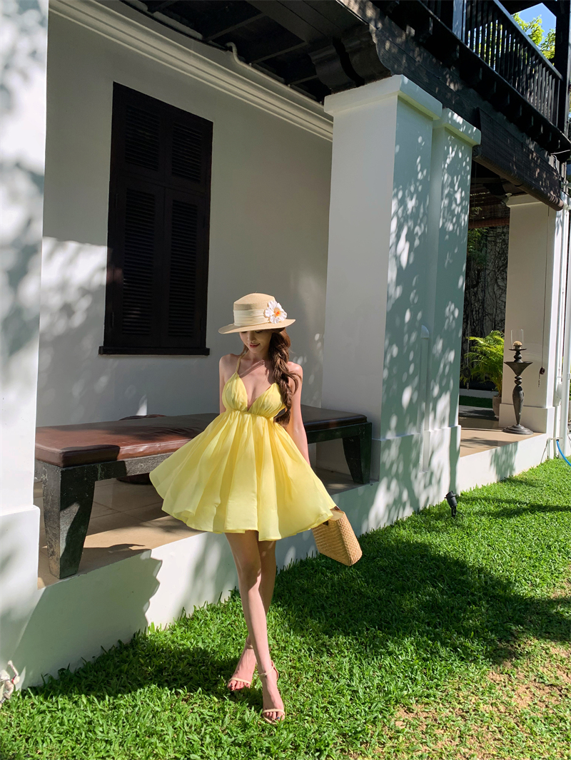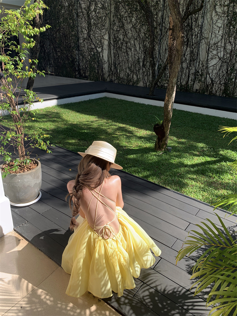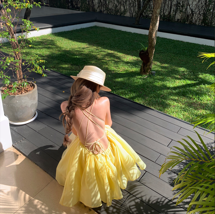 실사 순수한 욕망 바람 작은 섹시함 행침 목 리본 주름 표지 배 대 백리스 수 있습니다. 조정 벨트 몸매 가꾸기 새틴 치마
