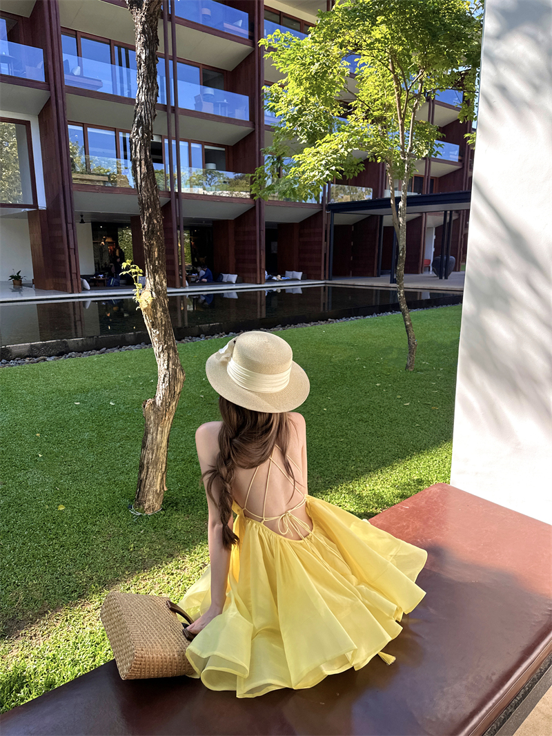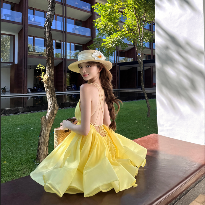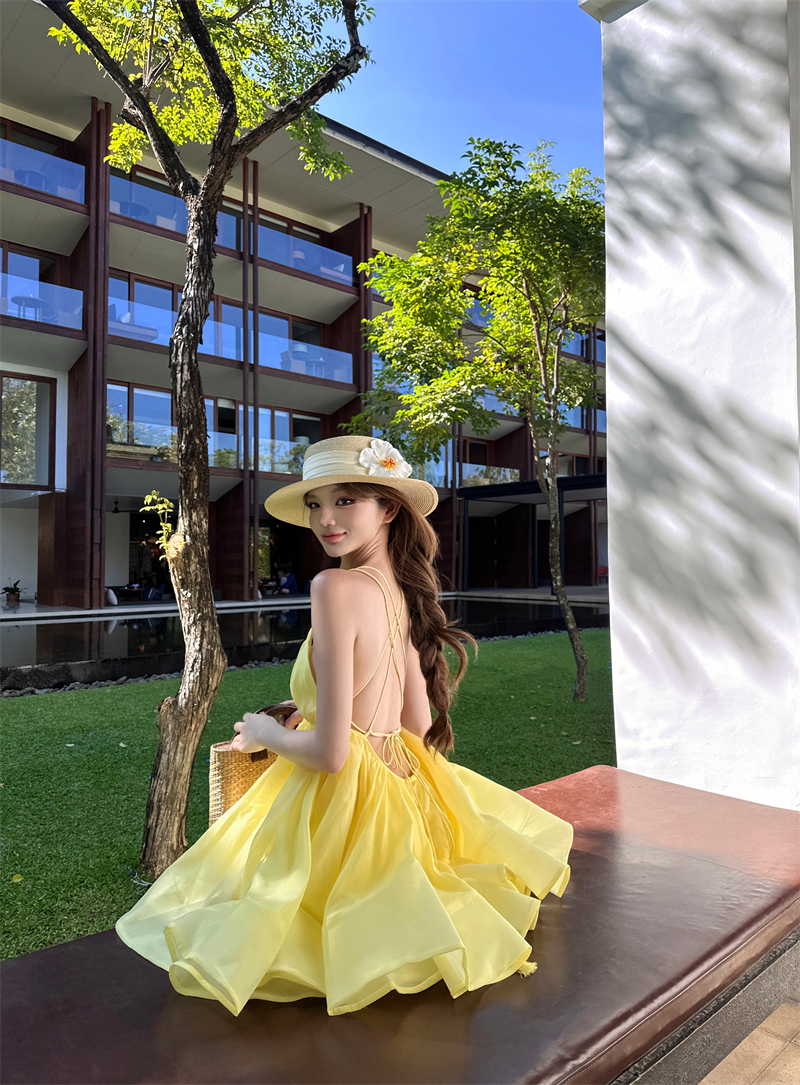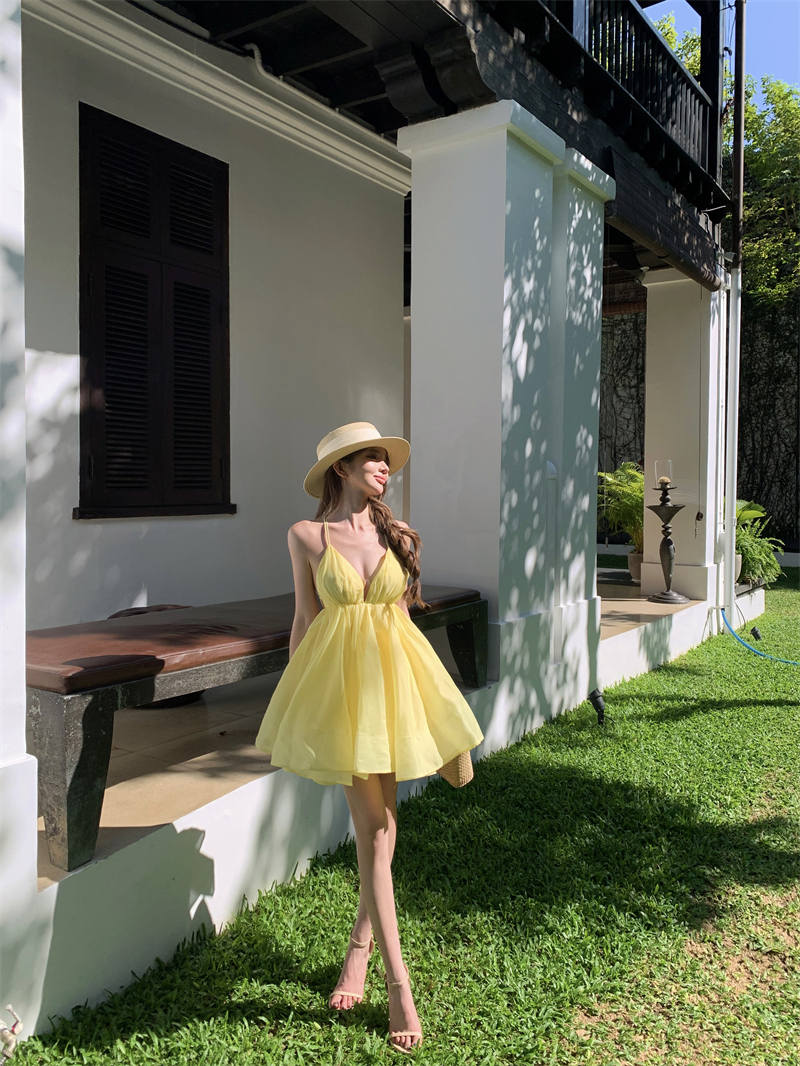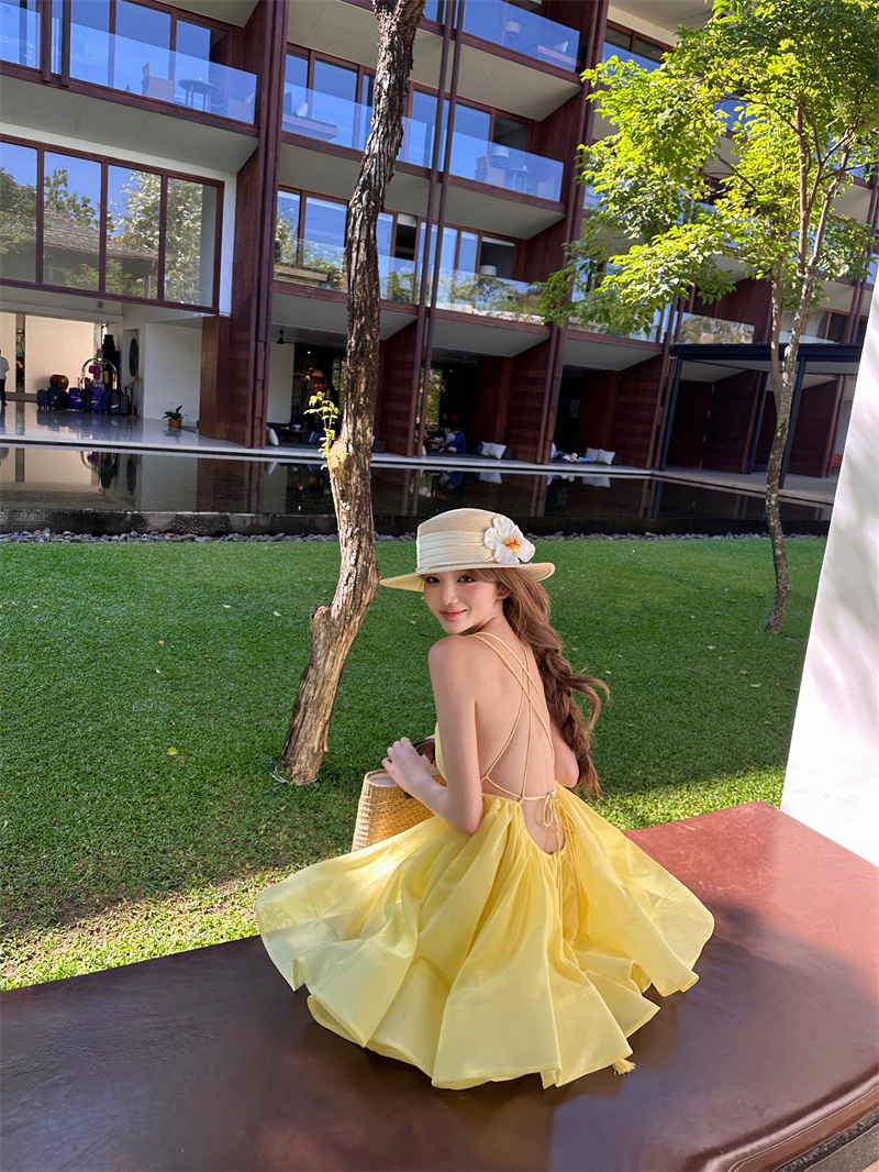 실사 순수한 욕망 바람 작은 섹시함 행침 목 리본 주름 표지 배 대 백리스 수 있습니다. 조정 벨트 몸매 가꾸기 새틴 치마