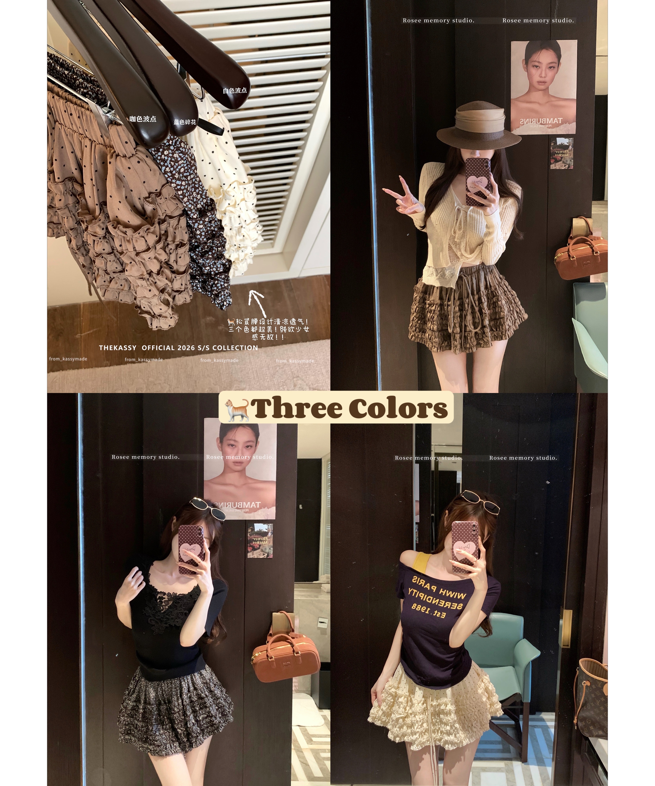 실사 한 부서 회색 프릴 나비 매듭 반팔 티셔츠 불규칙 체크무늬 반 스커트