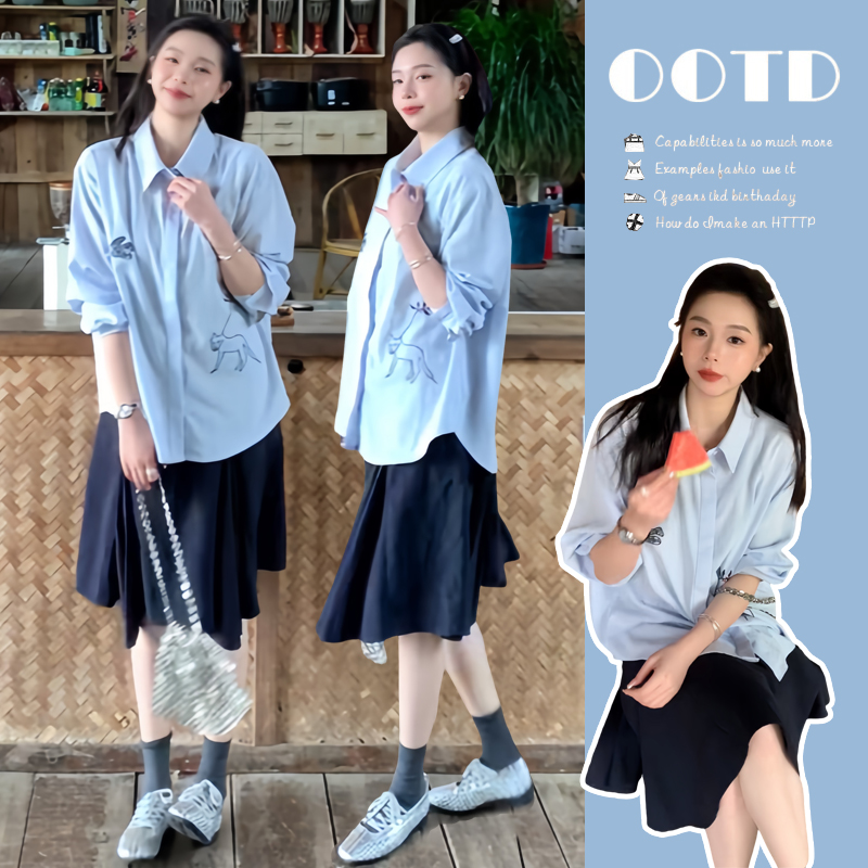 봄 아모이 긴팔 출산 착용 맨위 2026 한국 스타일 루즈핏 빅 사이즈 투피스 세트 임산부 반신 치마 세트