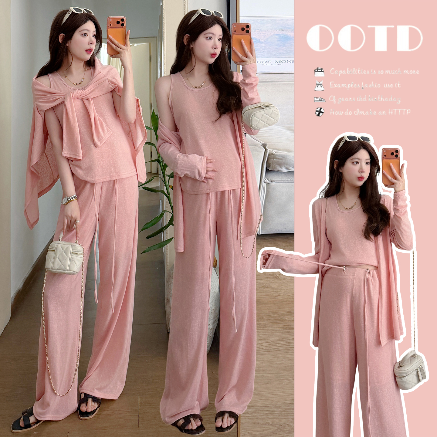 봄 여름 새로운 출산 착용 3종 세트 매운맛 엄마 섹션 2026 인터넷 유명인 섹션 임신 기간 착용 가져 가라. 빅 사이즈 세트 와이드 레그 팬츠