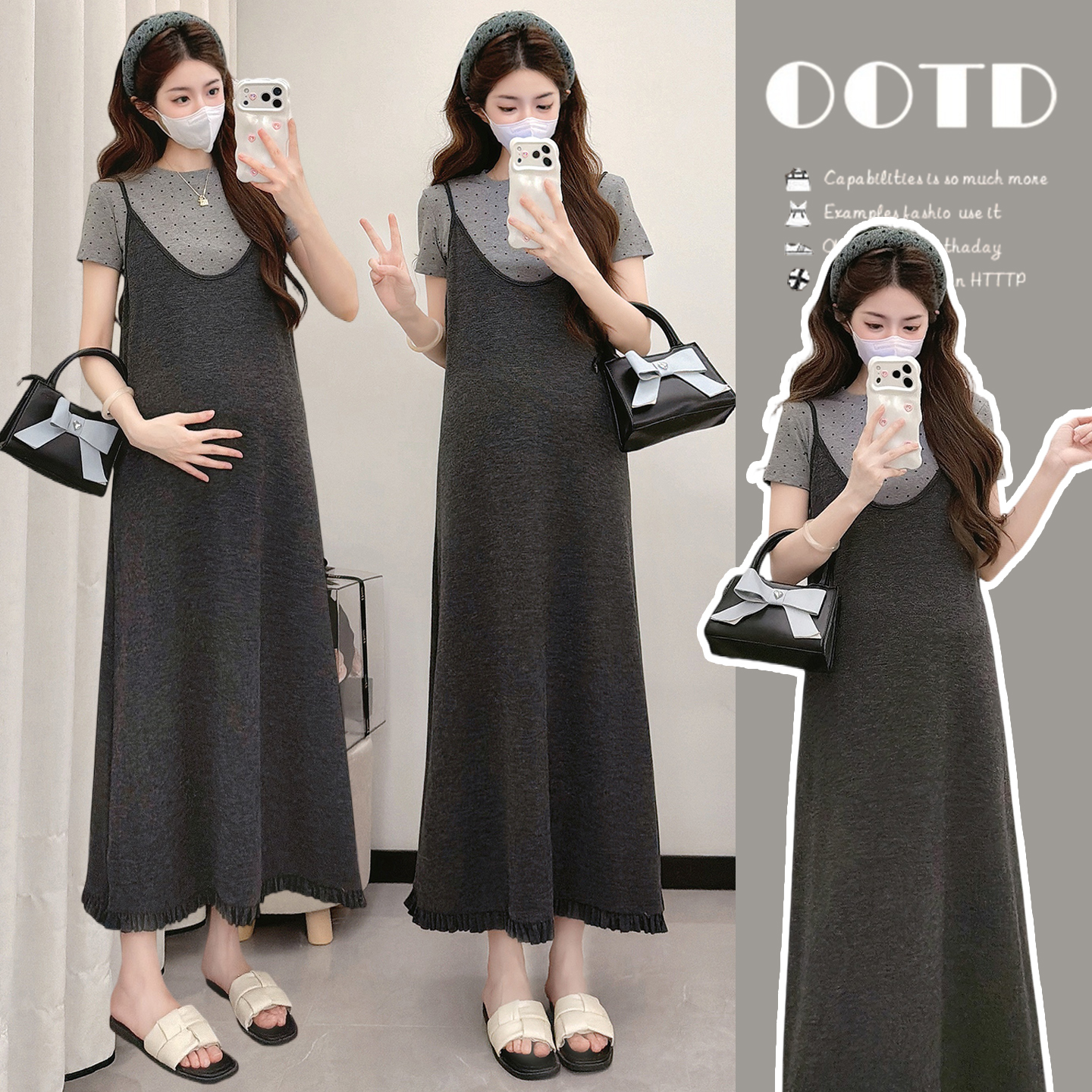 매운맛 엄마 임신 기간 착용 가져 가라. 슬립 드레스 2026 여름 새로운 슬림해 보이는 반팔 맨위 투피스 세트 출산 착용