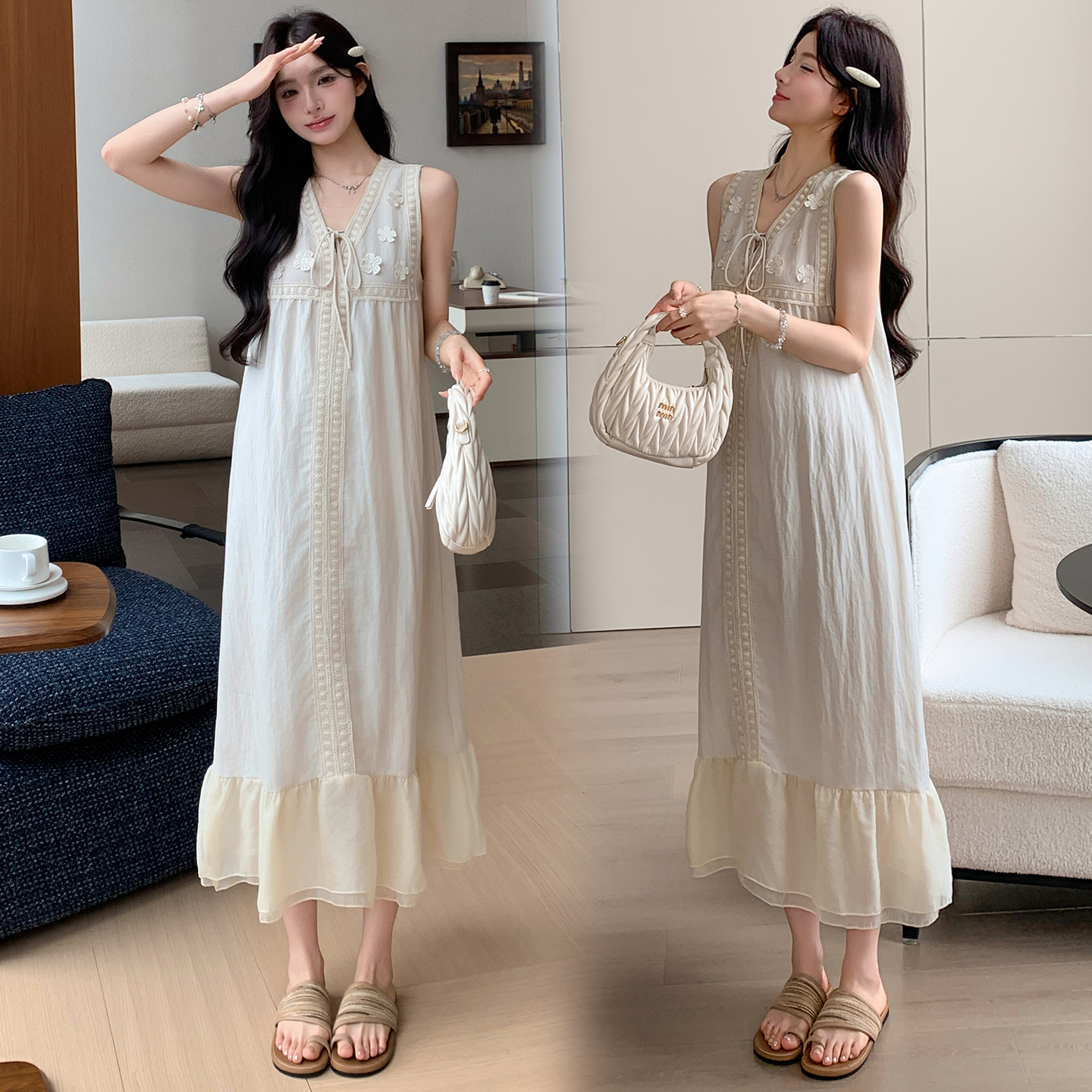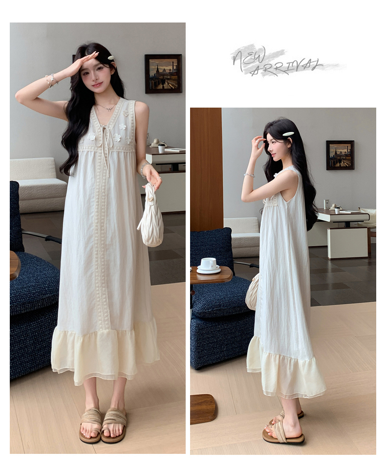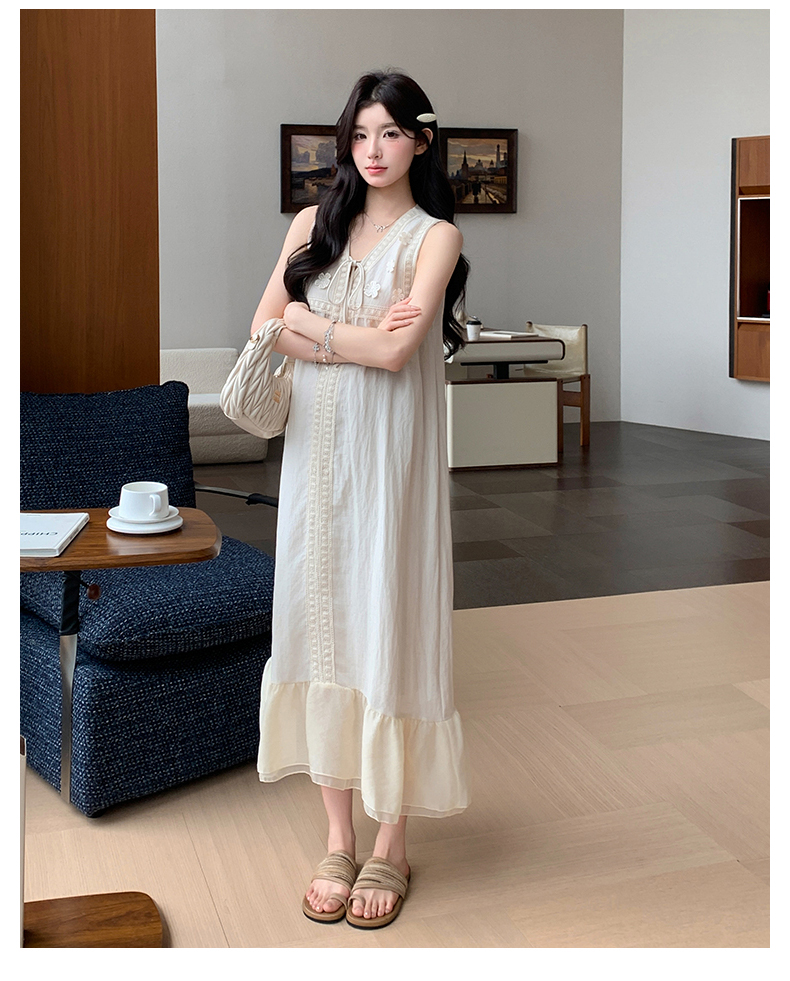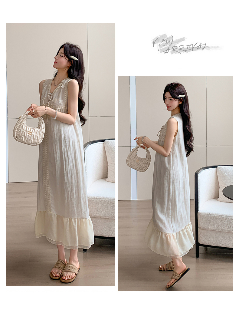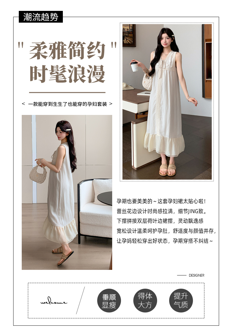 2026 여름 새로운 출산 착용 빅 사이즈 민소매 매운맛 엄마 루즈핏 슬림해 보이는 패치워크 임신 기간 착용 가져 가라. 드레스