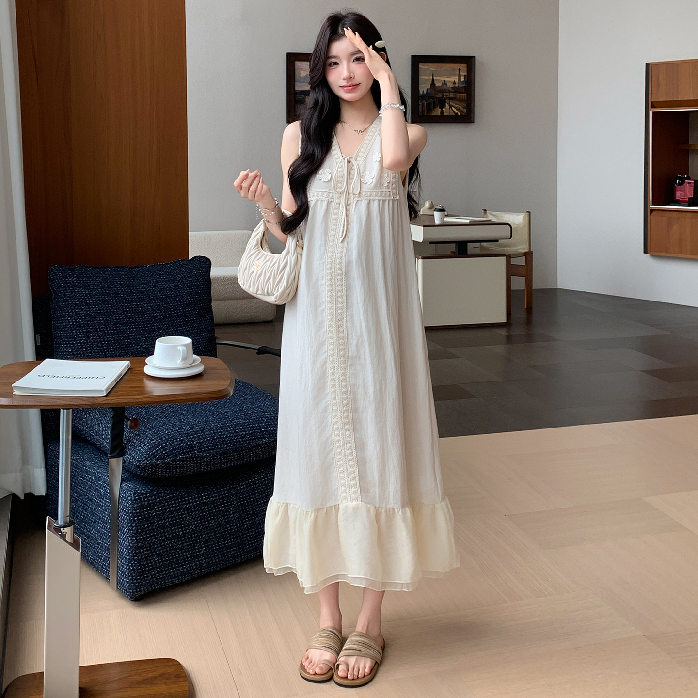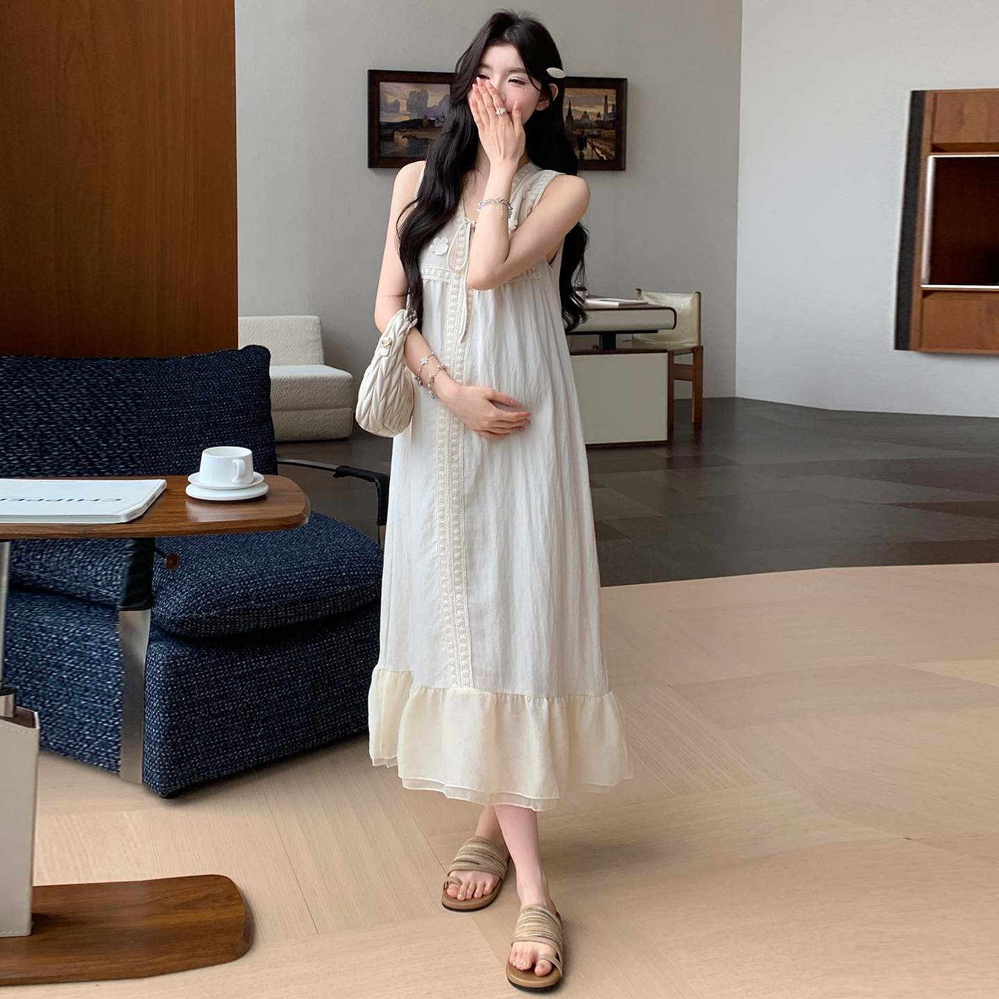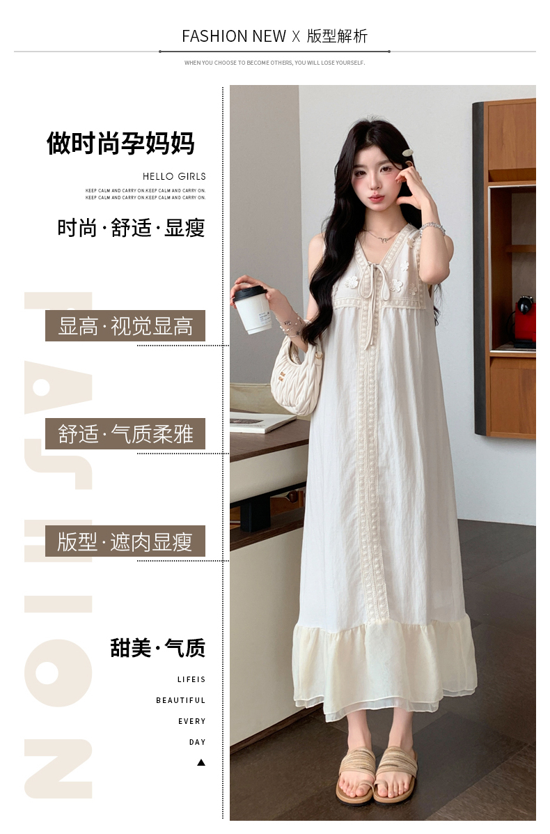인터넷 유명인 섹션 임신 기간 착용 가져 가라. 중간 길이 치마 2026 여름 새로운 빅 사이즈 루즈핏 슬림해 보이는 출산 착용 드레스