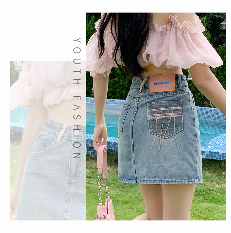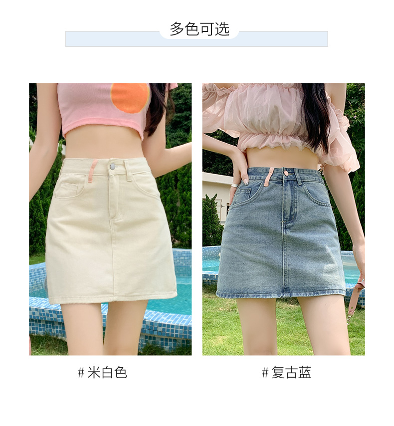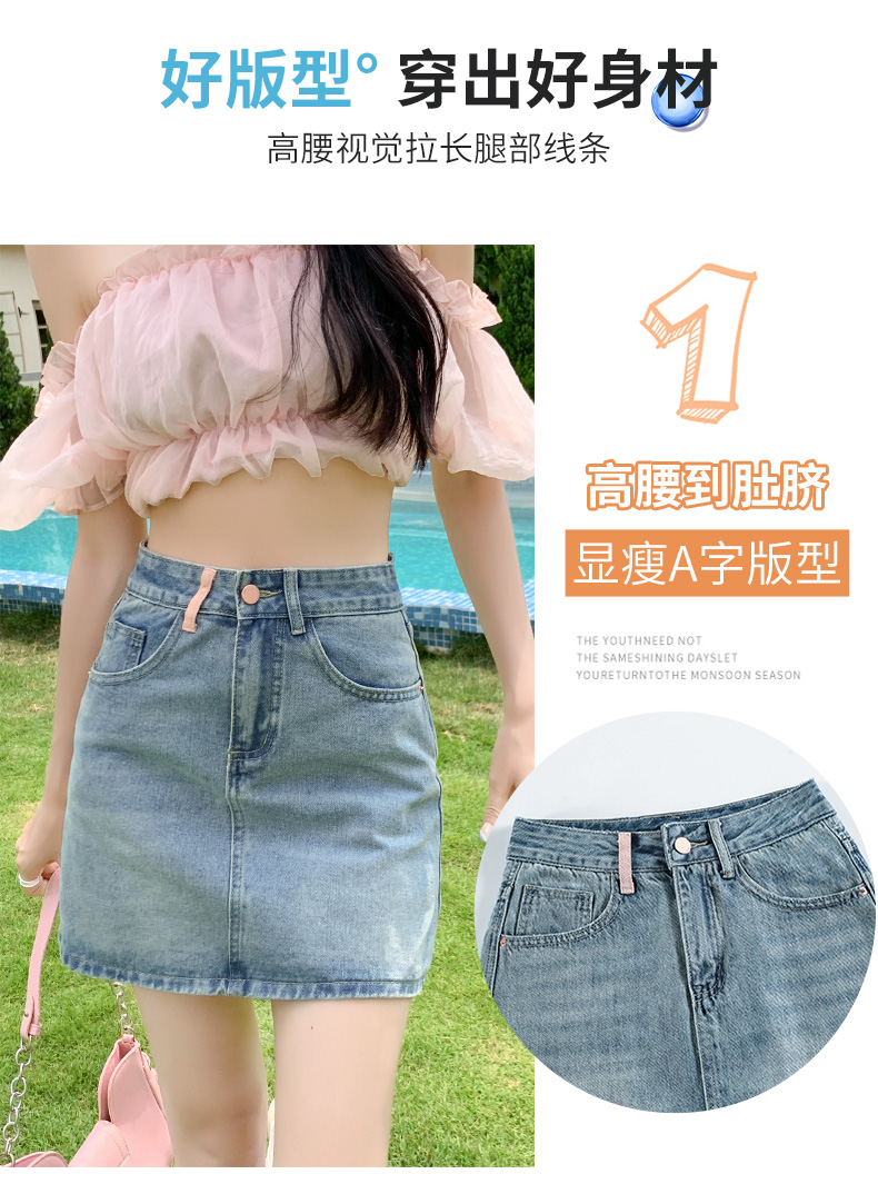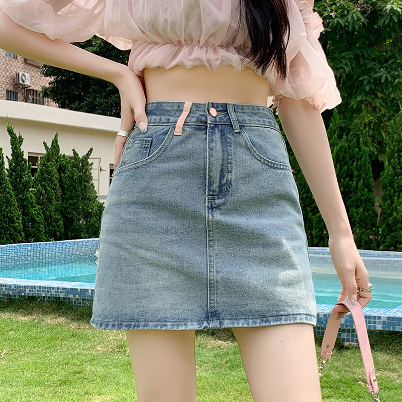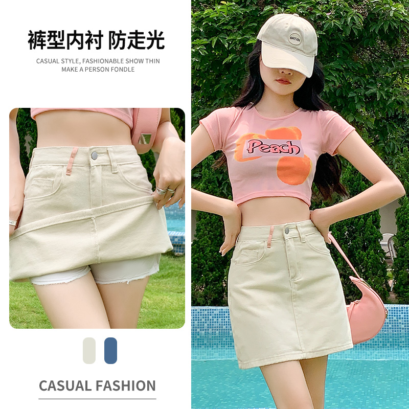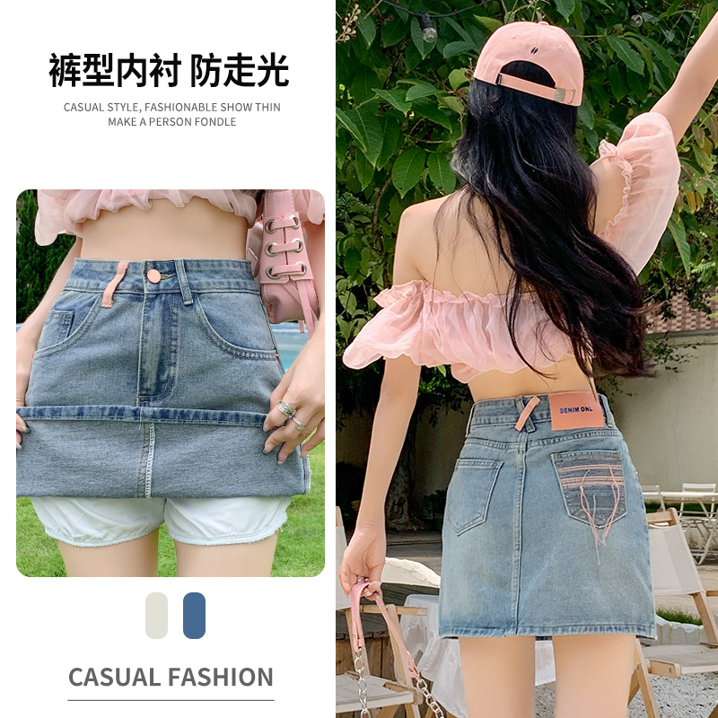 실사 데님 미니 스커트 여성 여름 새로운 2026 연간 최고 허리 바지 노출 방지 한 마디 타이트 스커트 반신 치마