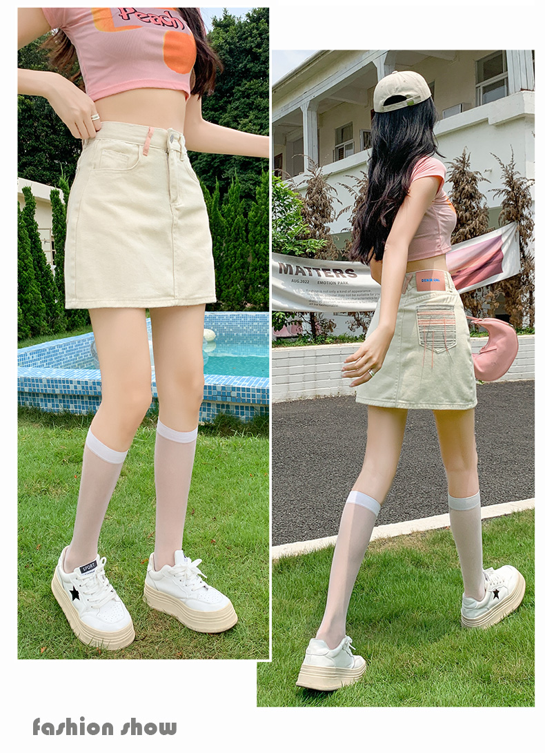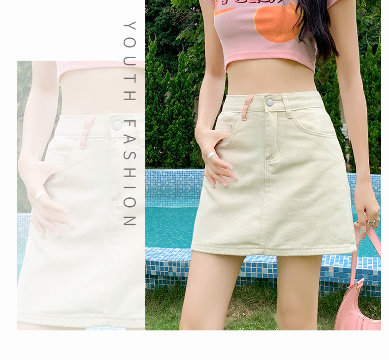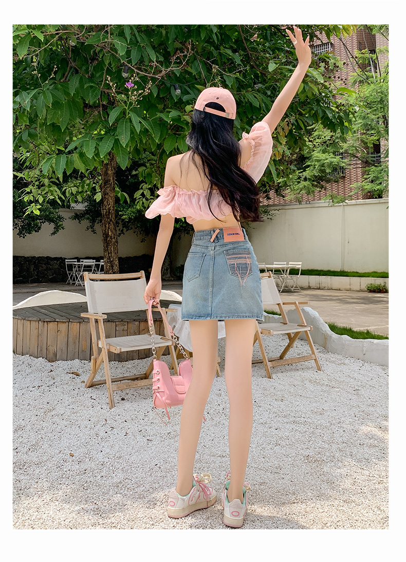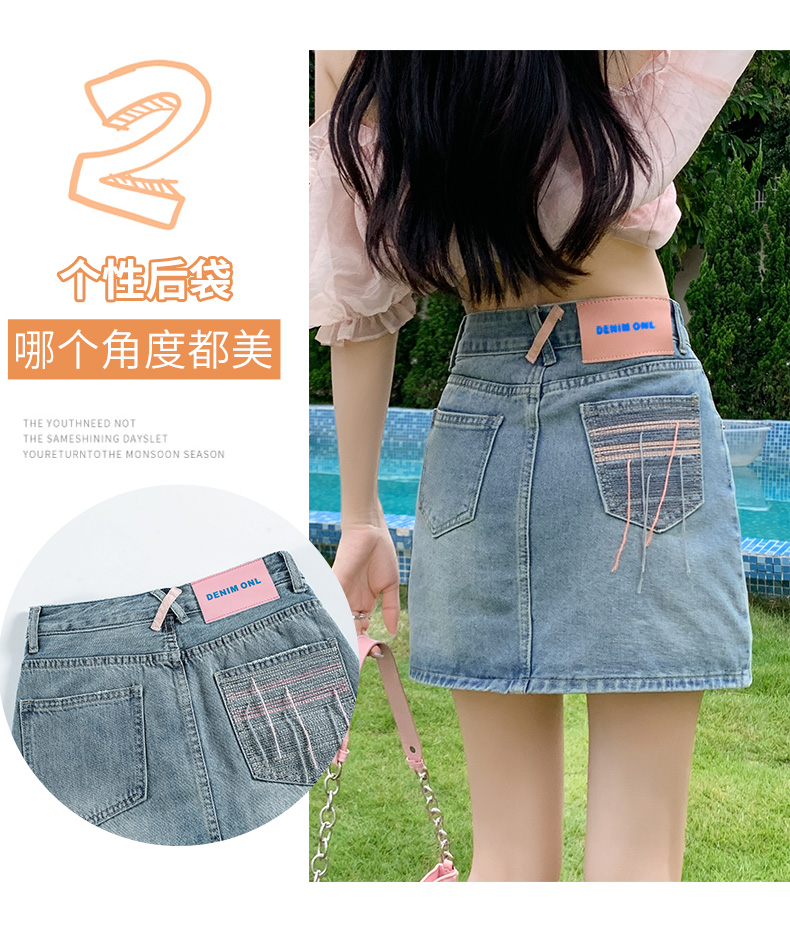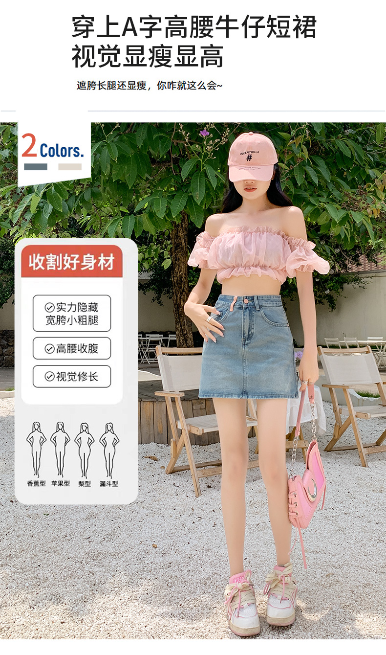 실사 데님 미니 스커트 여성 여름 새로운 2026 연간 최고 허리 바지 노출 방지 한 마디 타이트 스커트 반신 치마