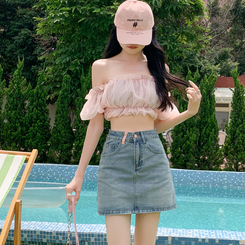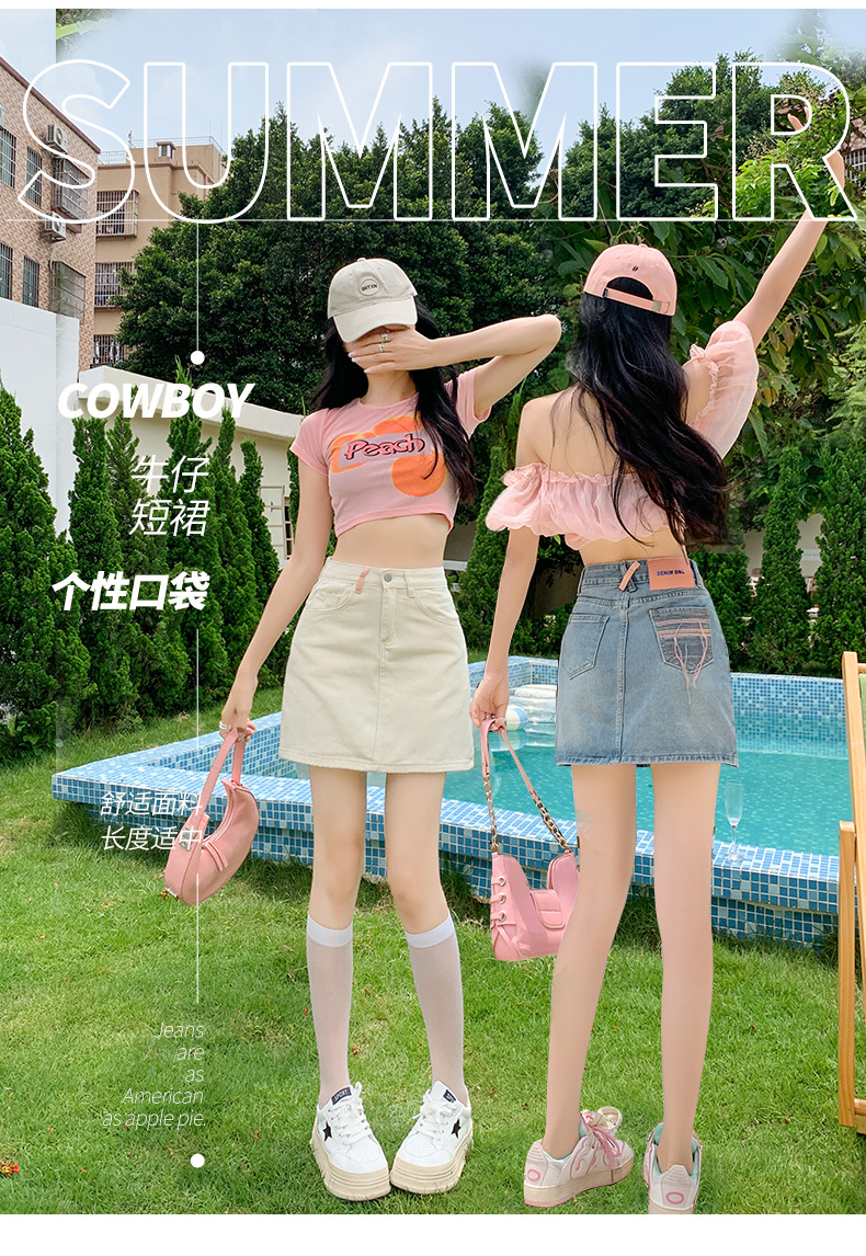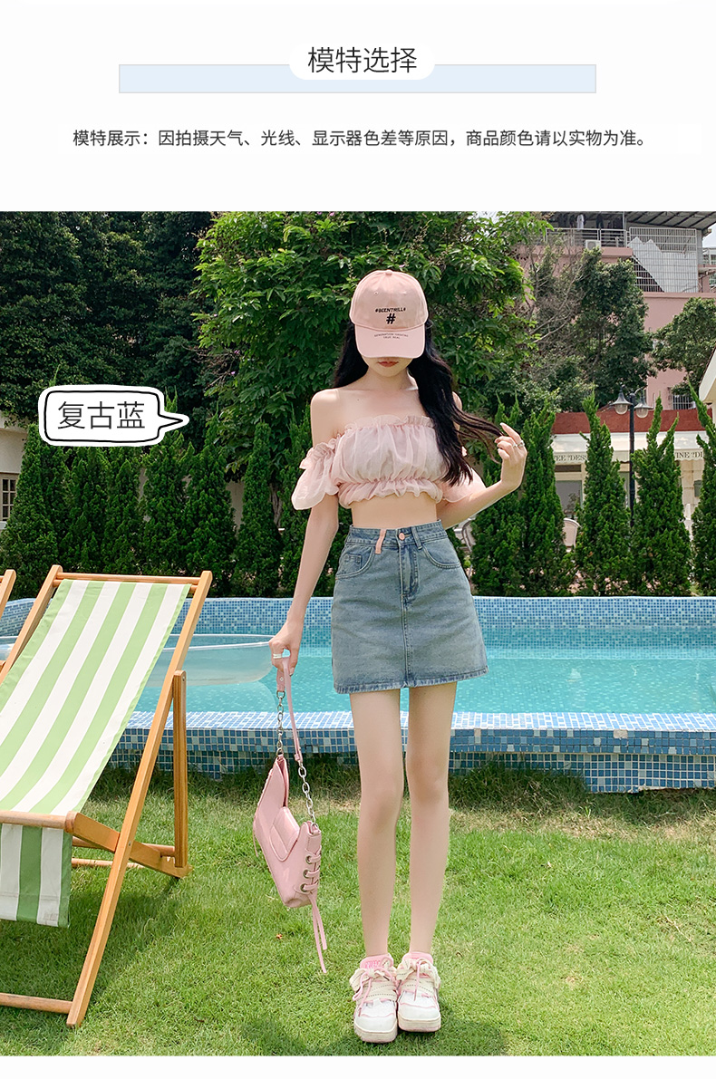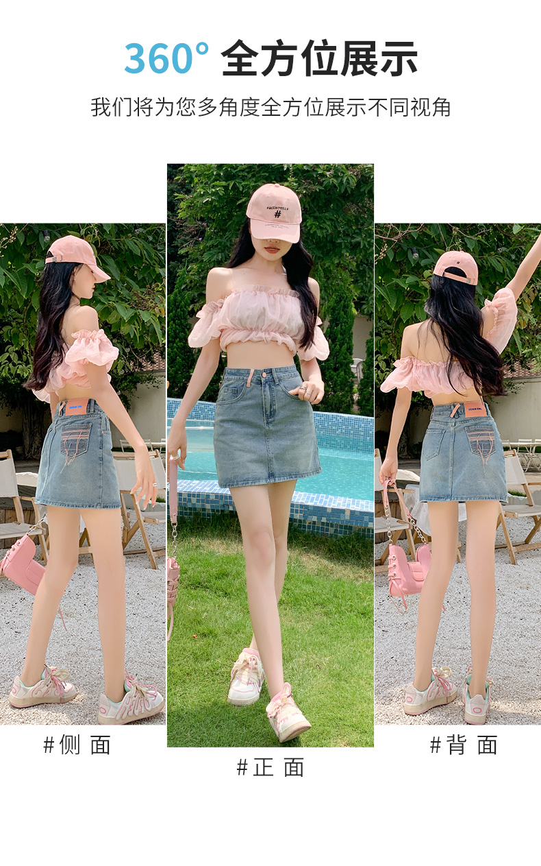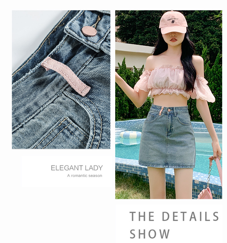 실사 핑크색 데님 짧은 치마바지 여성 여름 얇은 스타일 하이웨이스트 슬림해 보이는 반바지 디자인 센스 인터넷 유명인 핫걸 뜨거운 바지