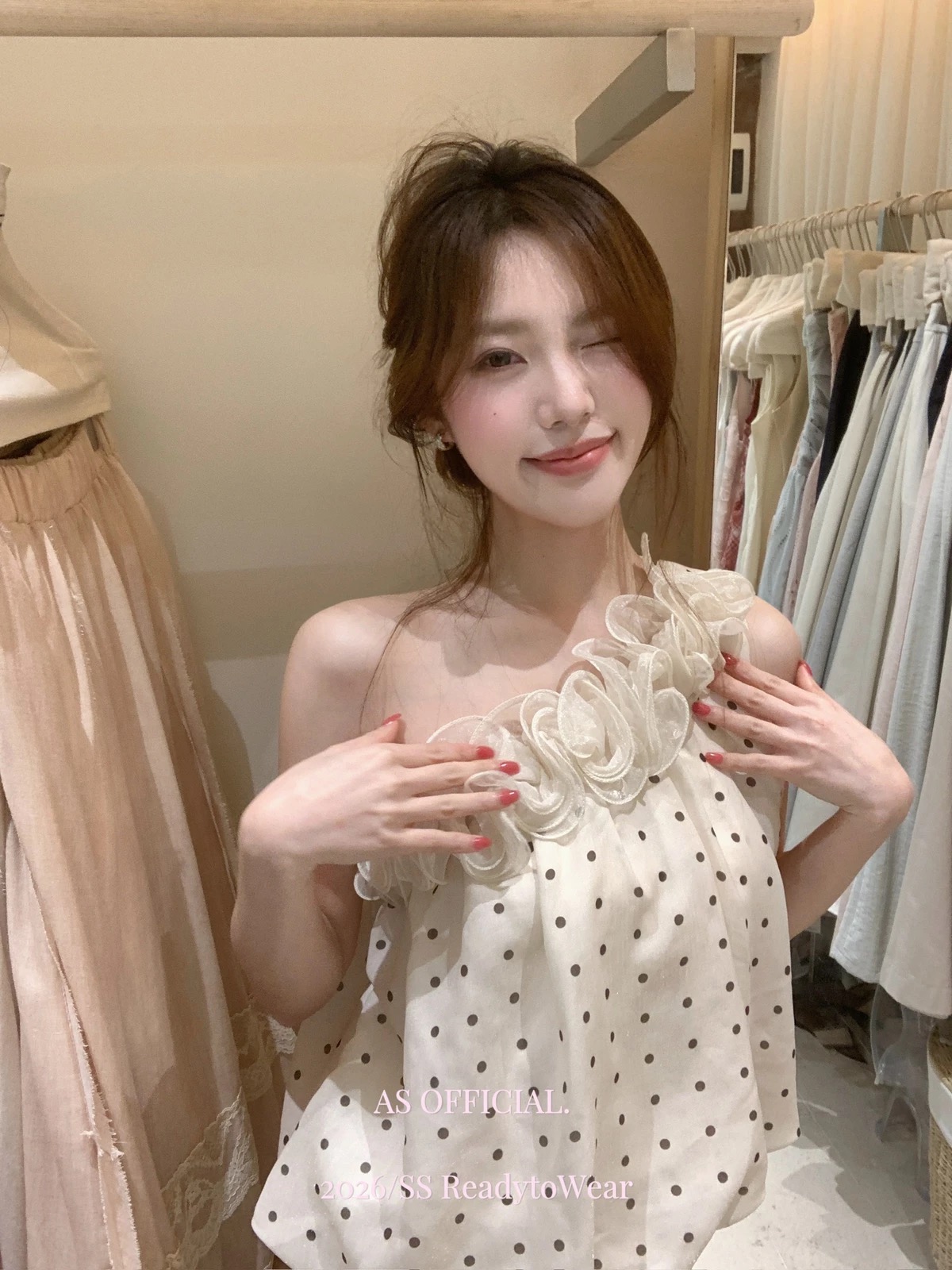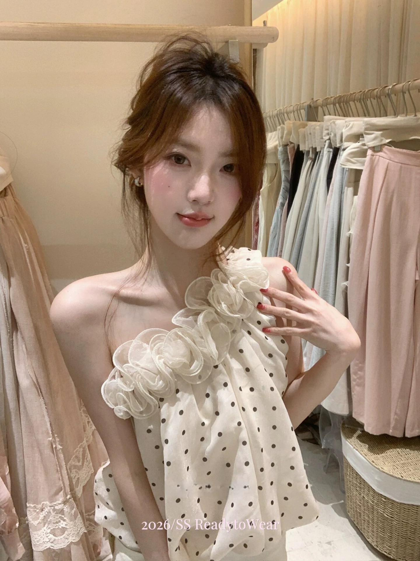 4 29 pm20 신제품 켜기 새로운 하나 달콤한 복숭아 yikett 도트 무늬 드레스
