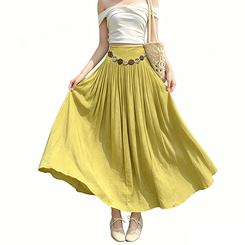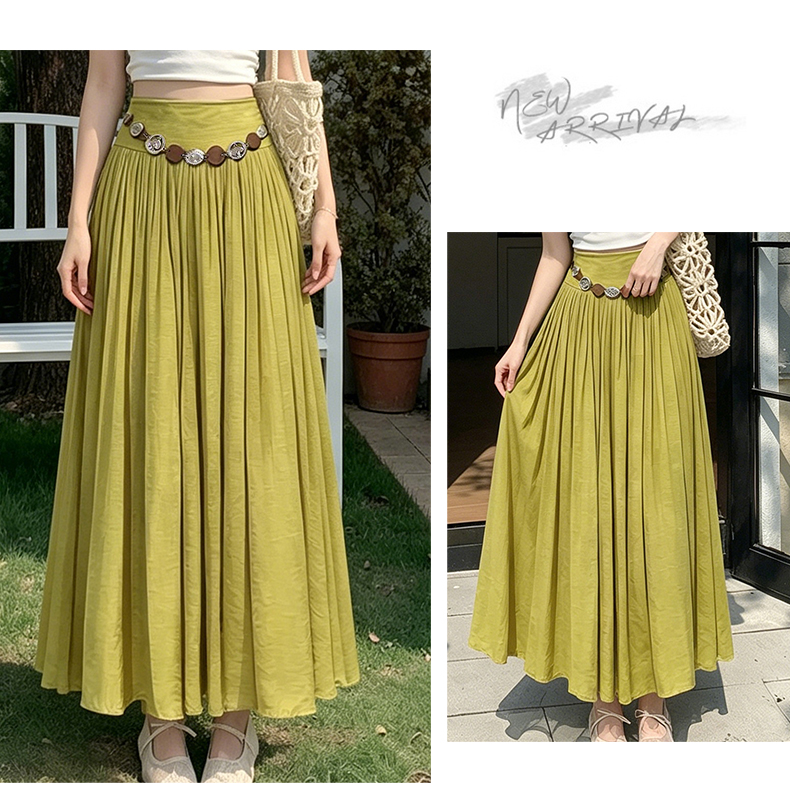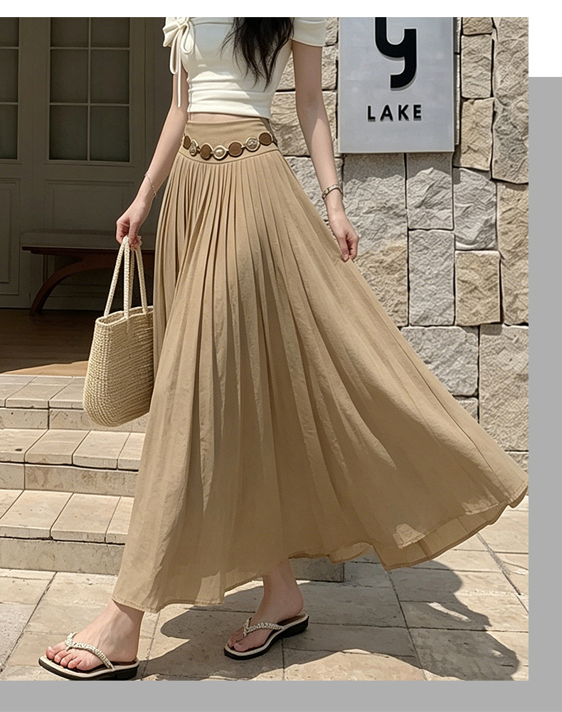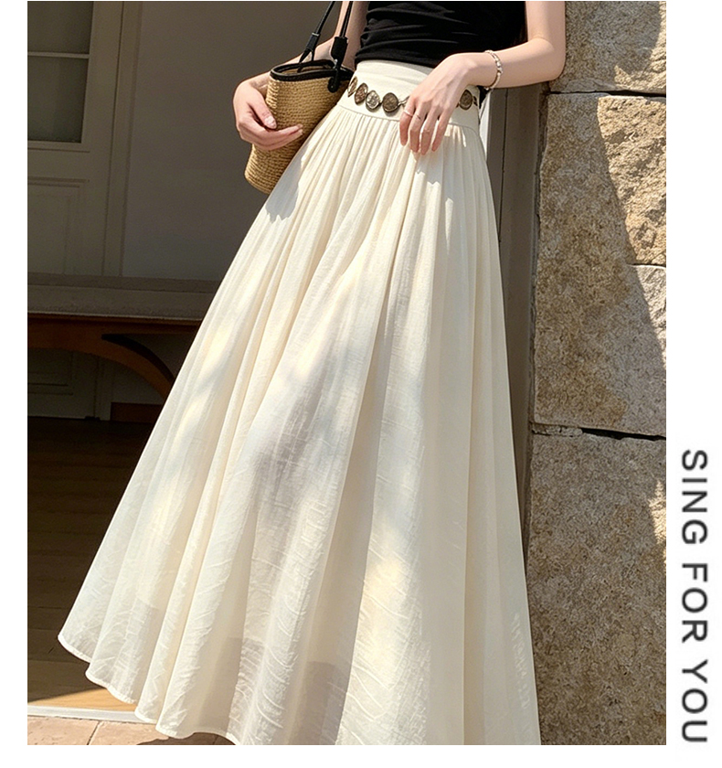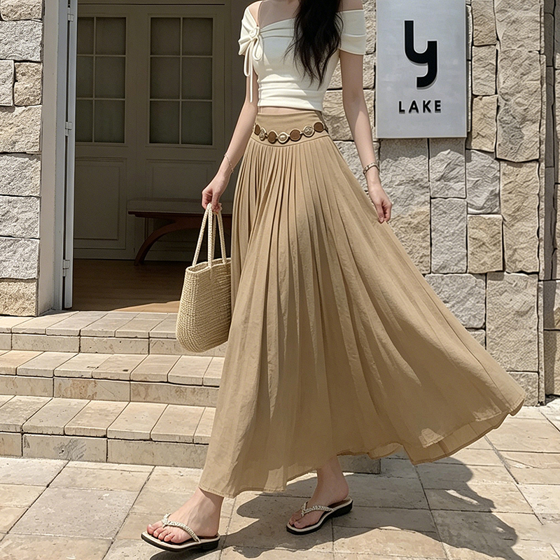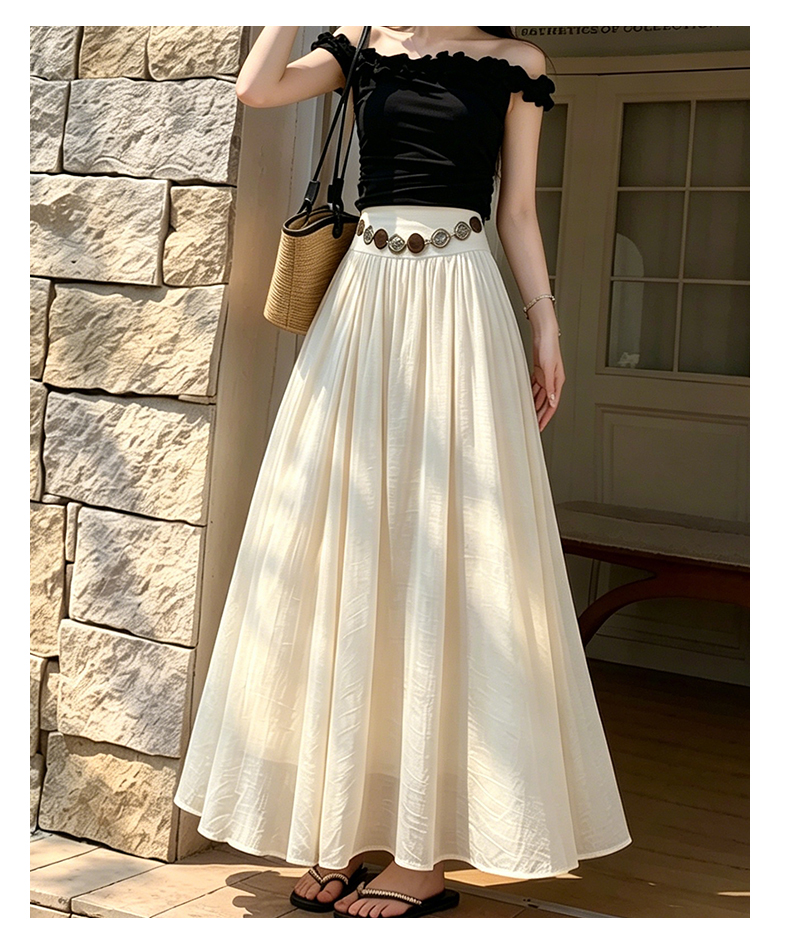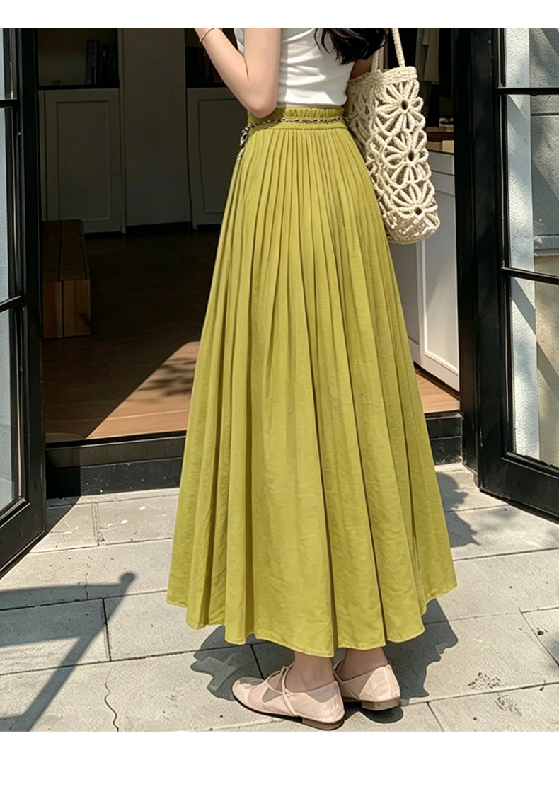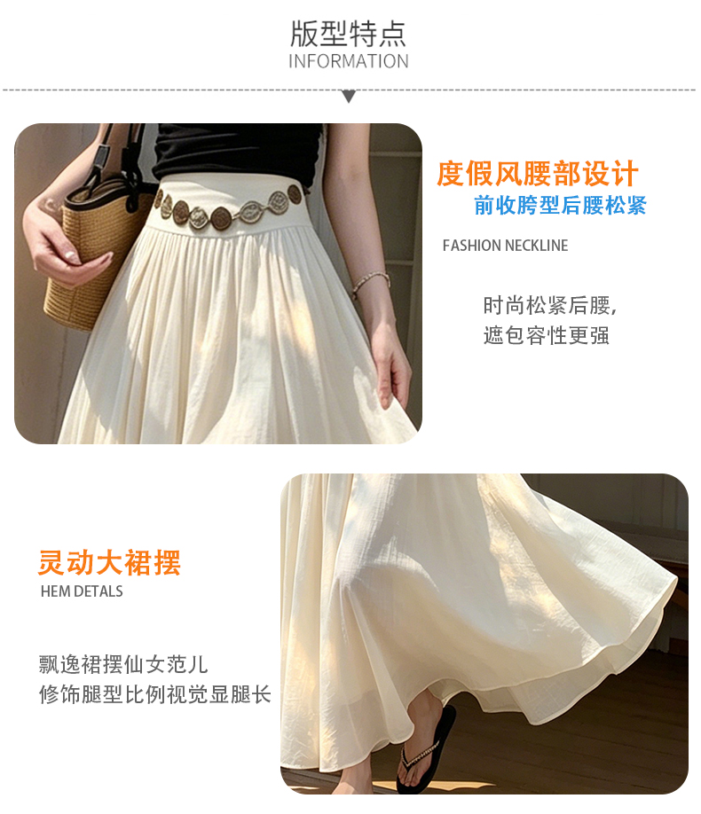 실사 2026 봄 여름 새로운 아마 치마 색상 시스템 슈퍼 아름다움 감기 센스 주간 실크 주름 마 허리 수축 질감 반신 롱 스커트