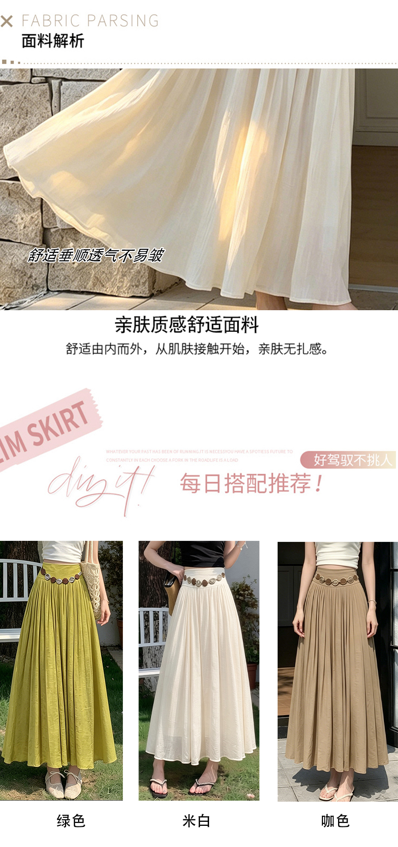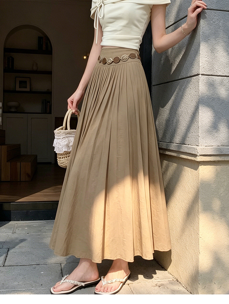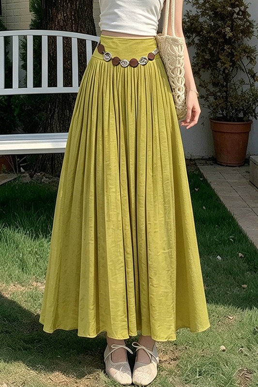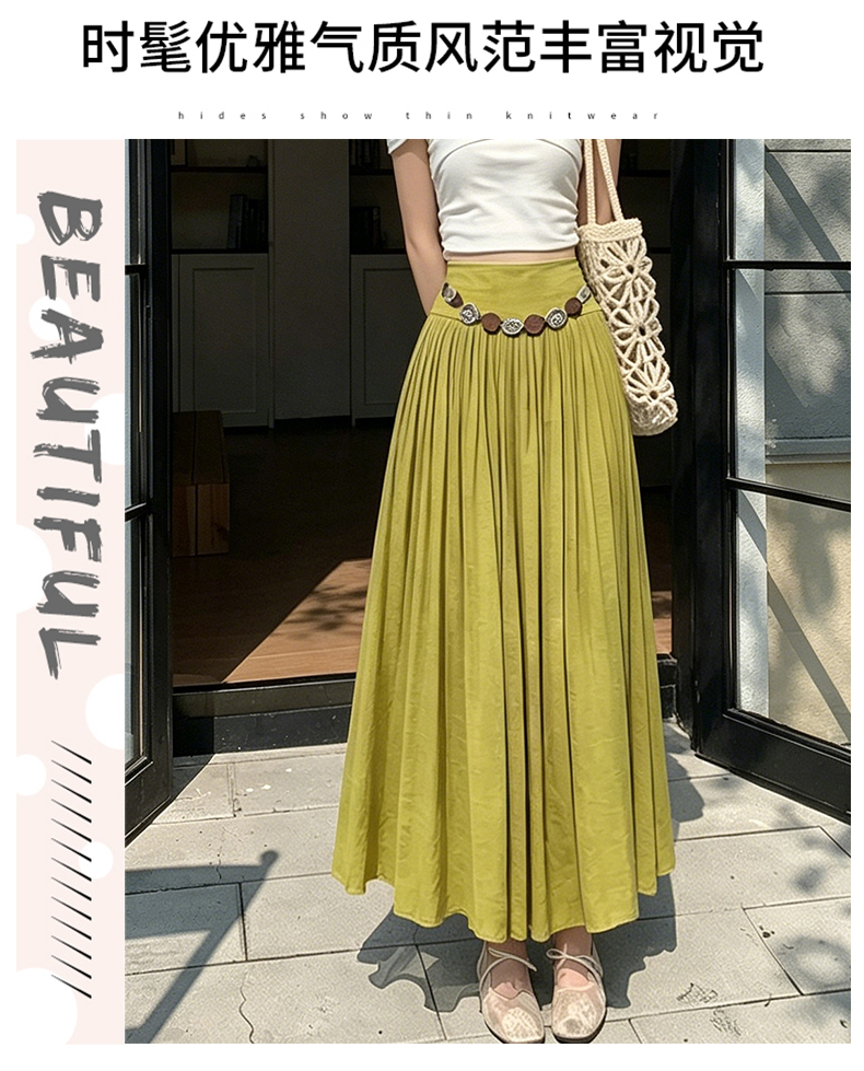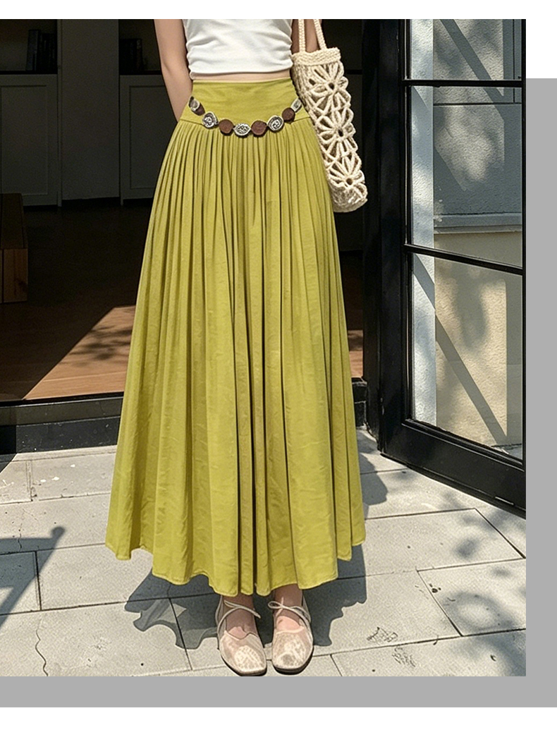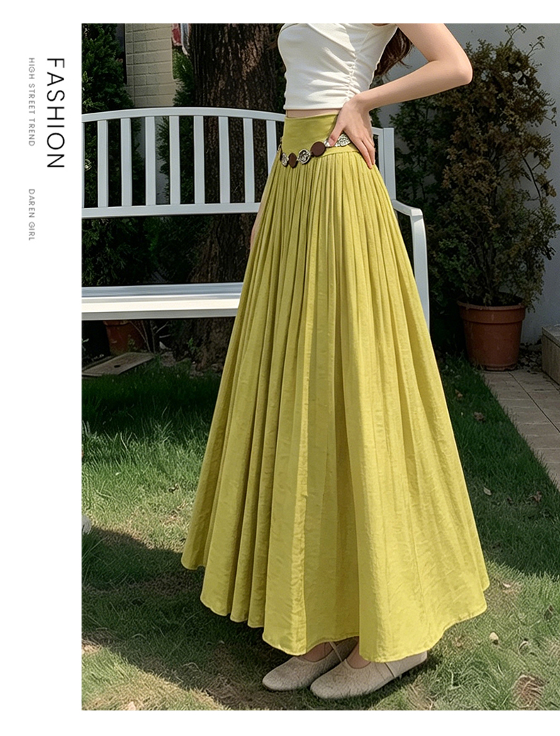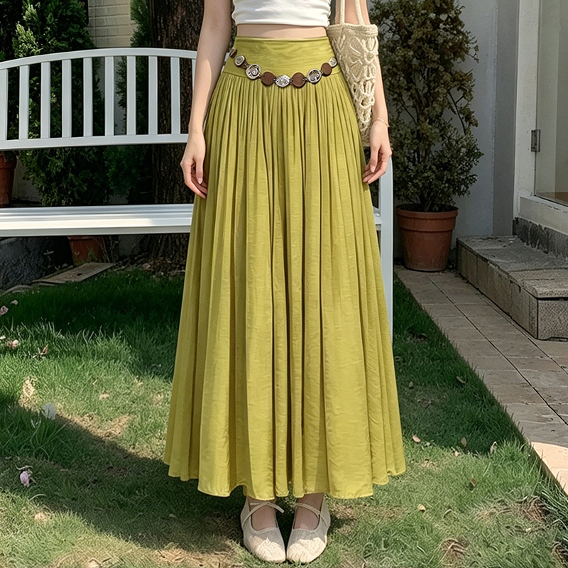 실사 2026 봄 여름 새로운 아마 치마 색상 시스템 슈퍼 아름다움 감기 센스 주간 실크 주름 마 허리 수축 질감 반신 롱 스커트