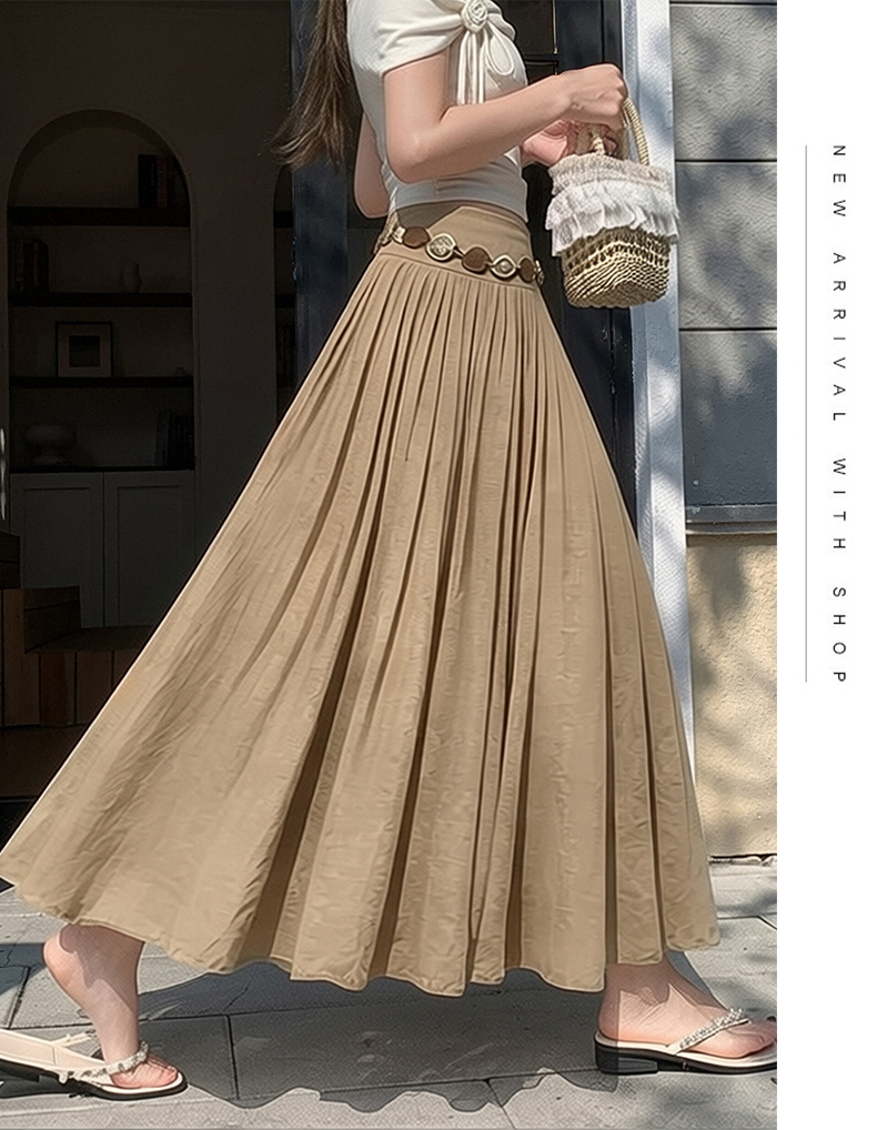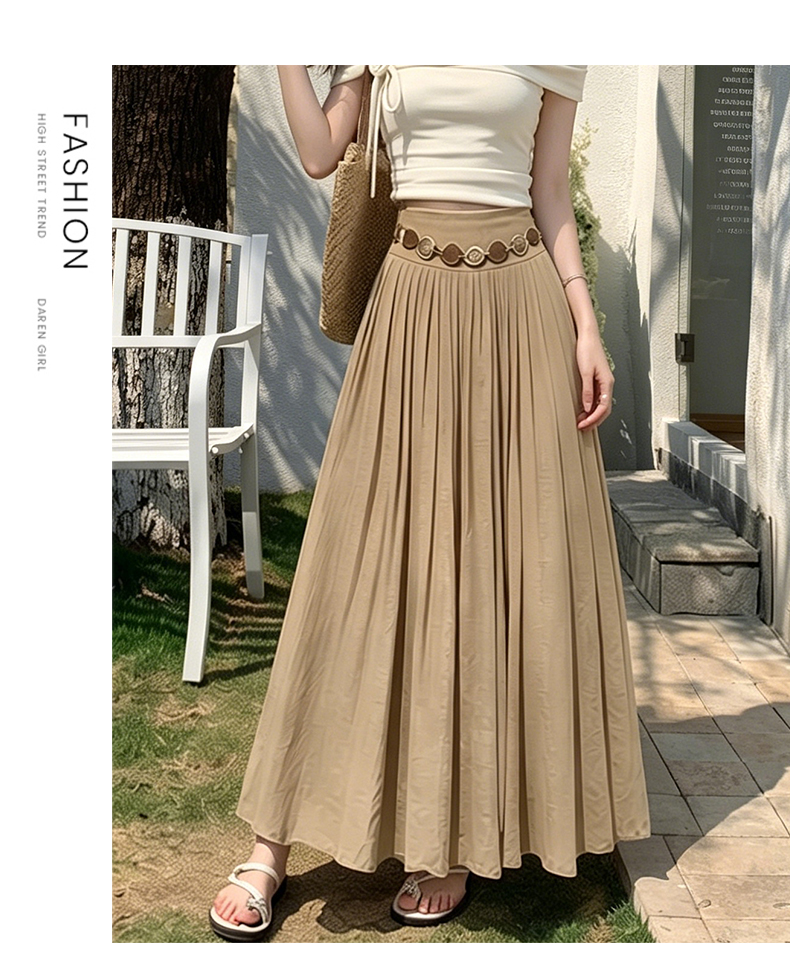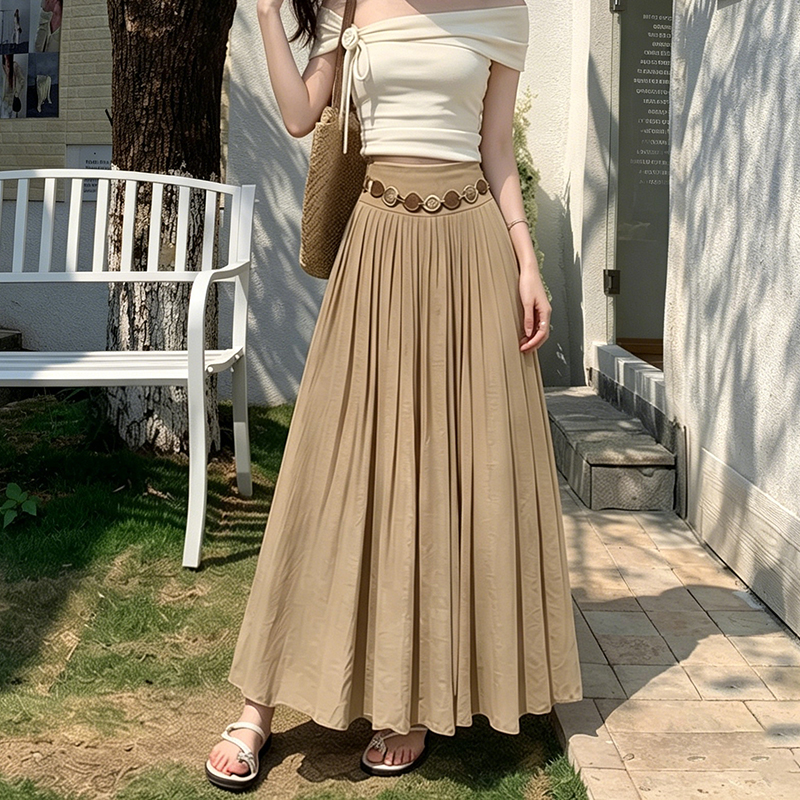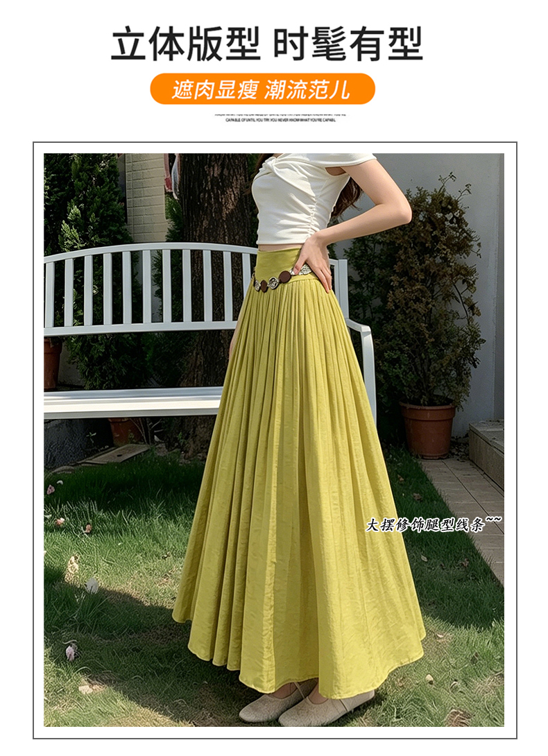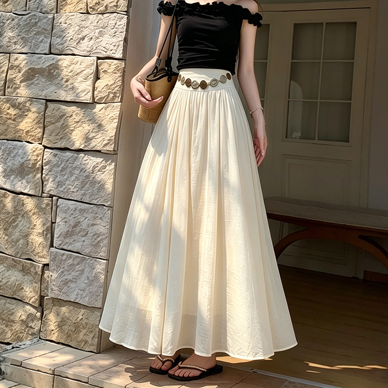 실사 화이트 쉬폰 반신 스커트 봄 여름 허리밴드 도루 센스 하이웨이스트 슬림해 보이는 큰 진자 플리츠 롱 코트 한 마디 롱 스커트