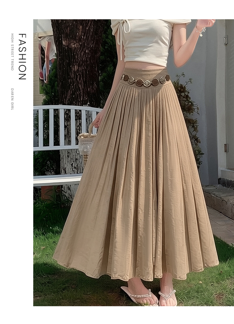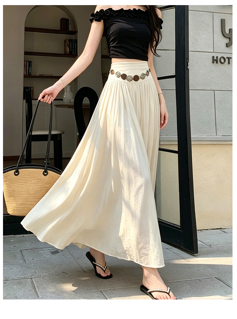실사 보헤미안 휴가 베이지 색 한 마디 반신 스커트 여성 봄 여름 얇은 스타일 치마 휴일 레트로 한 마디 롱 스커트