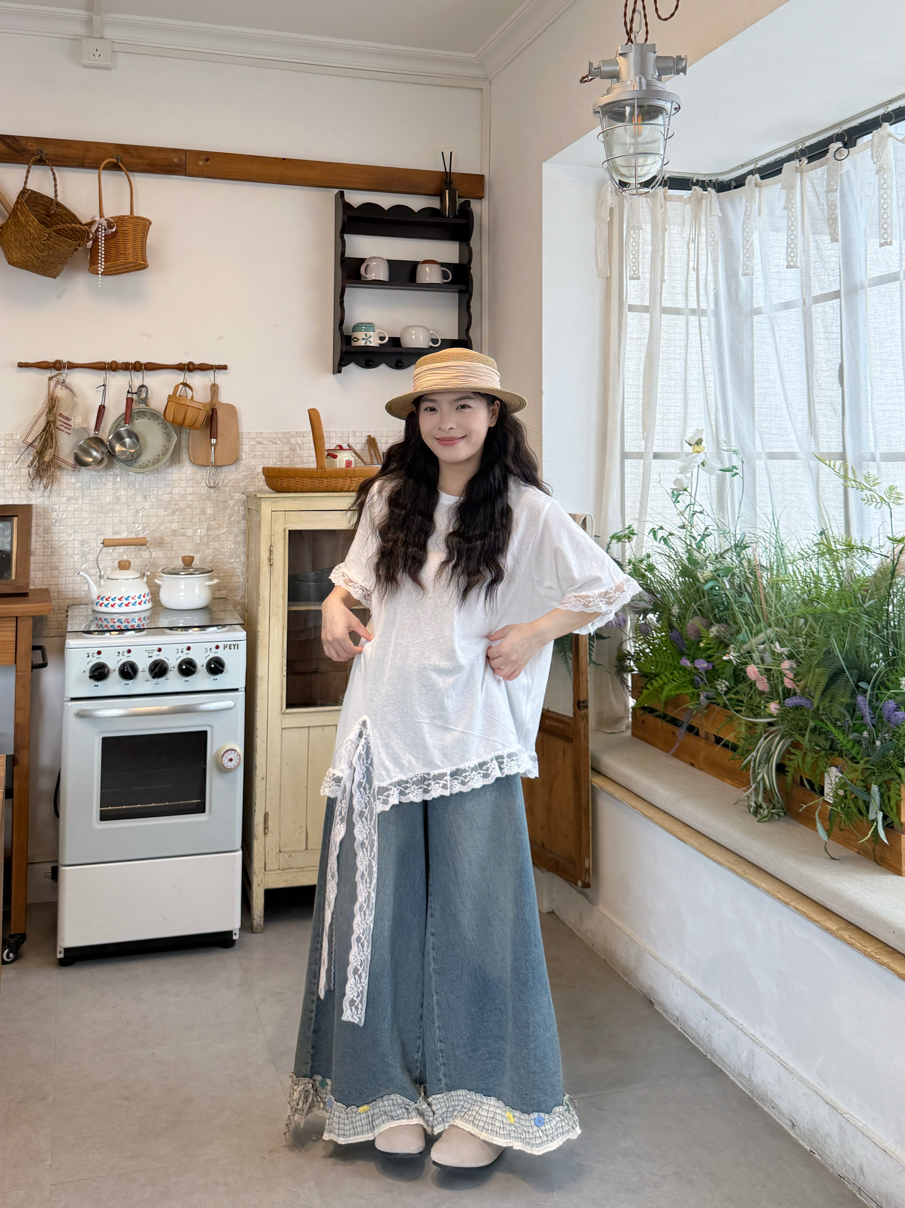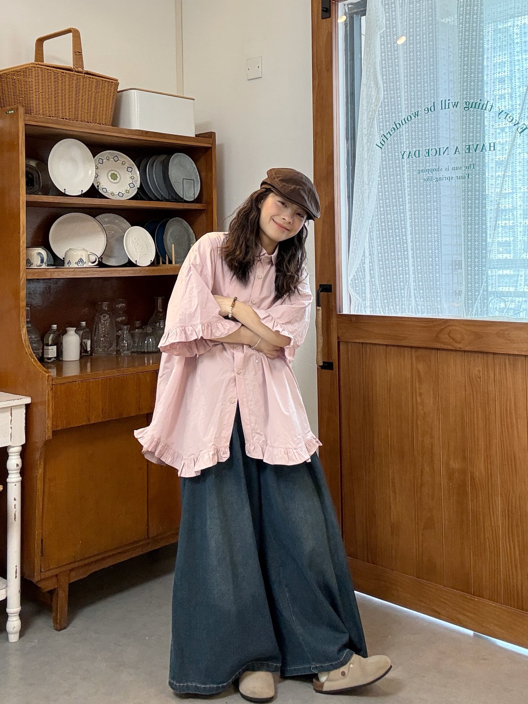 실사 선물 물품 프릴 루즈핏 셔츠 청바지