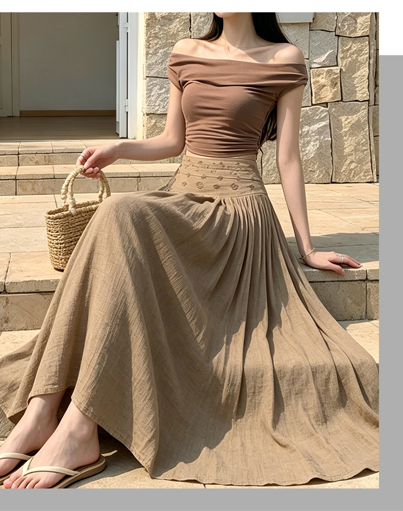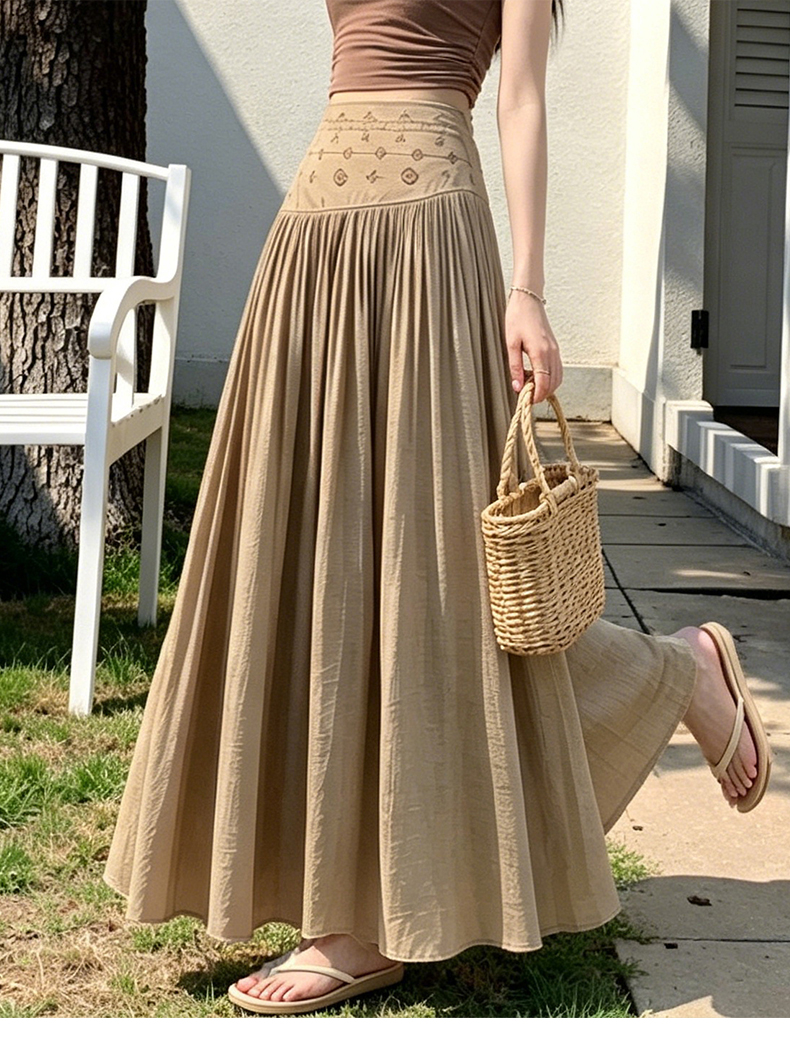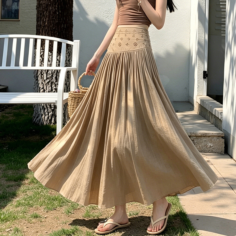 실사 보헤미안 휴가 베이지 색 한 마디 반신 스커트 여성 봄 여름 얇은 스타일 치마 휴일 레트로 한 마디 롱 스커트