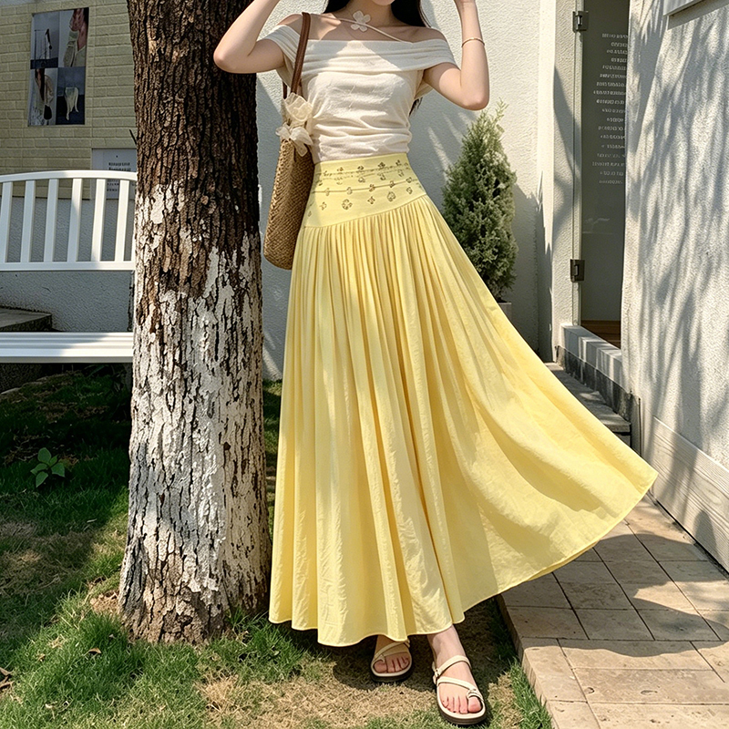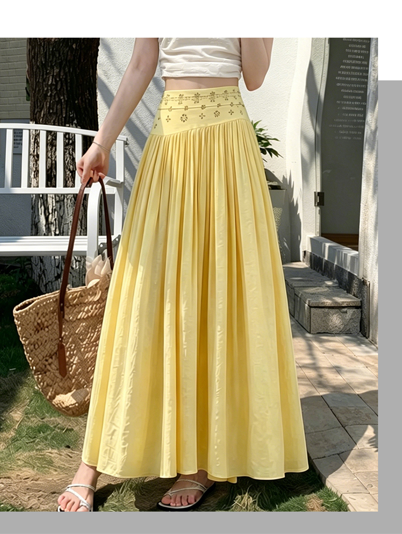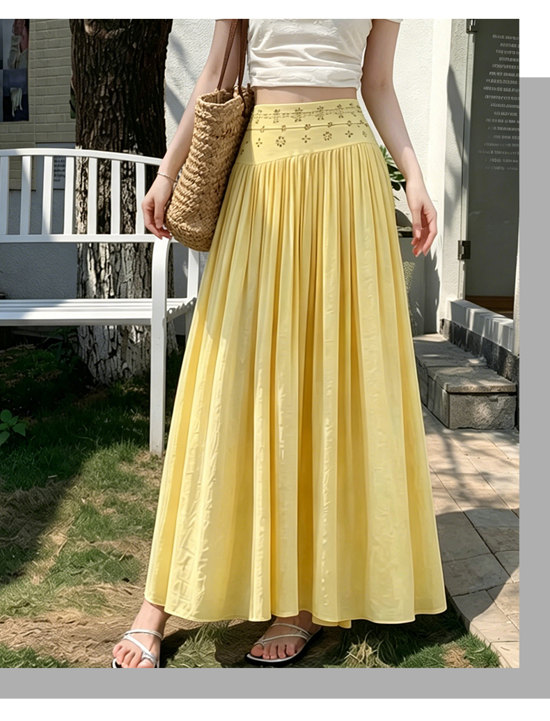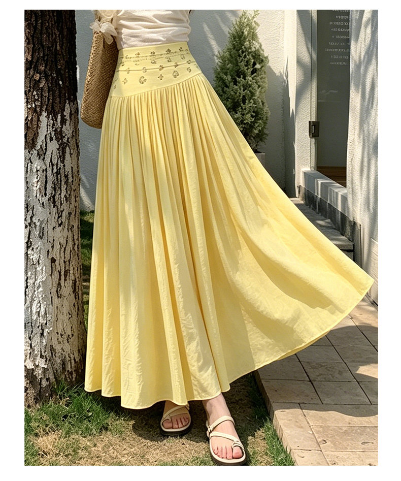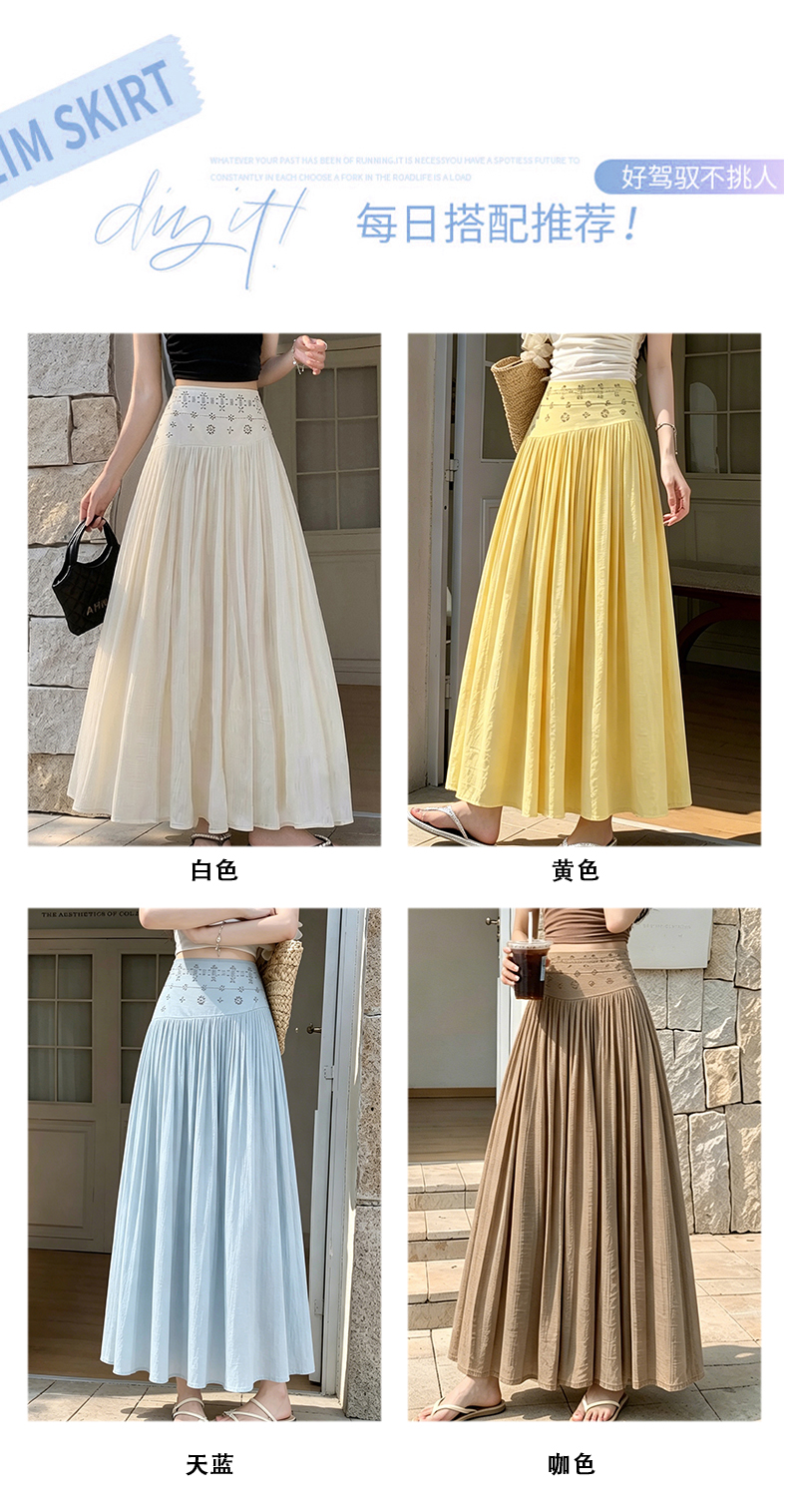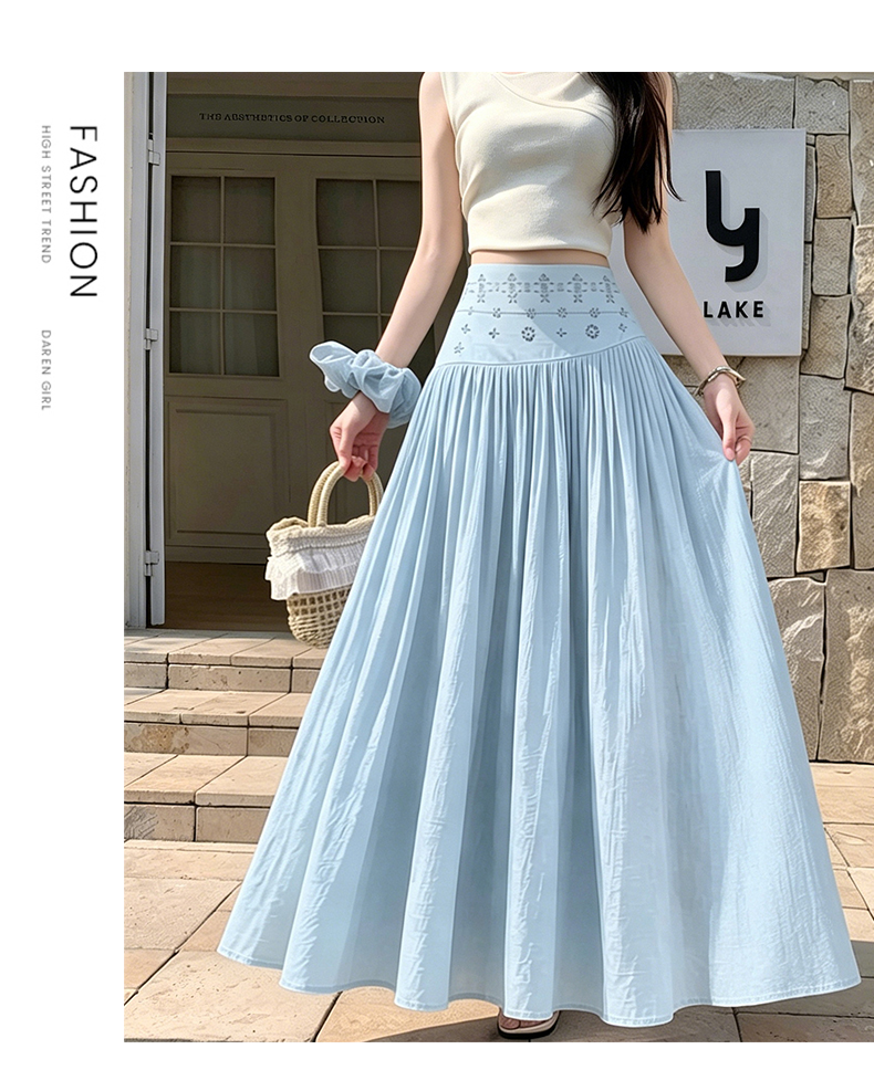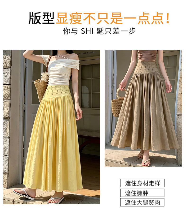 실사 자수 한 마디 반신 스커트 여름 새로운 우아한 슬림해 보이는 중간 길이 표지 넓적 다리 깃발 색상 빅 플레어 스커트 우산 치마