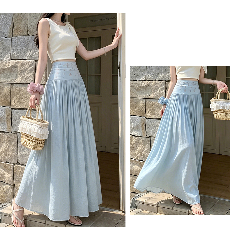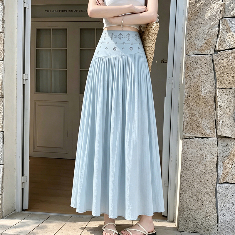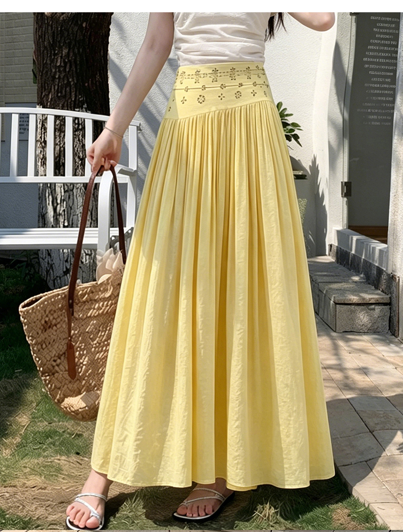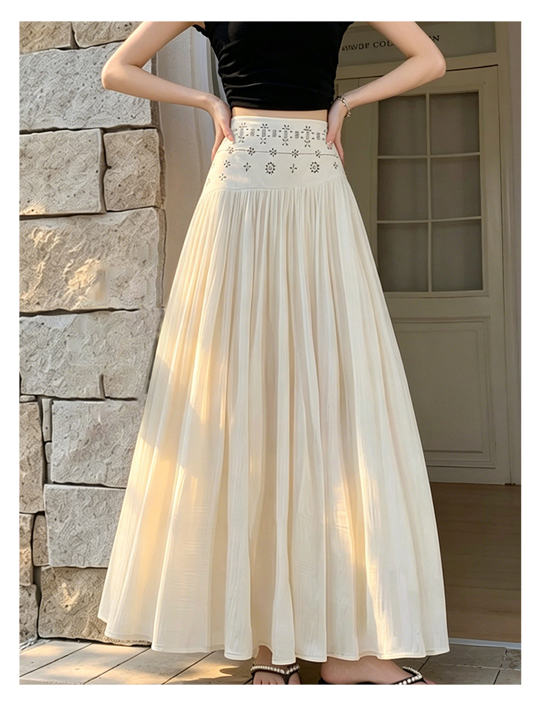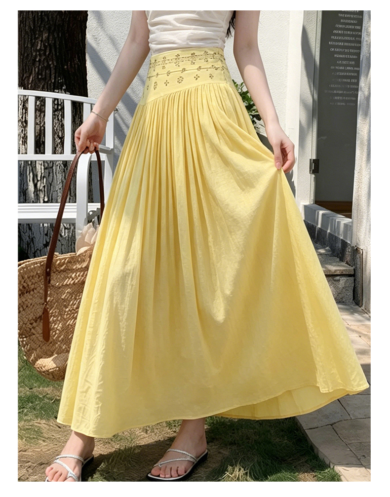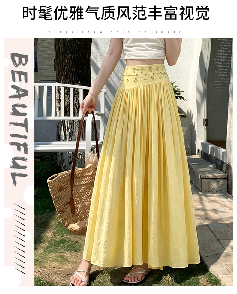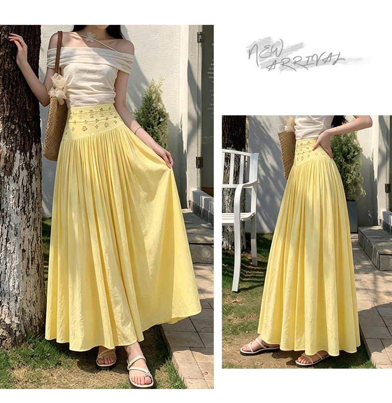 실사 자수 한 마디 반신 스커트 여름 새로운 우아한 슬림해 보이는 중간 길이 표지 넓적 다리 깃발 색상 빅 플레어 스커트 우산 치마