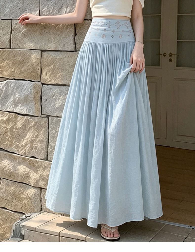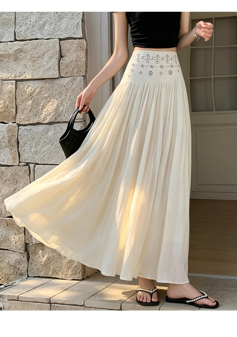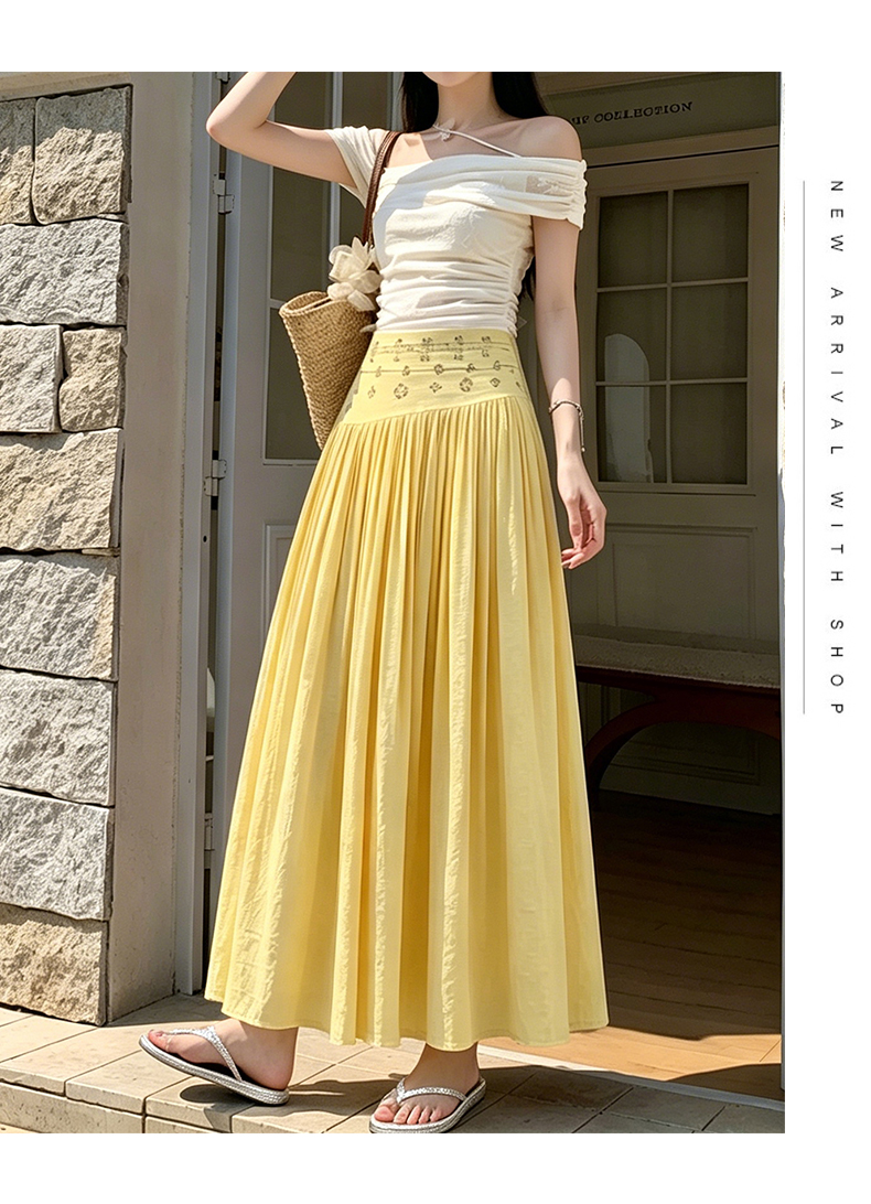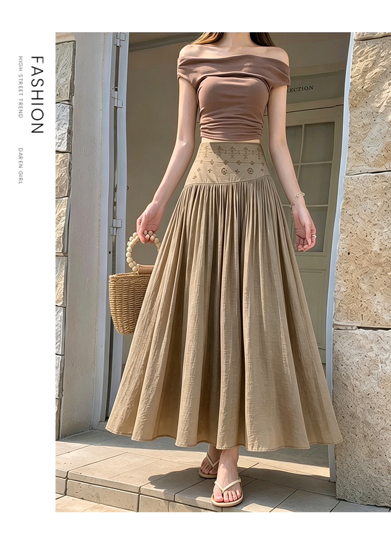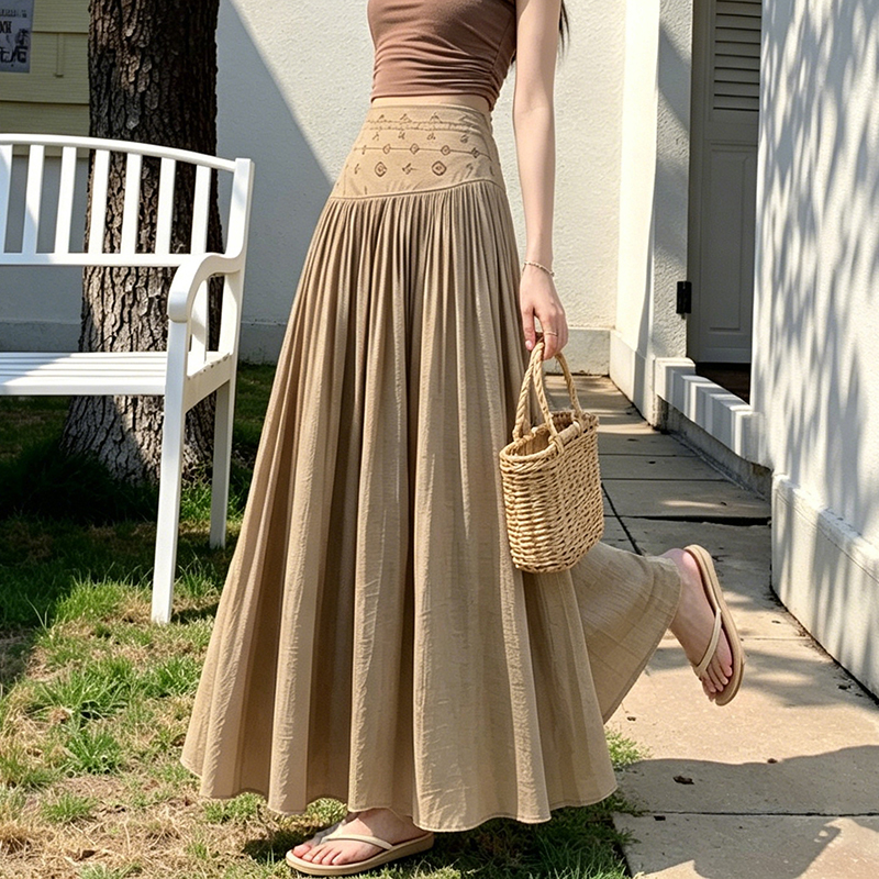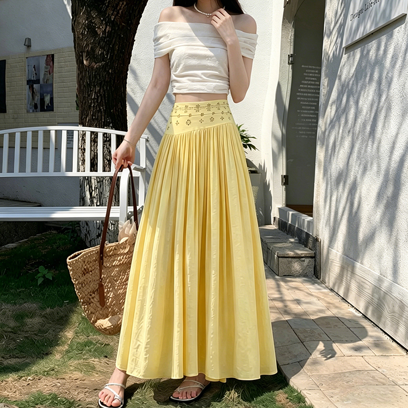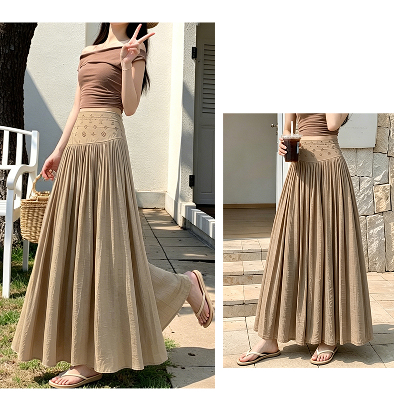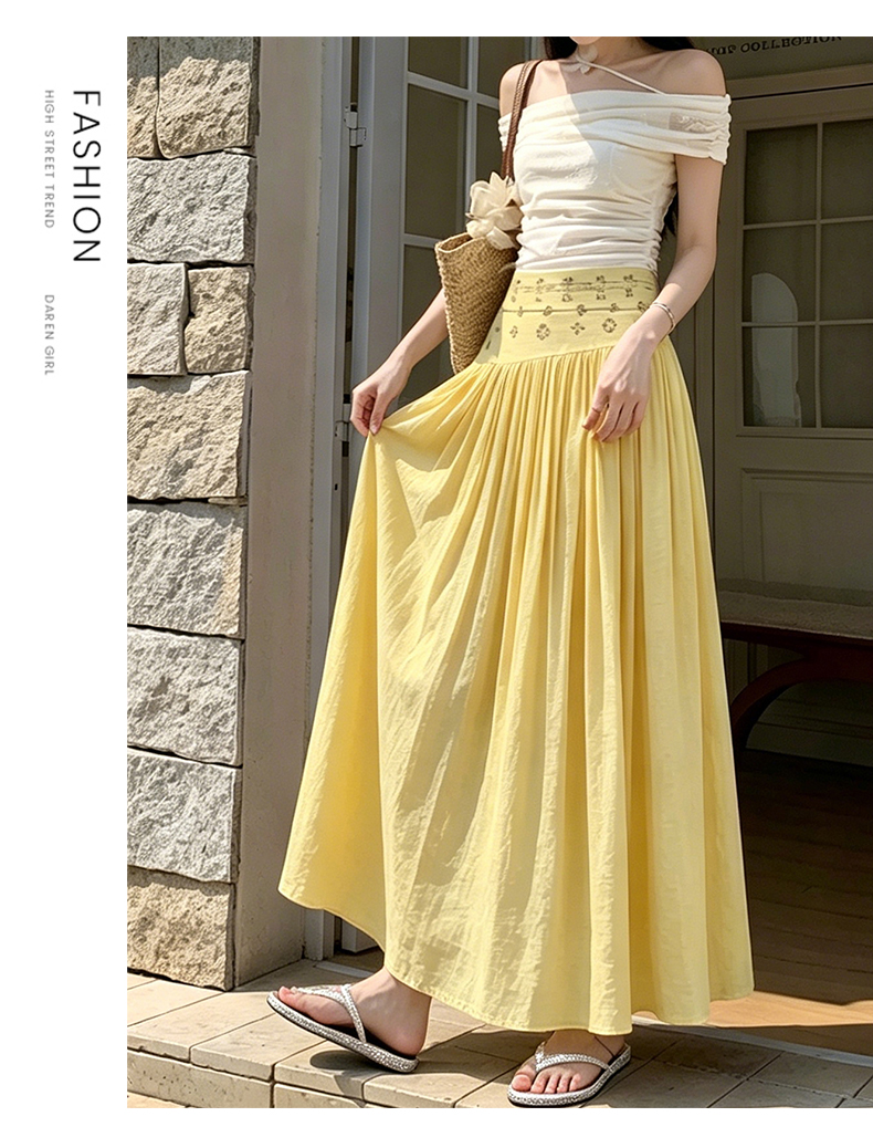 실사 자수 한 마디 반신 스커트 여름 새로운 우아한 슬림해 보이는 중간 길이 표지 넓적 다리 깃발 색상 빅 플레어 스커트 우산 치마