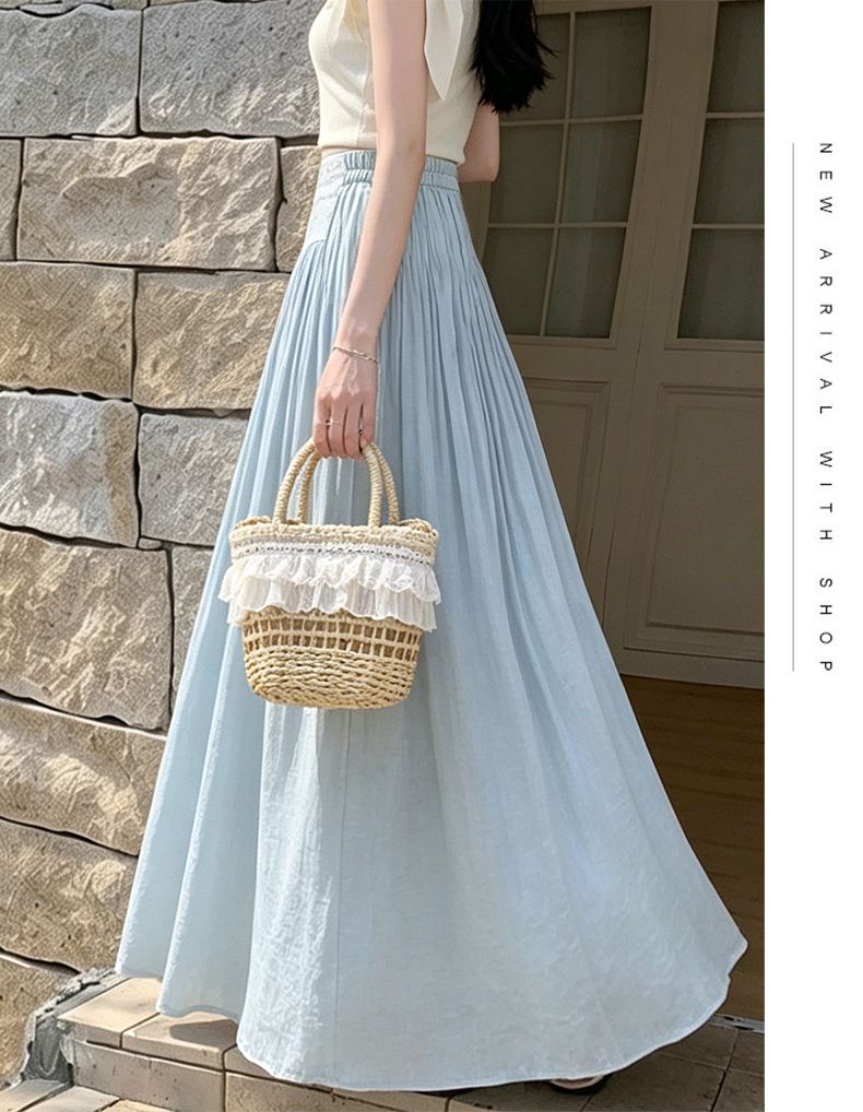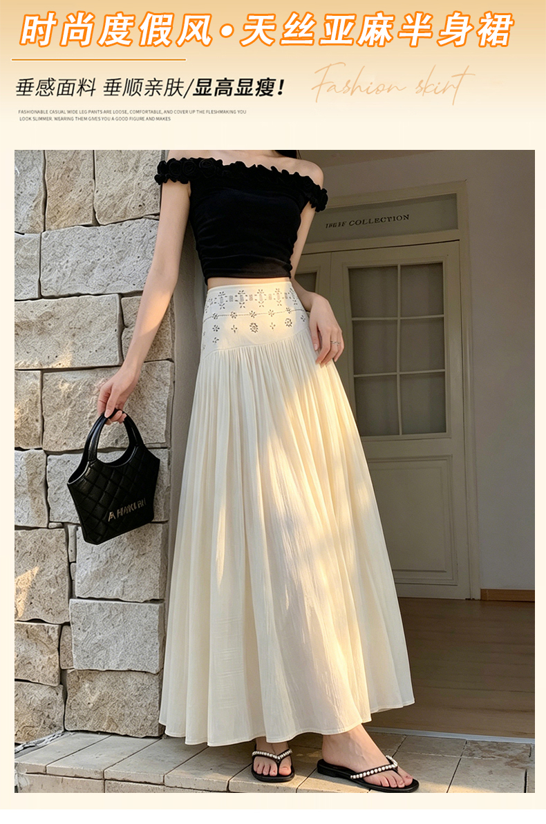 실사 화이트 펌프 로프 면 린넨 반 스커트 한 마디 반신 스커트 하이웨이스트 우산 치마 중간 길이 큰 진자 표지 넓적 다리 치마 롱 스커트