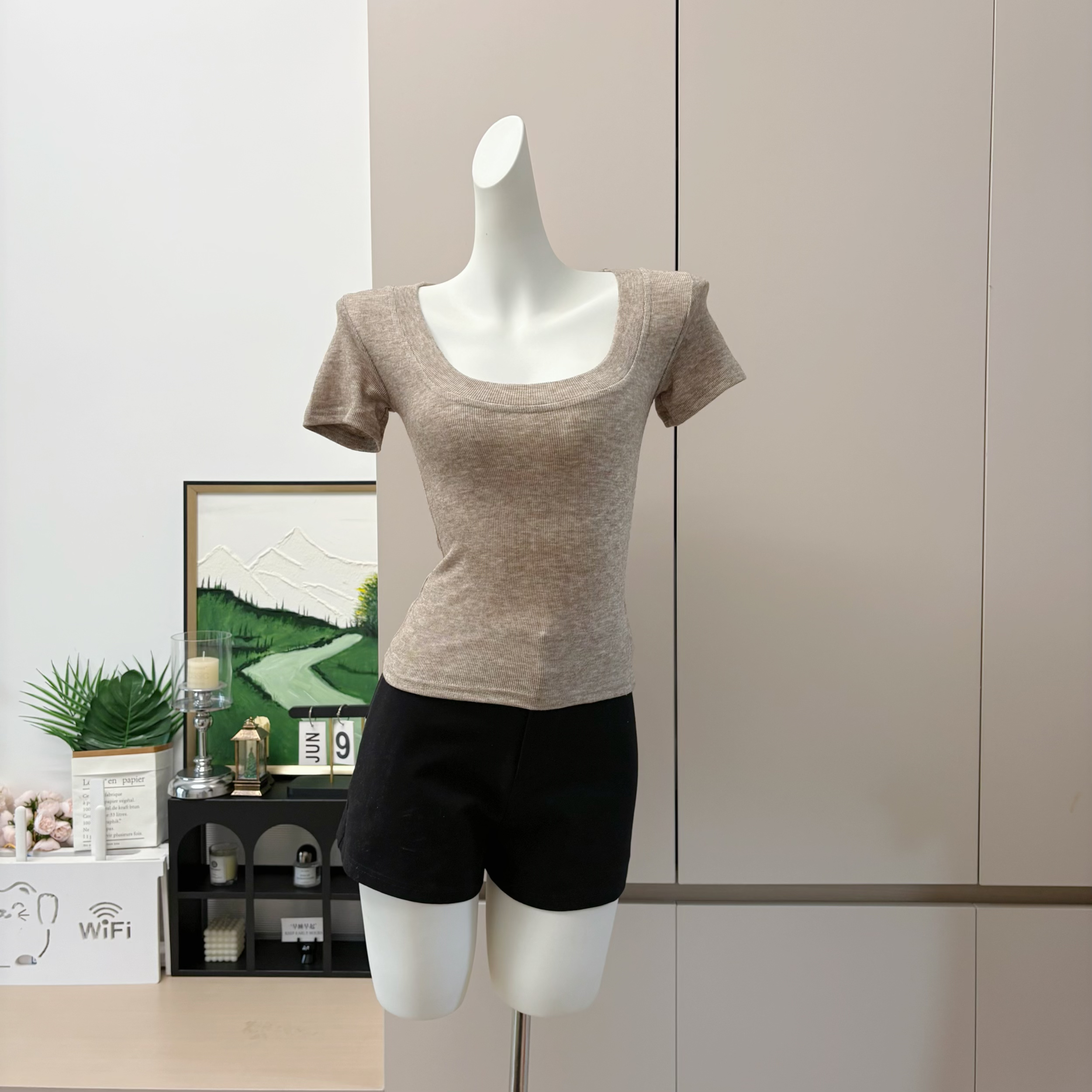 xzichic 구름 센스 중간 소매 주간 실크 양모 중간 소매 티셔츠 여름 새로운 몸매 가꾸기 깊은 V 넥 인사이드 잡아라. 의류 여성 얇은