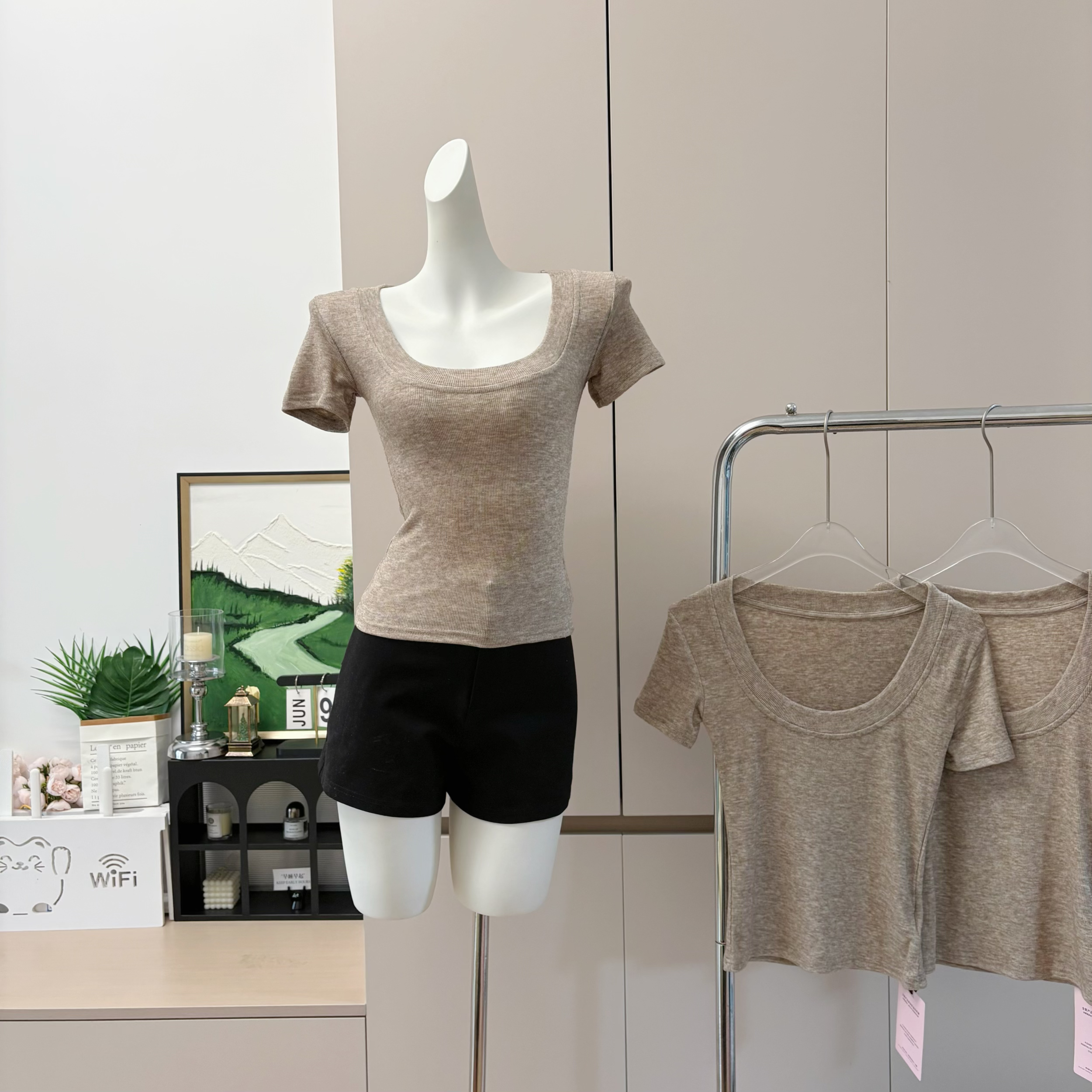unoone 산소 tee 대 u 칼라 몸매 가꾸기 순수한 욕망 반팔 맨위 여성 여름 마이크로 ~을 통해 슬림해 보이는 낮은 네크라인 긍정적 인 어깨 티셔츠