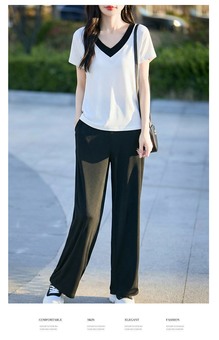 실사 페이크 레이어드 배색 V넥 반팔 2026 여름 새로운 품격 다용도 패션 슬림해 보이는 세트 여성
