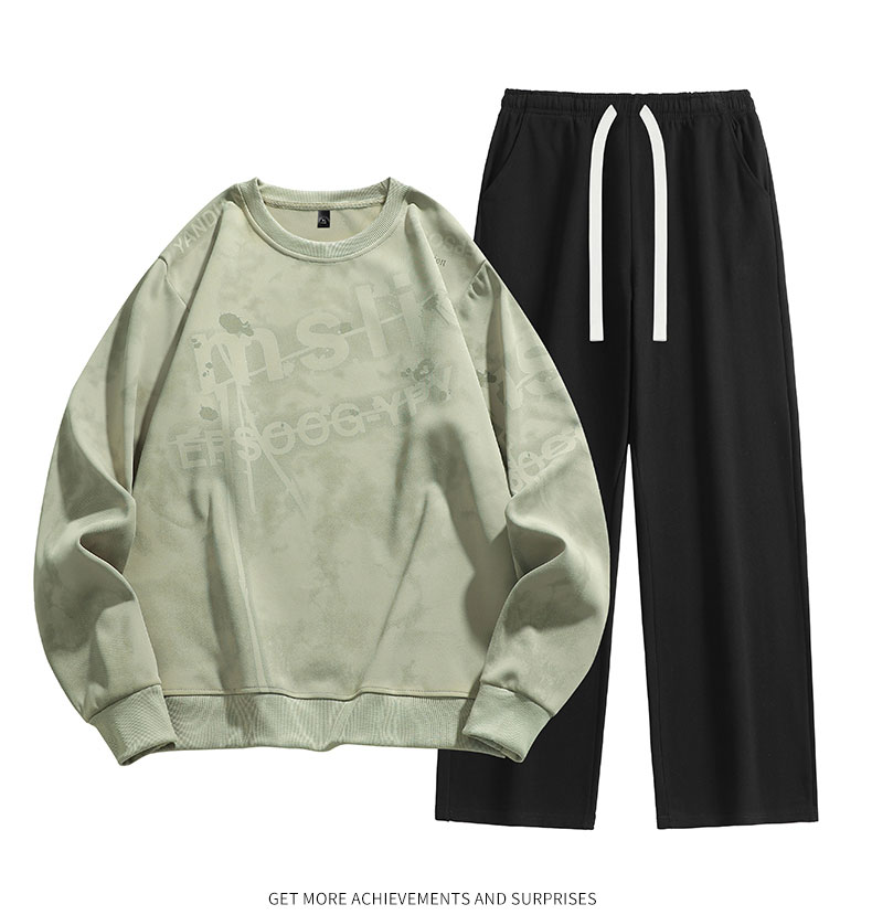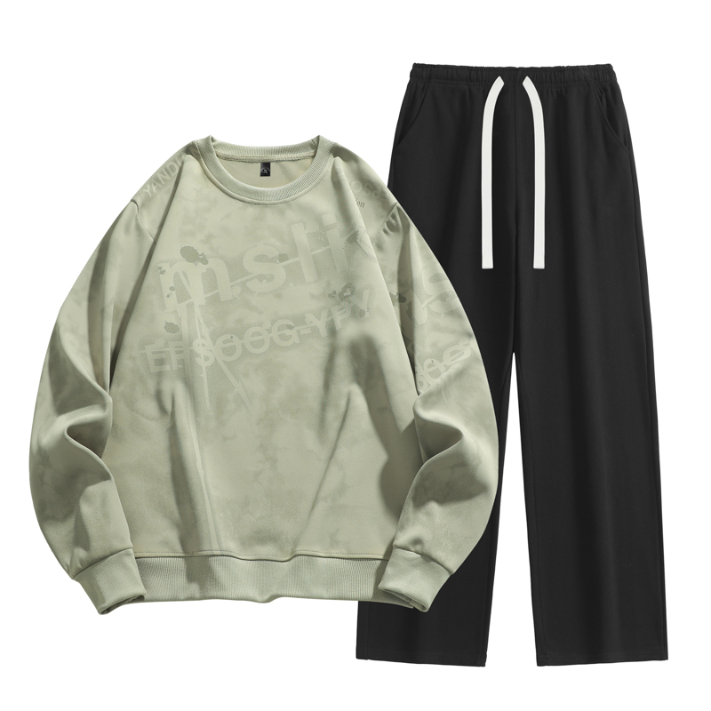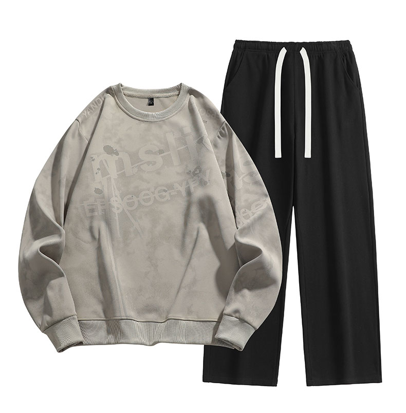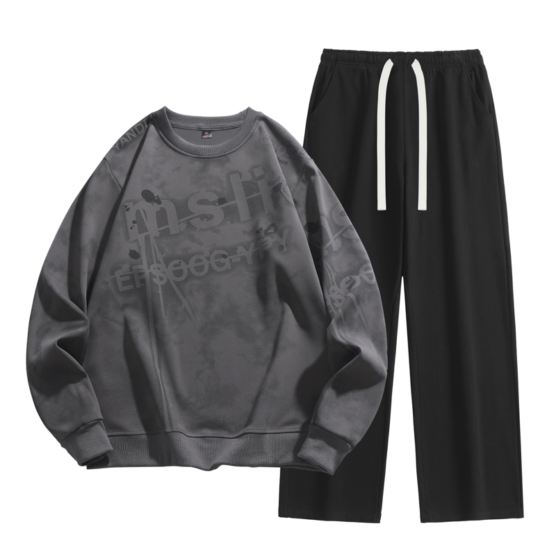 국경 간 봄 가을 겨울 일본식 미니멀리즘 캐주얼 세트 남성 조수 브랜드 루즈핏 다용도 운동 라운드 넥 긴팔 투피스 세트