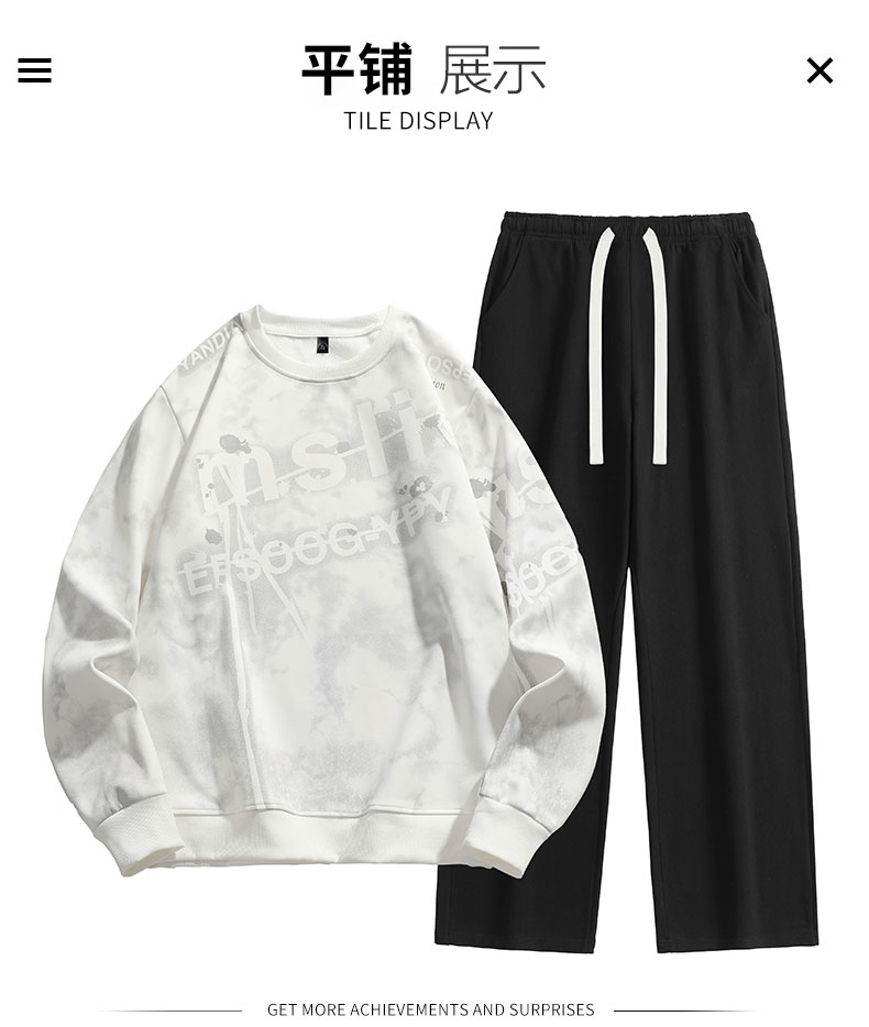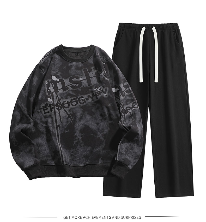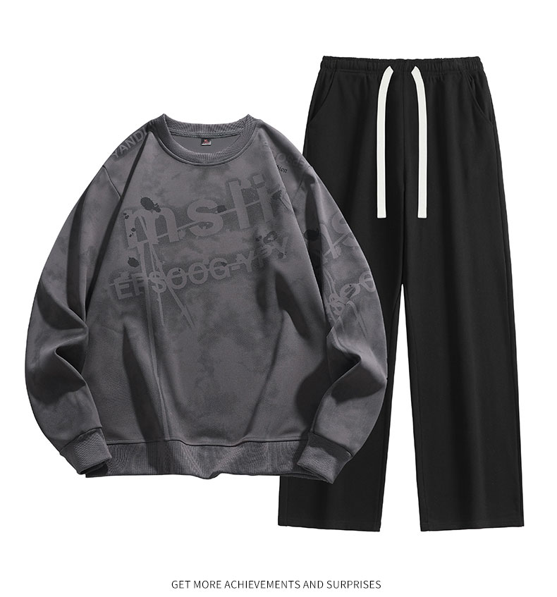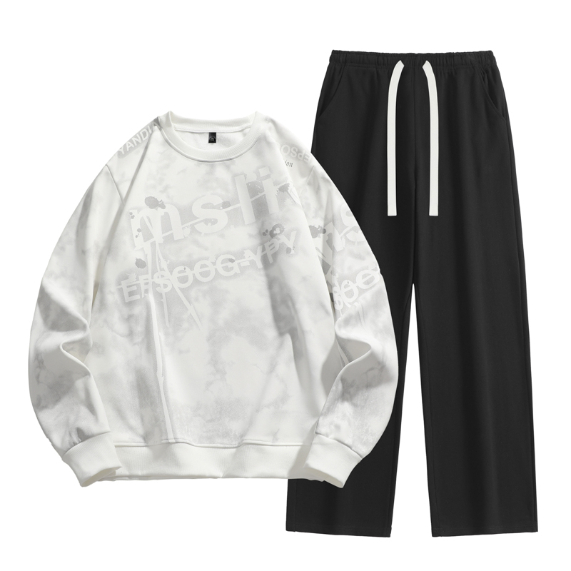 국경 간 봄 가을 겨울 일본식 미니멀리즘 캐주얼 세트 남성 조수 브랜드 루즈핏 다용도 운동 프린트 긴팔 투피스 세트