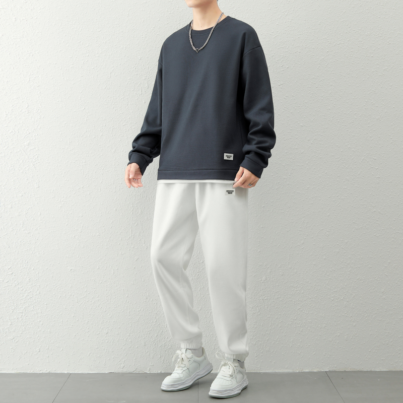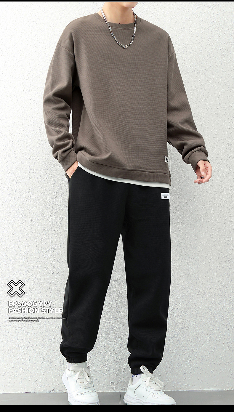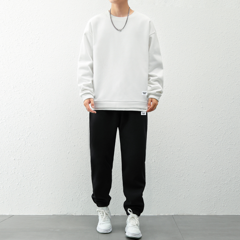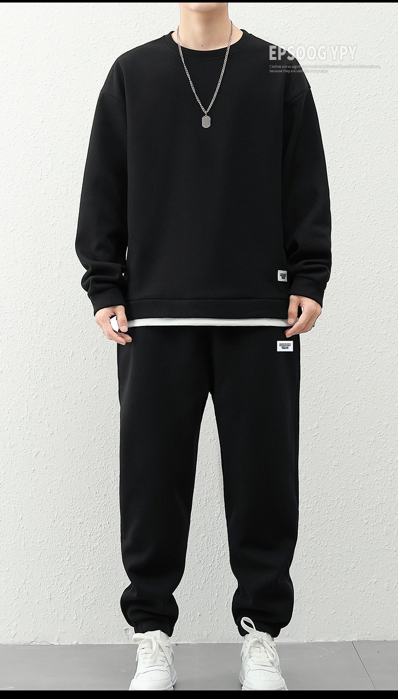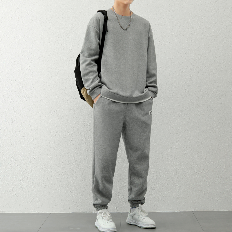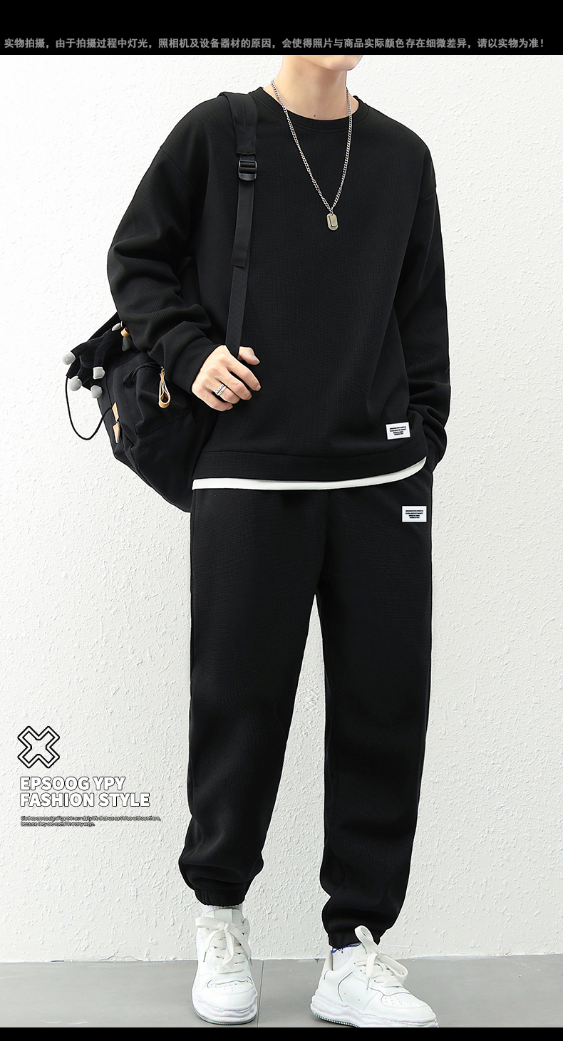 국경 간 봄 가을 겨울 일본식 미니멀리즘 캐주얼 세트 남성 조수 브랜드 루즈핏 다용도 운동 라운드 넥 긴팔 투피스 세트
