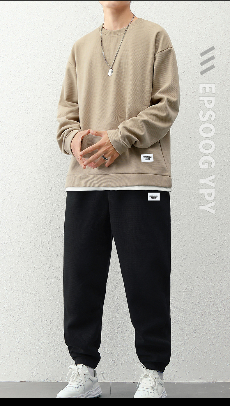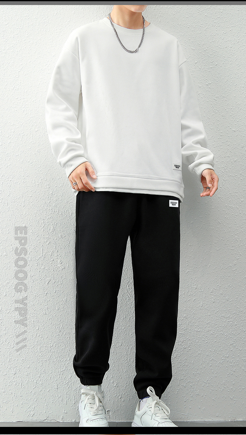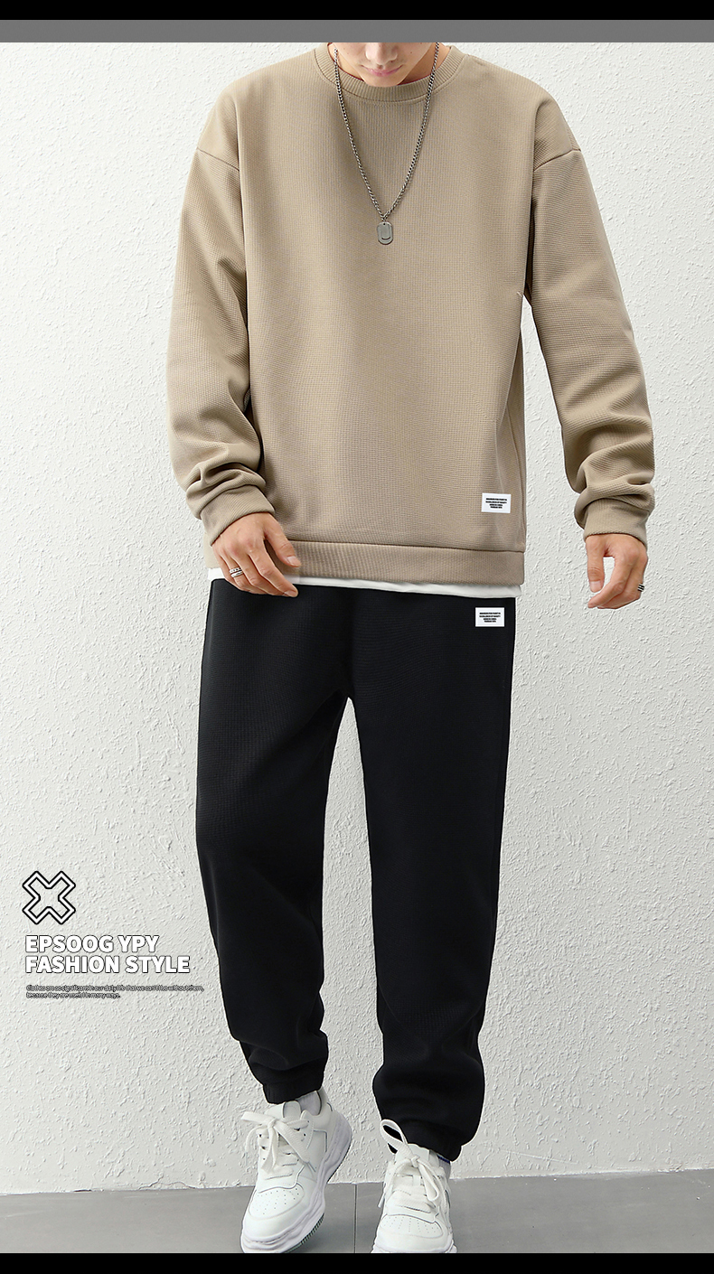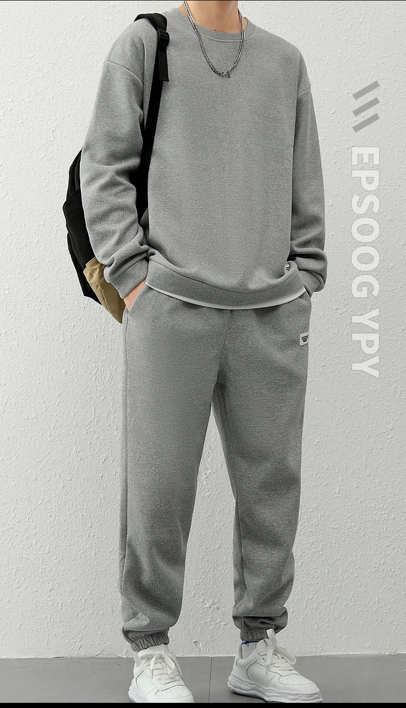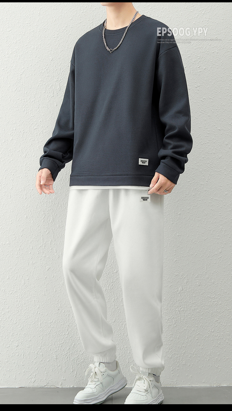 국경 간 봄 가을 겨울 일본식 미니멀리즘 캐주얼 세트 남성 조수 브랜드 루즈핏 다용도 운동 라운드 넥 긴팔 투피스 세트