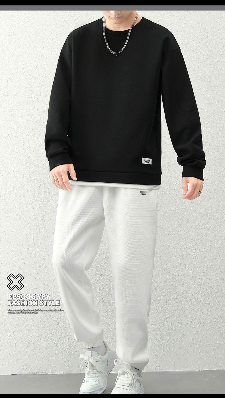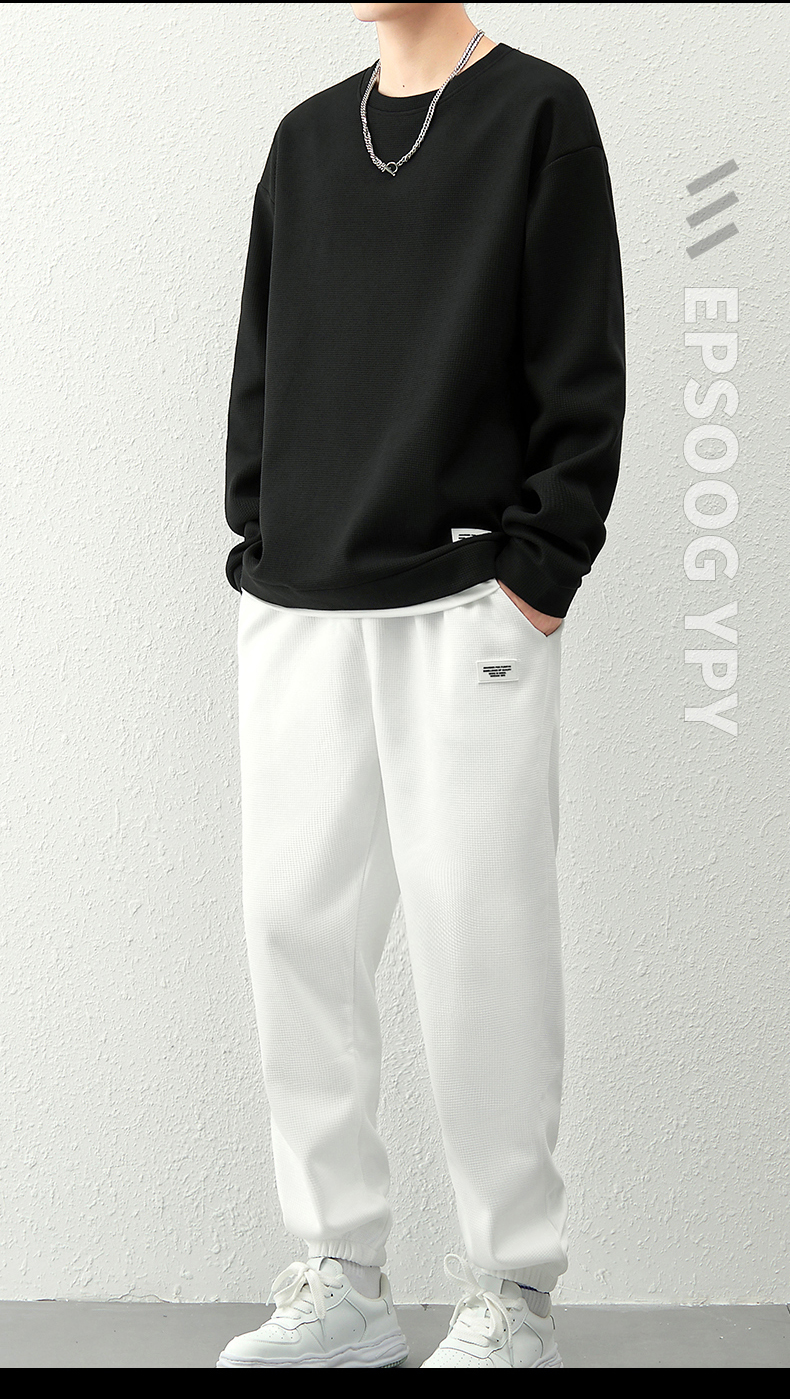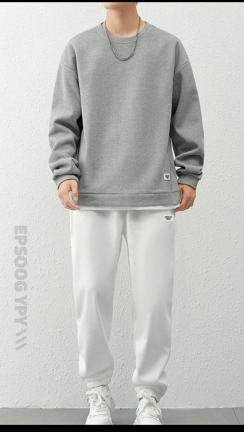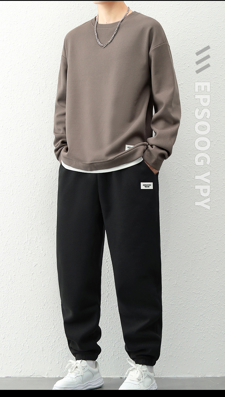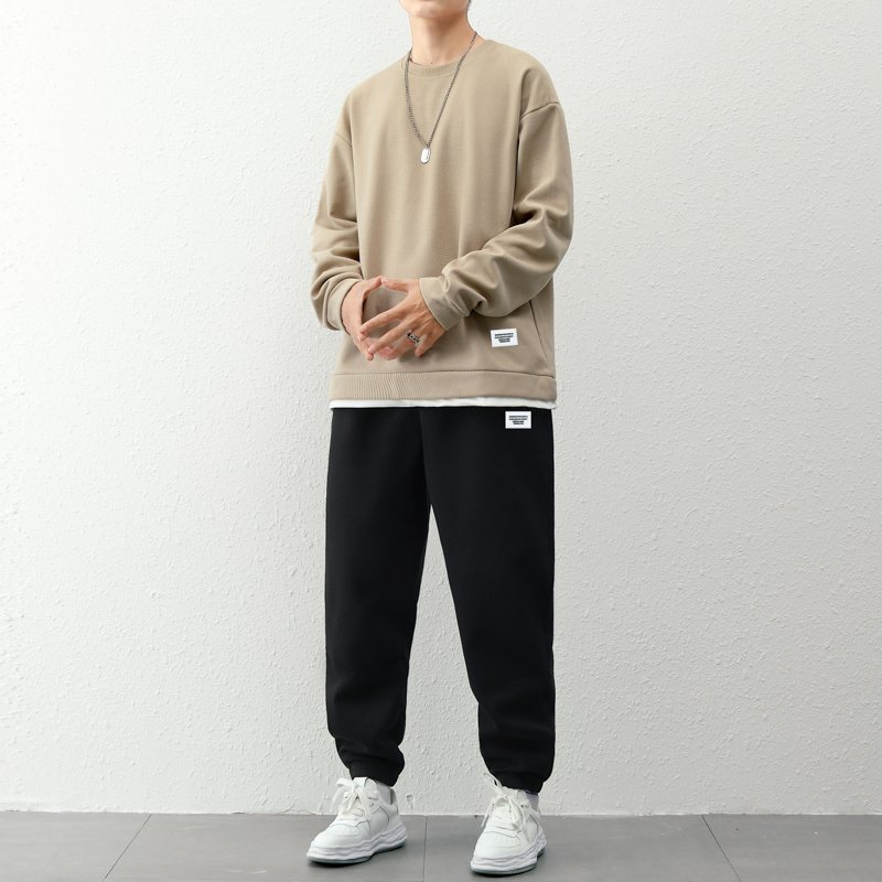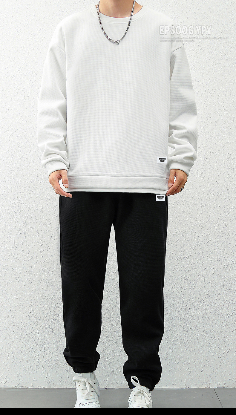 국경 간 봄 가을 겨울 일본식 미니멀리즘 캐주얼 세트 남성 조수 브랜드 루즈핏 다용도 운동 라운드 넥 긴팔 투피스 세트