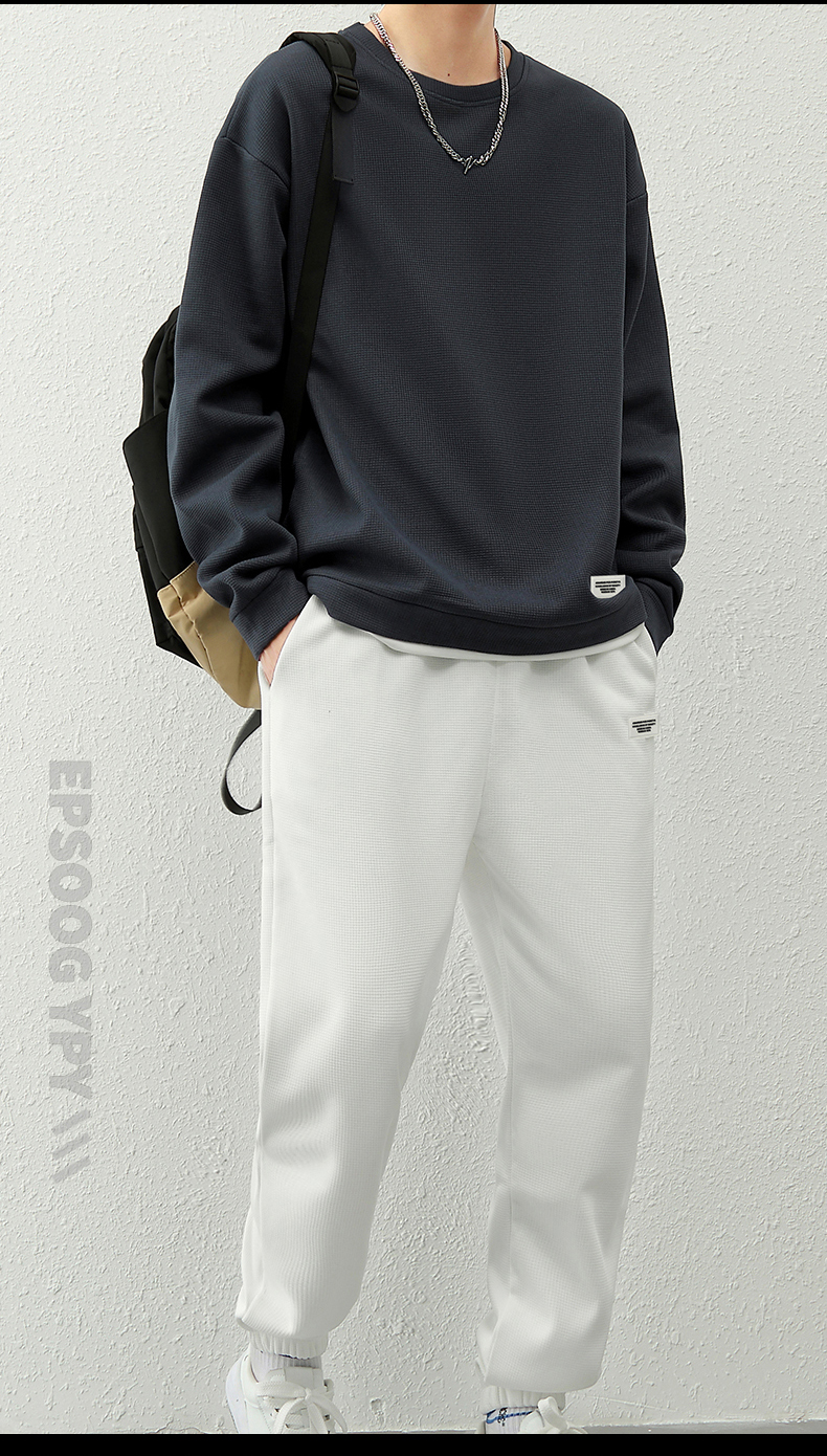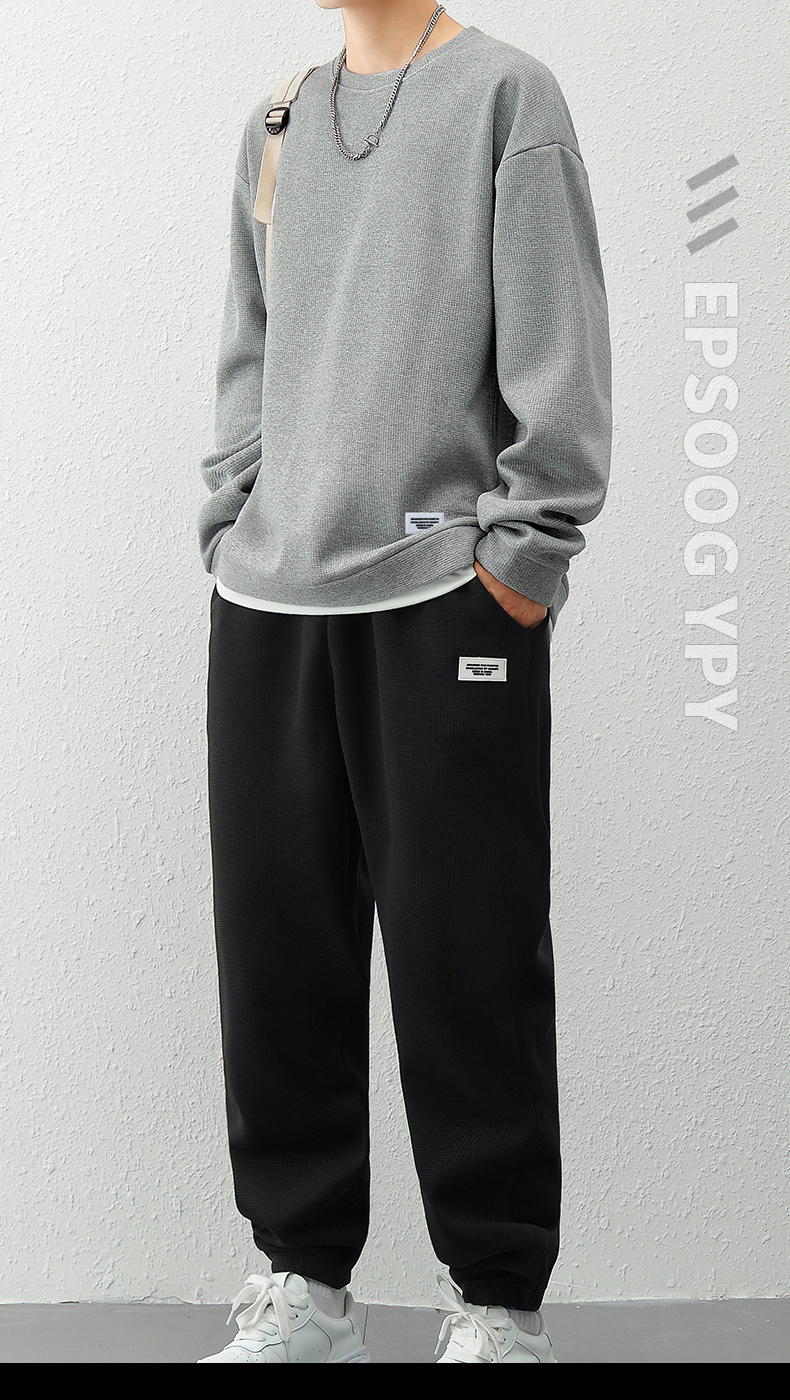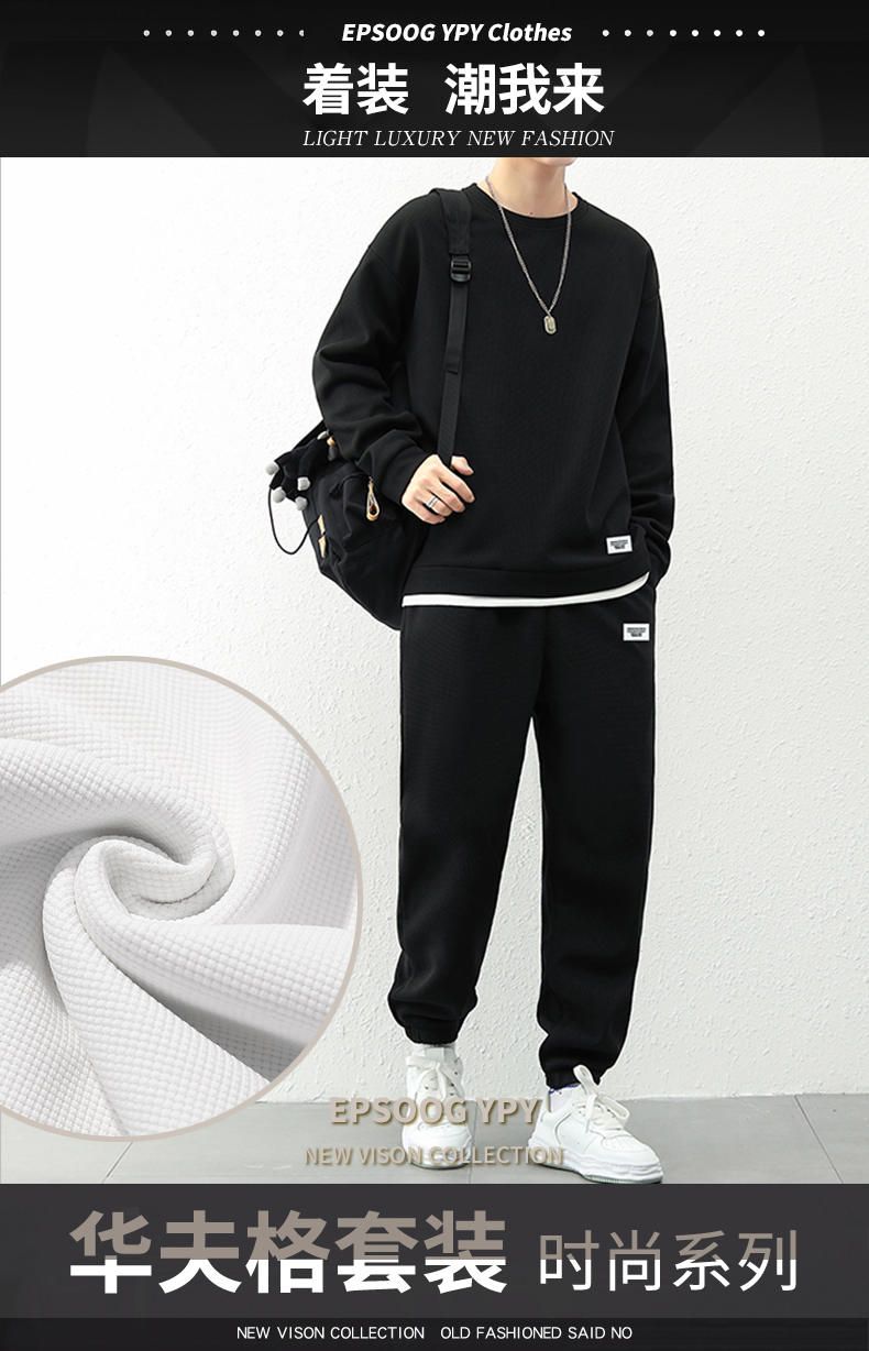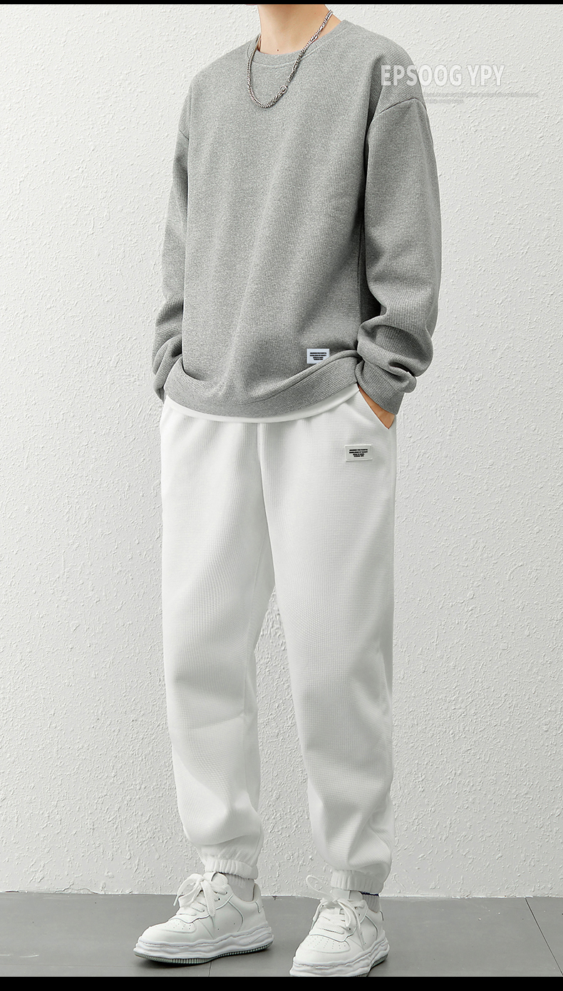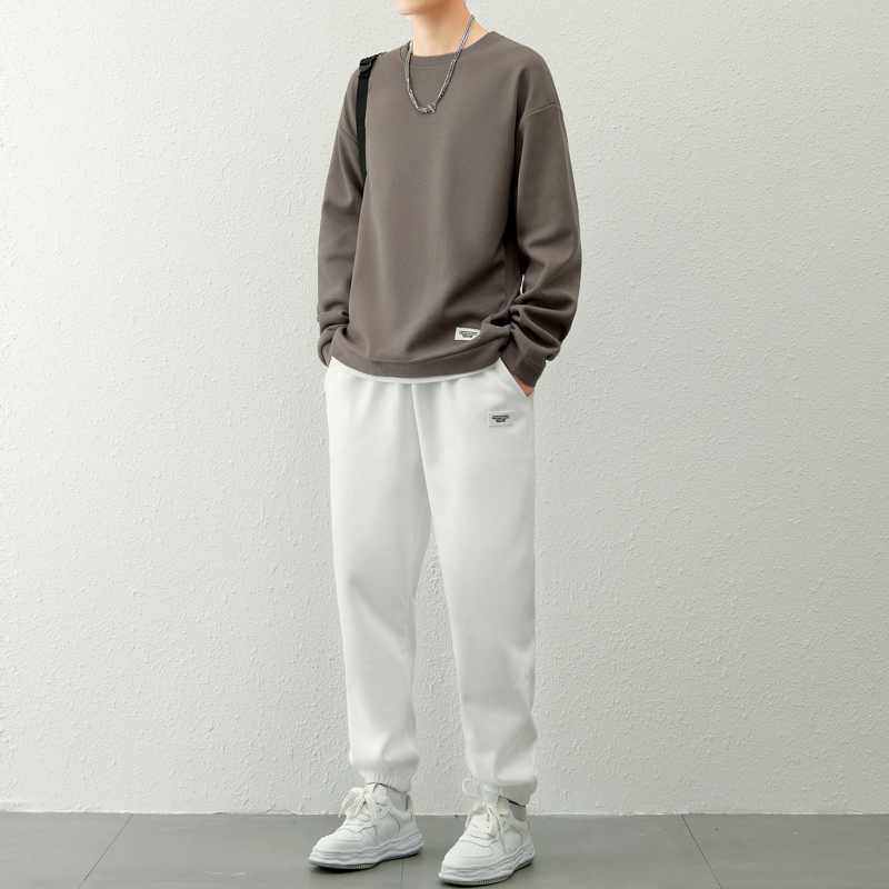 국경 간 봄 가을 겨울 일본식 미니멀리즘 캐주얼 세트 남성 조수 브랜드 루즈핏 다용도 운동 라운드 넥 긴팔 투피스 세트
