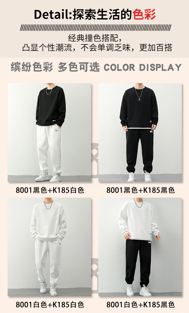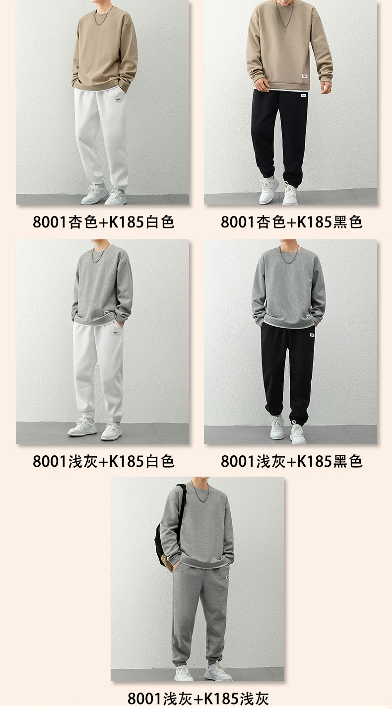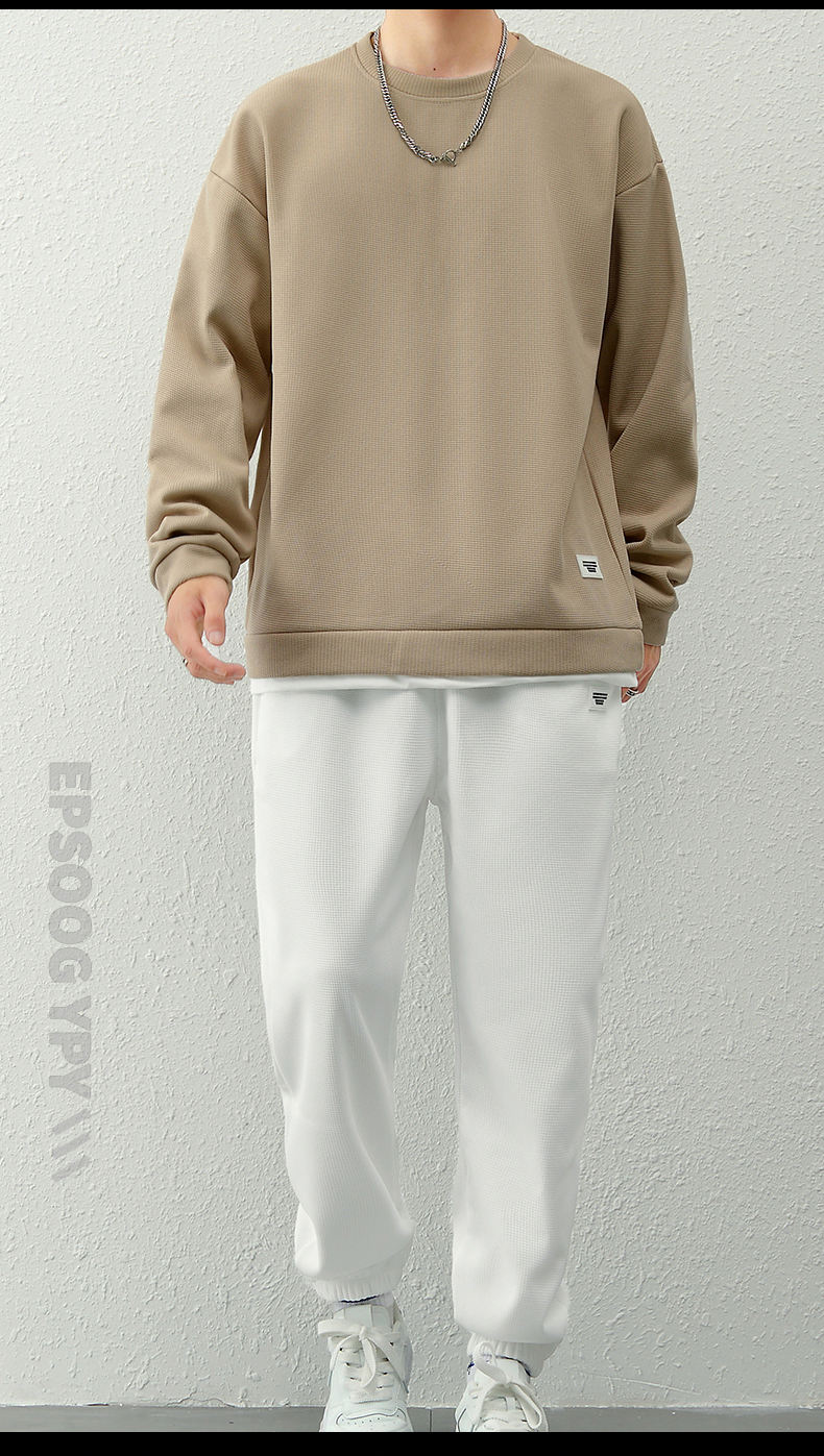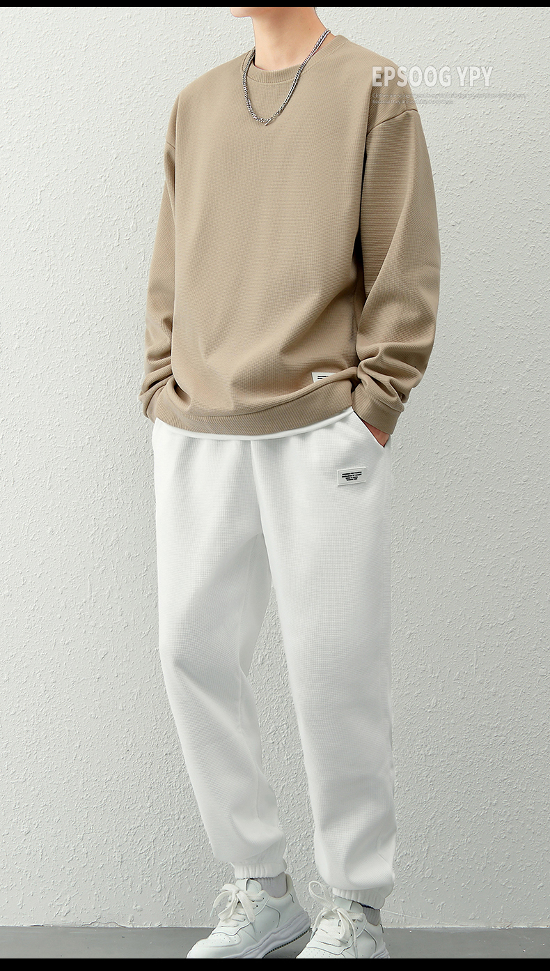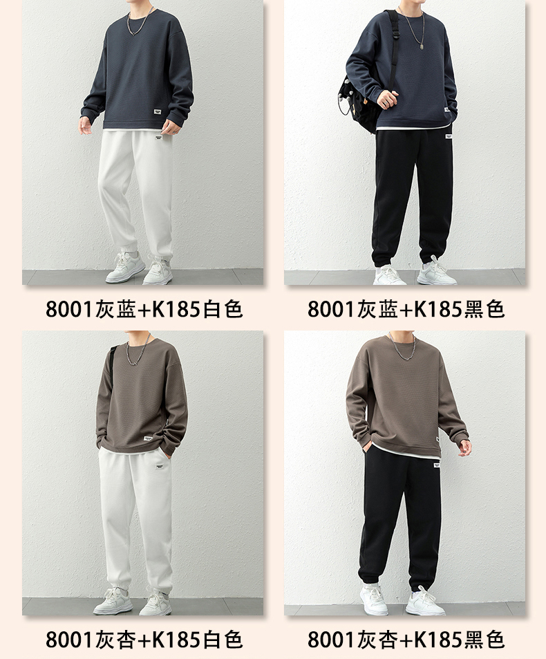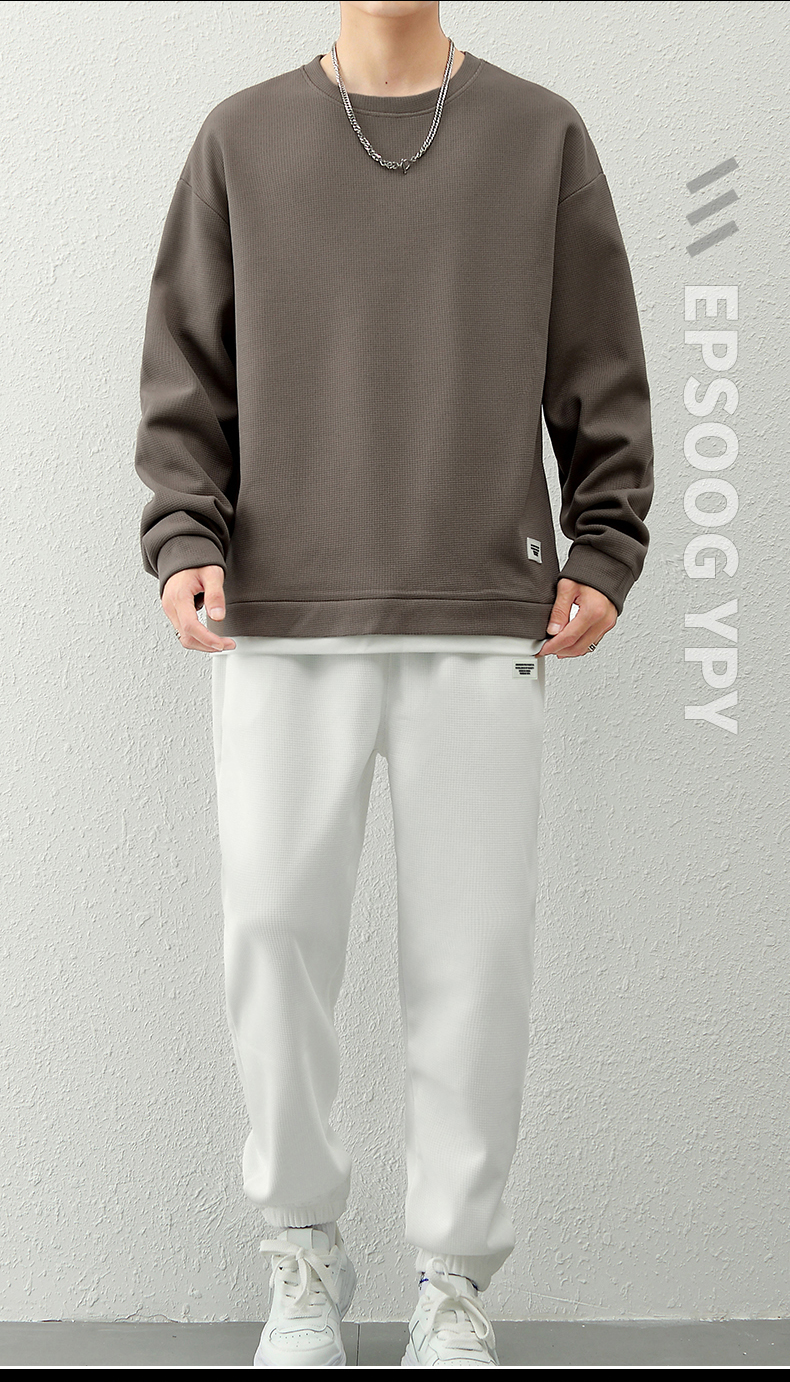 국경 간 봄 가을 겨울 일본식 미니멀리즘 캐주얼 세트 남성 조수 브랜드 루즈핏 다용도 운동 라운드 넥 긴팔 투피스 세트