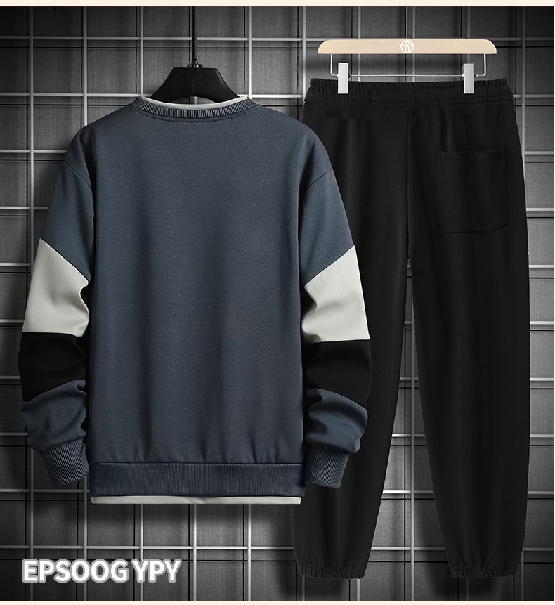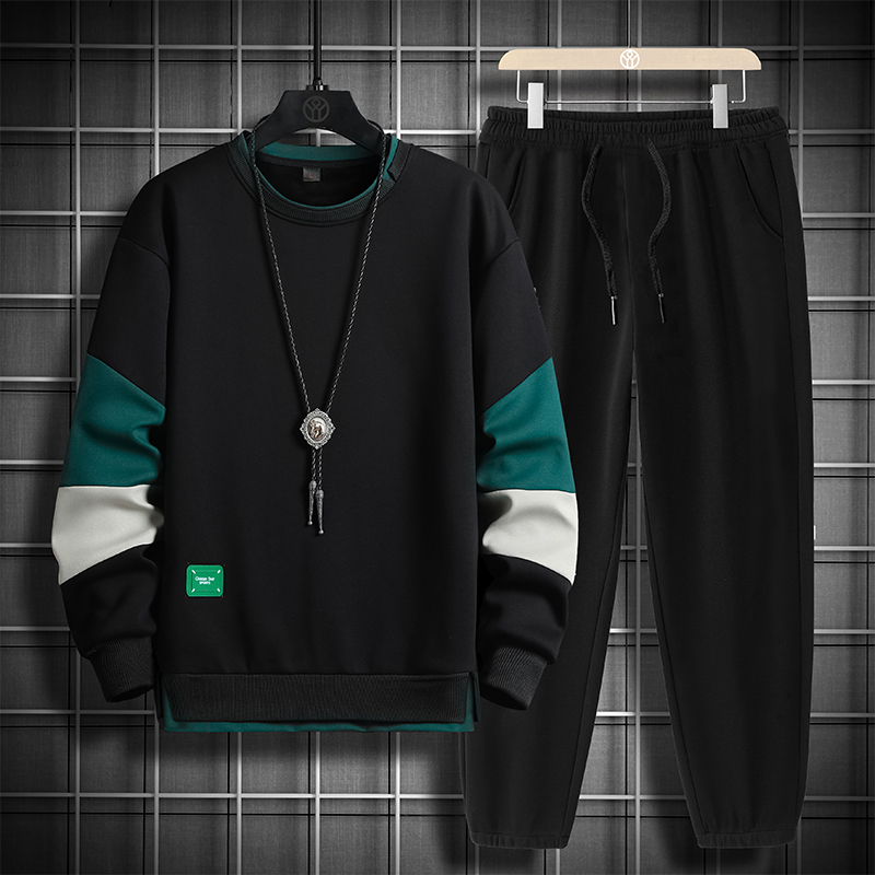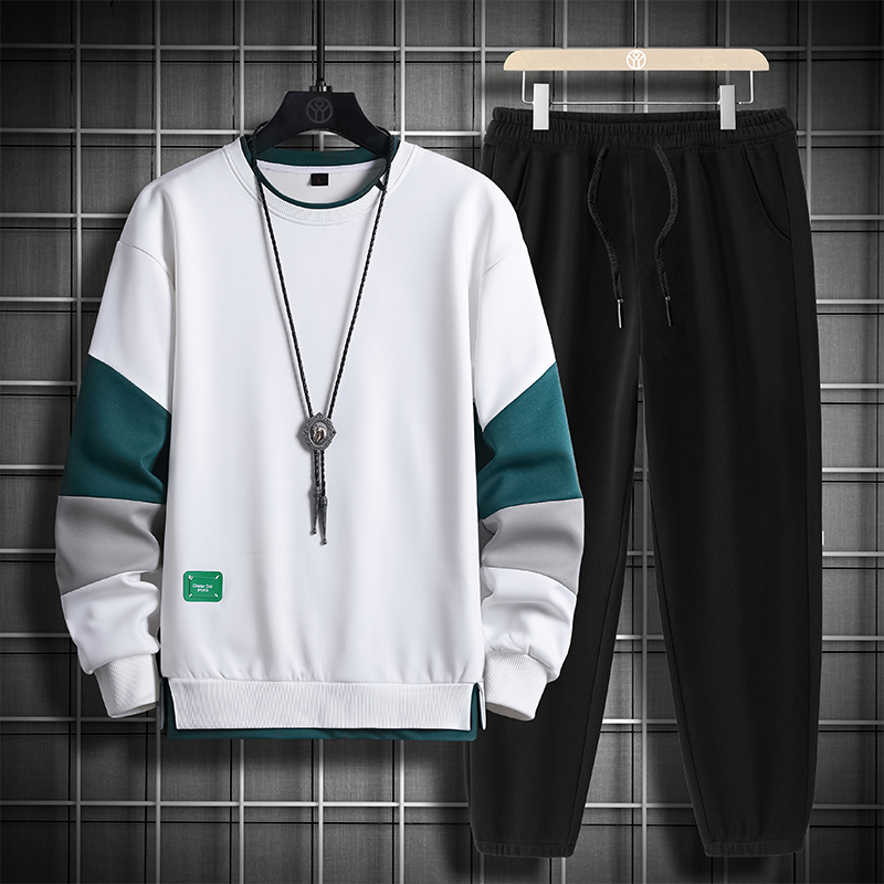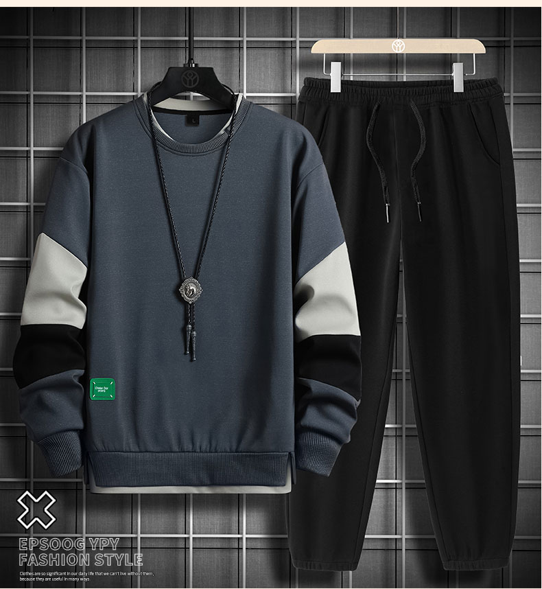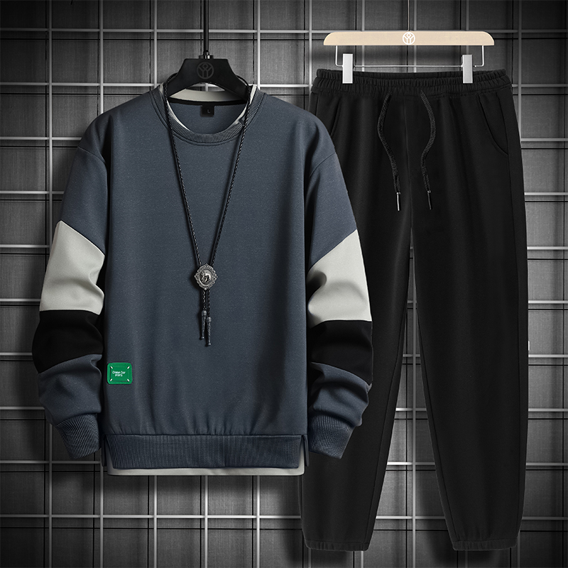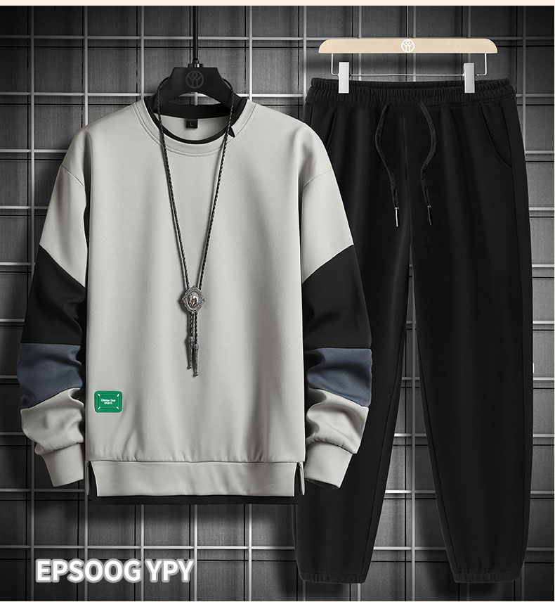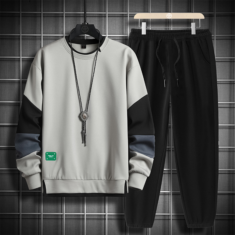국경 간 봄 가을 겨울 일본식 미니멀리즘 캐주얼 세트 남성 조수 브랜드 루즈핏 다용도 운동 라운드 넥 긴팔 투피스 세트