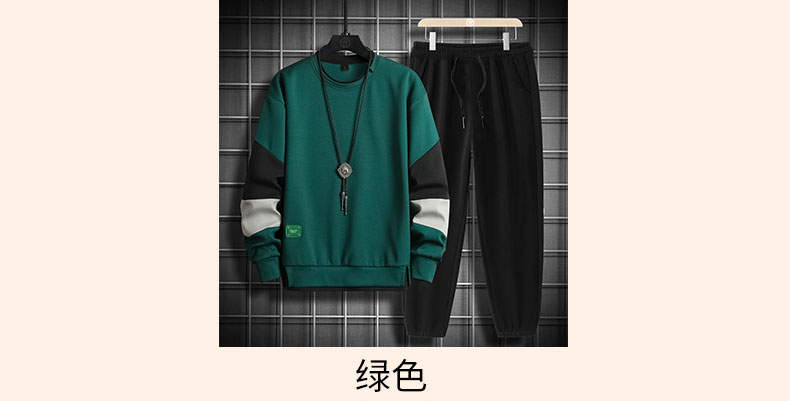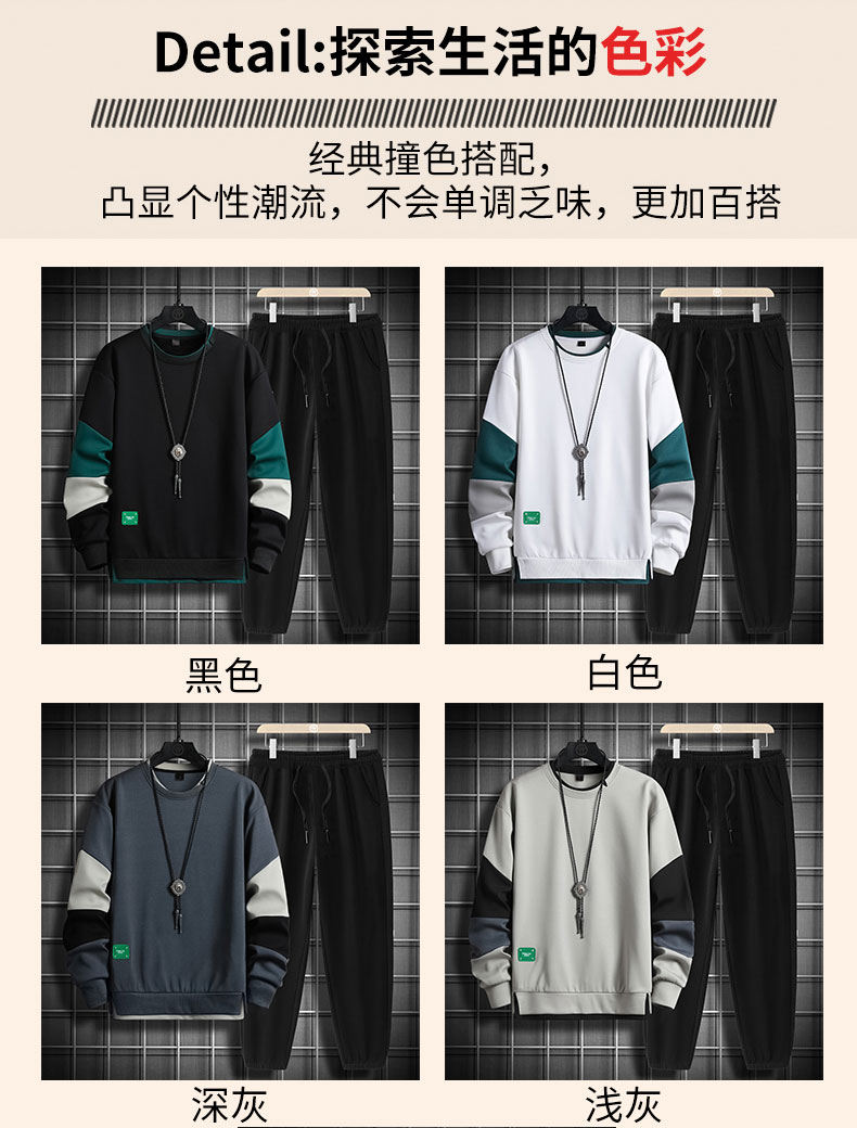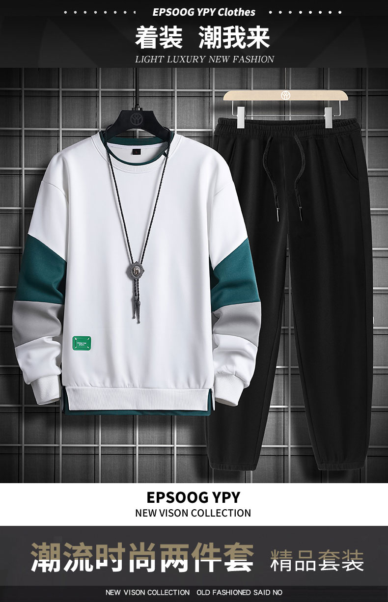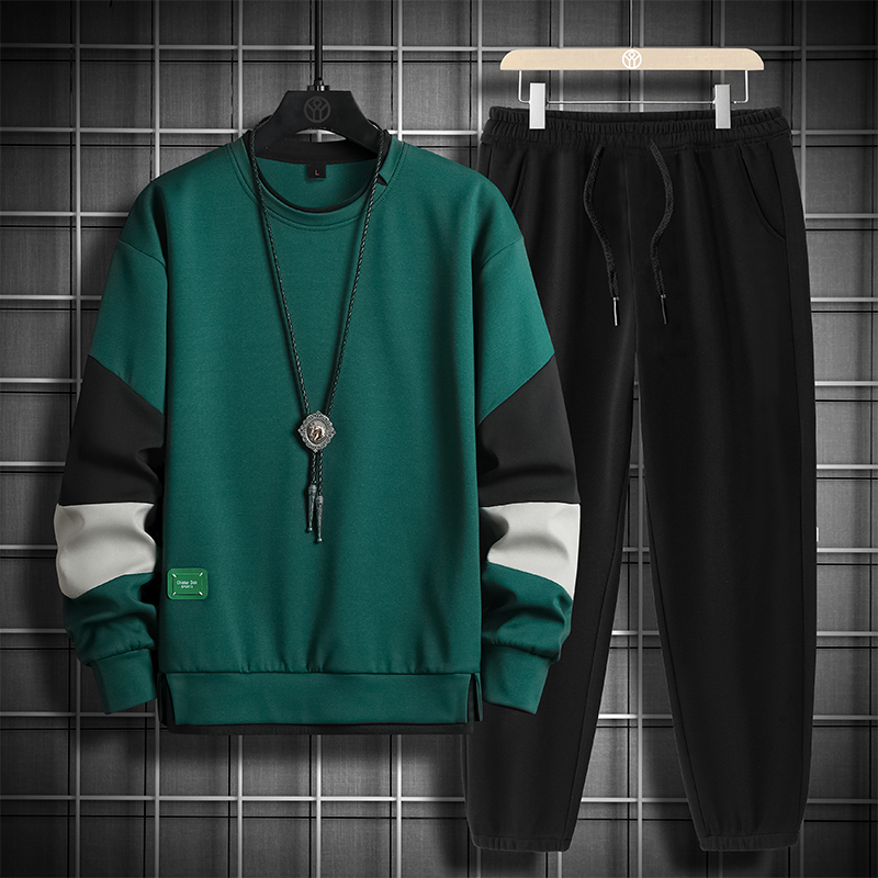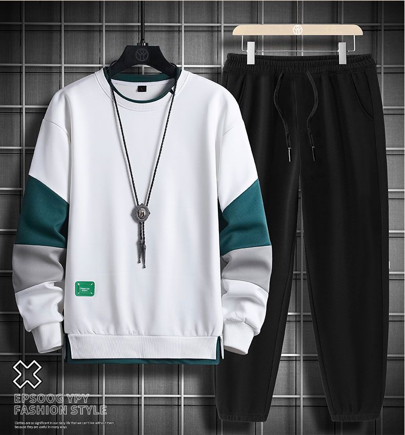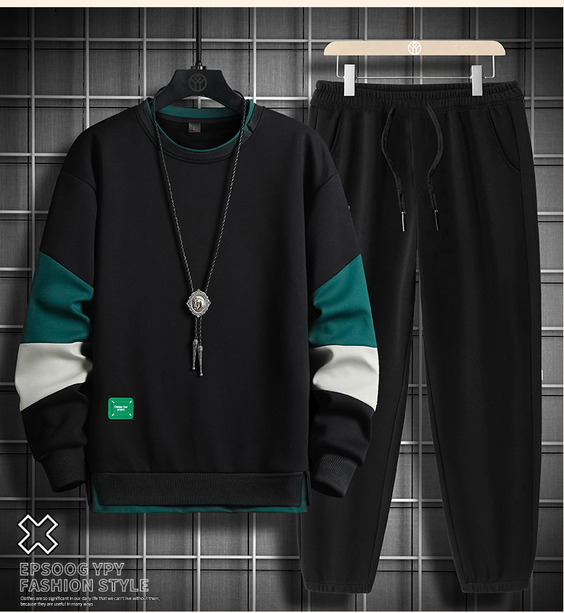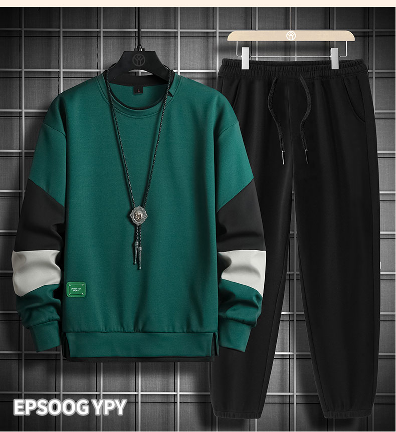 국경 간 봄 가을 겨울 일본식 미니멀리즘 캐주얼 세트 남성 조수 브랜드 루즈핏 다용도 운동 라운드 넥 긴팔 투피스 세트