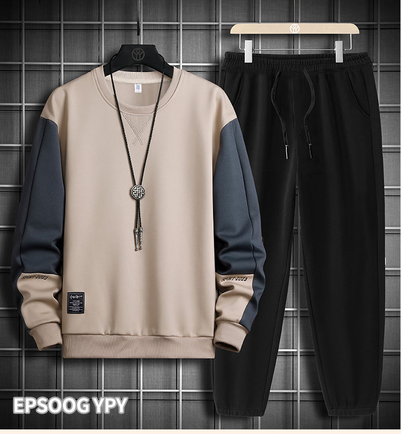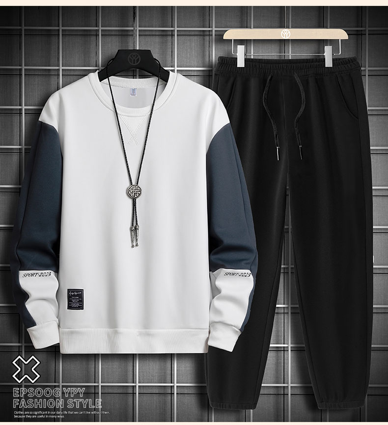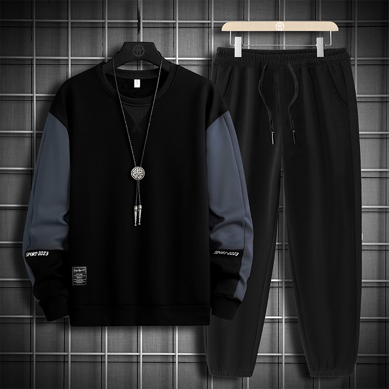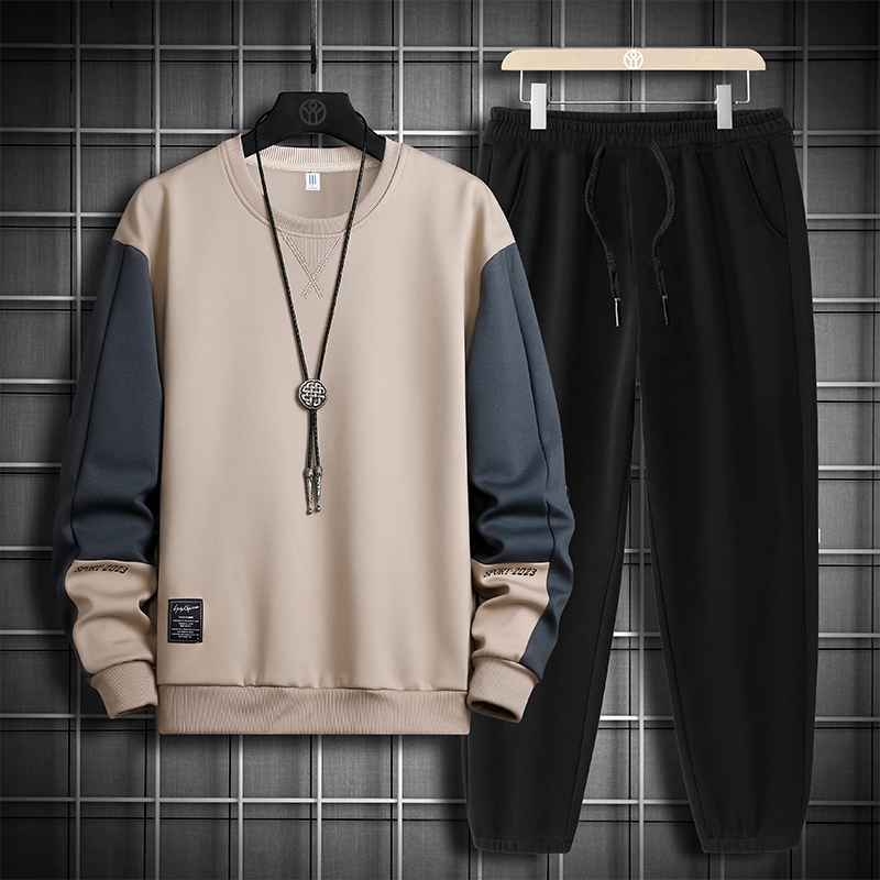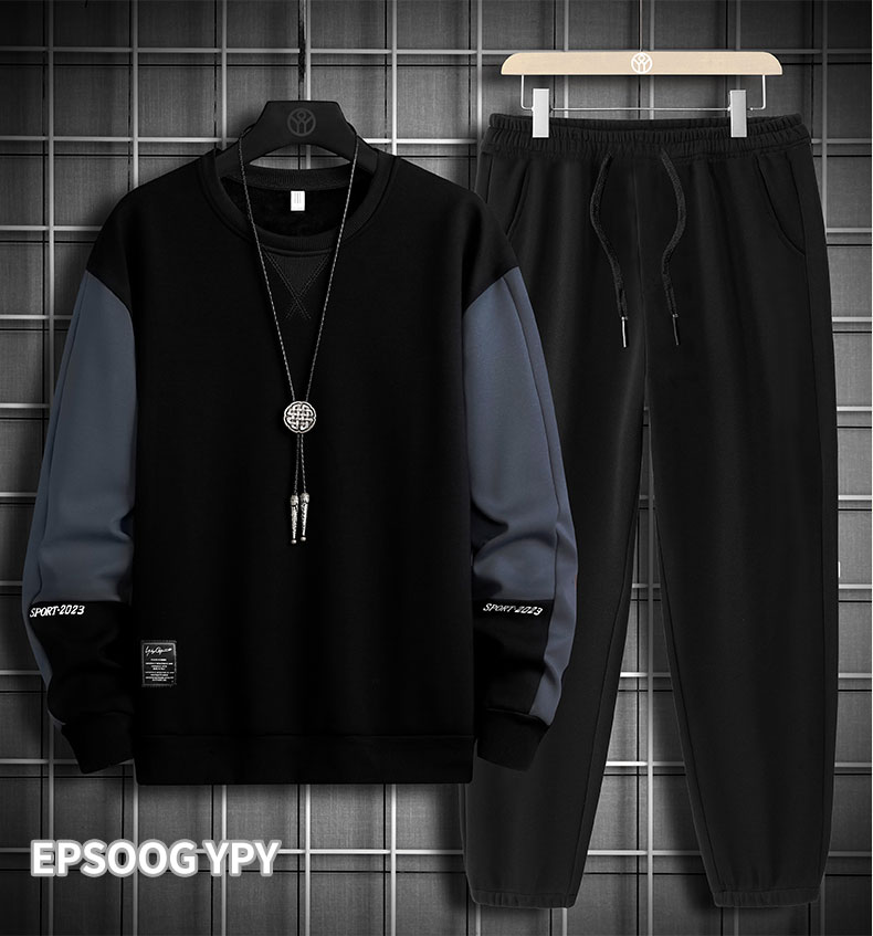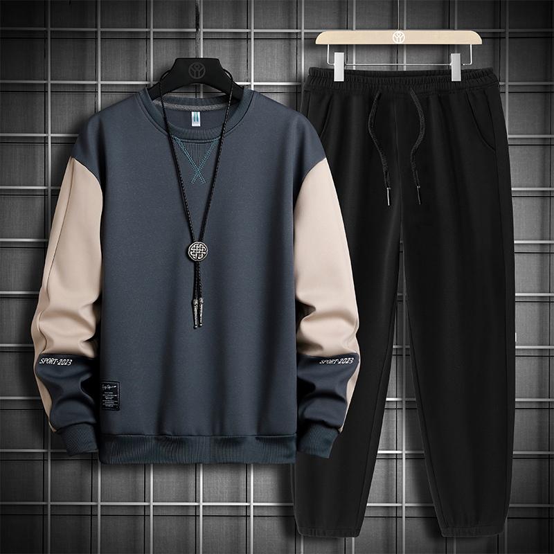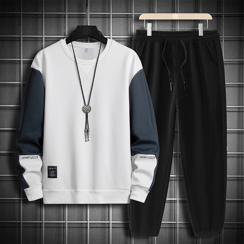 국경 간 봄 가을 겨울 일본식 미니멀리즘 캐주얼 세트 남성 조수 브랜드 루즈핏 다용도 운동 라운드 넥 긴팔 투피스 세트